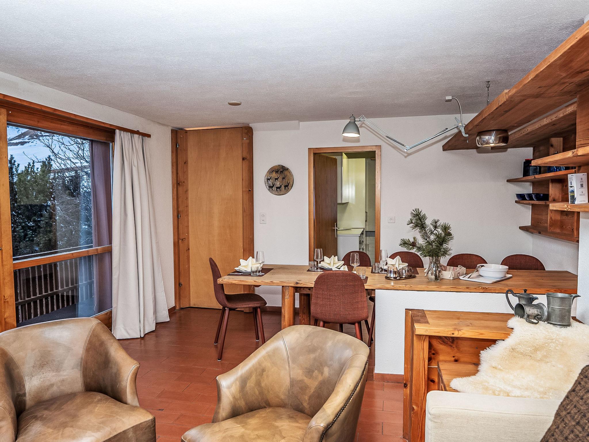 Celerina: Apartment house "Chesa LaDrosa", 3 storeys, detached, built in 1975. On the outskirts Celerina, in a sunny position on a slope, 300 m from the skiing area. For shared use: meadow. In the house: washing machine, tumble dryer (for shared use, extra). Steep motor access to the house. In Winter: please take snow chains, 4x4 car recommended in winter. Stepped path (50 steps) to the house. Parking (limited number of spaces) at the house. Grocery 900 m, restaurant 850 m, bar 800 m, bicycle rental 850 m, bus stop "Bahnhof Celerina" 800 m, railway station "Celerina" 800 m, indoor swimming pool 5.5 km. Surf school 10 km, riding stable 5 km, walking paths from the house 200 m, ski lift, gondola lift 650 m, slopes 300 m, ski rental, ski school, children's ski school 650 m, sled run, cross country ski track 900 m. Well-known ski regions can easily be reached: Corviglia Marguns 650 m, Diavolezza Lagalb 17 km, Corvatsch 11 km. Well-known lakes can easily be reached: St. Moritzsee 4 km, Stazer See 5 km. Hiking paths: Muottas Muragl 4 km, Corviglia Marguns 650 m. Please note: no lift. Not suitable for small children. In case of good snow conditions, the house is accessible on skis. Loading and unloading of baggage is possible at the holiday house.