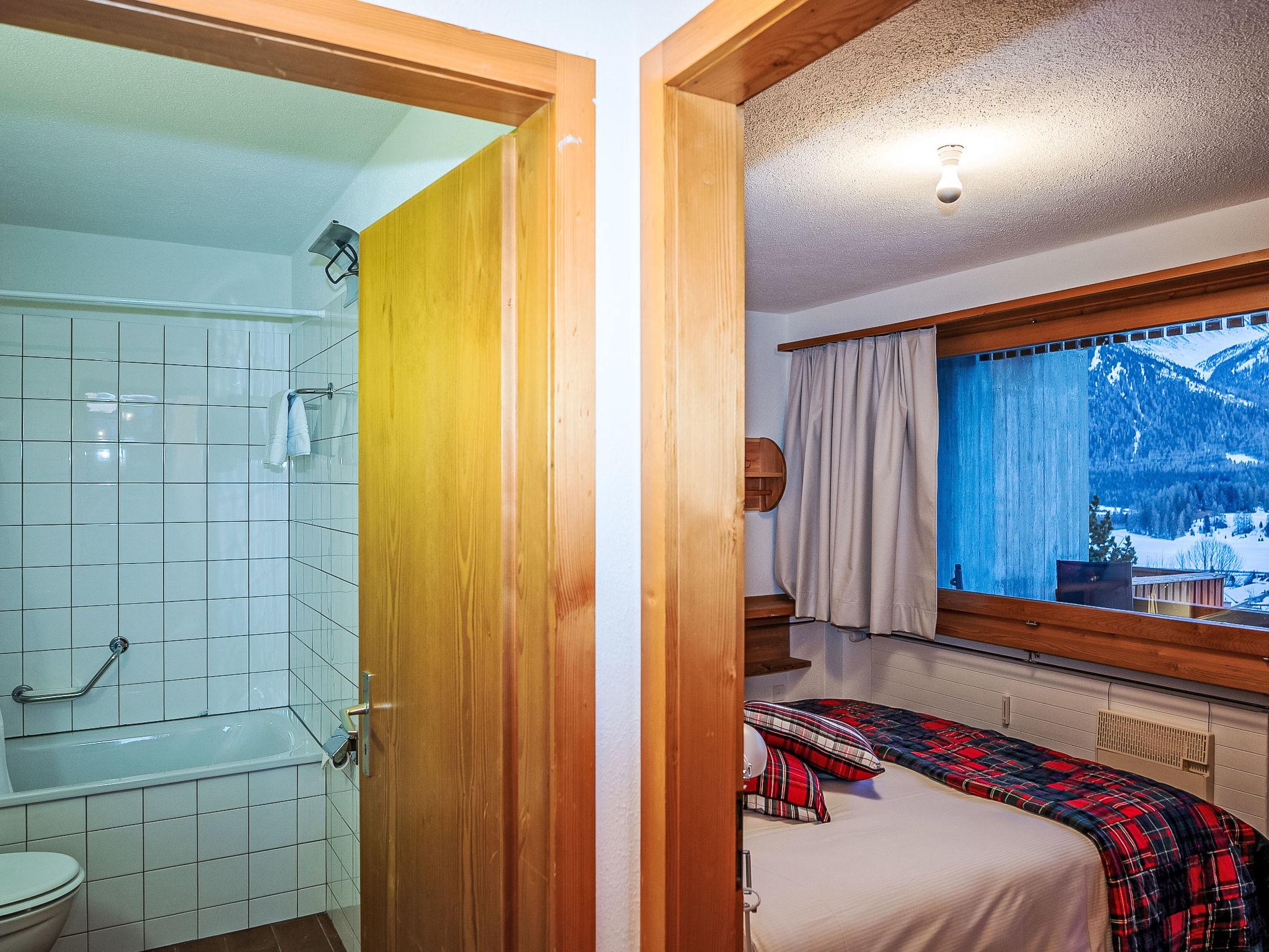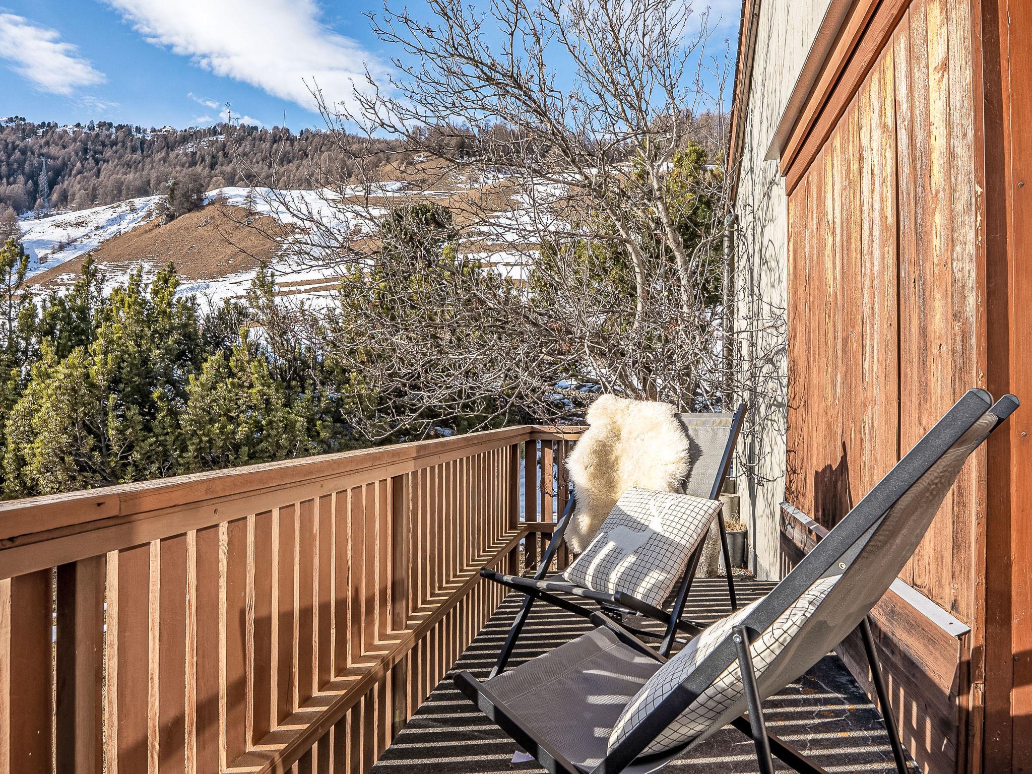 "Chesa La Drosa AB", 3-room apartment 90 m2 on 3rd floor. Simple and practical furnishings: open living/dining room with dining table and TV (flat screen). Exit to the balcony. 1 double bedroom with 1 double bed (2 x 80 cm, length 200 cm). Exit to the loggia. Kitchen (4 hot plates, oven, dishwasher, toaster, kettle, electric coffee machine, Capsules for coffee machine (Nespresso) extra, raclette grill). Bath/WC. Heating. Upper floor: 1 room with 2 beds (90 cm, length 200 cm), shower/WC. Balcony furniture, deck chairs (2). Panoramic view of the mountains, the countryside and the resort. Facilities: hair dryer. Internet (WiFi, free). Please note: non-smokers only, non-smoking house. Maximum 1 pet/ dog allowed. Private entrance, no lift. : L'appartamento è accessibile tramite una scala esterna (50 gradini). Il posto auto in garage (184 cm A x 240 cm L x 390 cm L) è adatto solo per auto di piccole dimensioni o biciclette. Le chiavi dell'auto devono essere depositate in quanto il garage è condiviso con i vicini. I posti auto esterni non possono essere garantiti. I permessi di parcheggio per il villaggio di Celerina sono disponibili online (app parkingpay) al costo di CHF 15-30 a settimana.