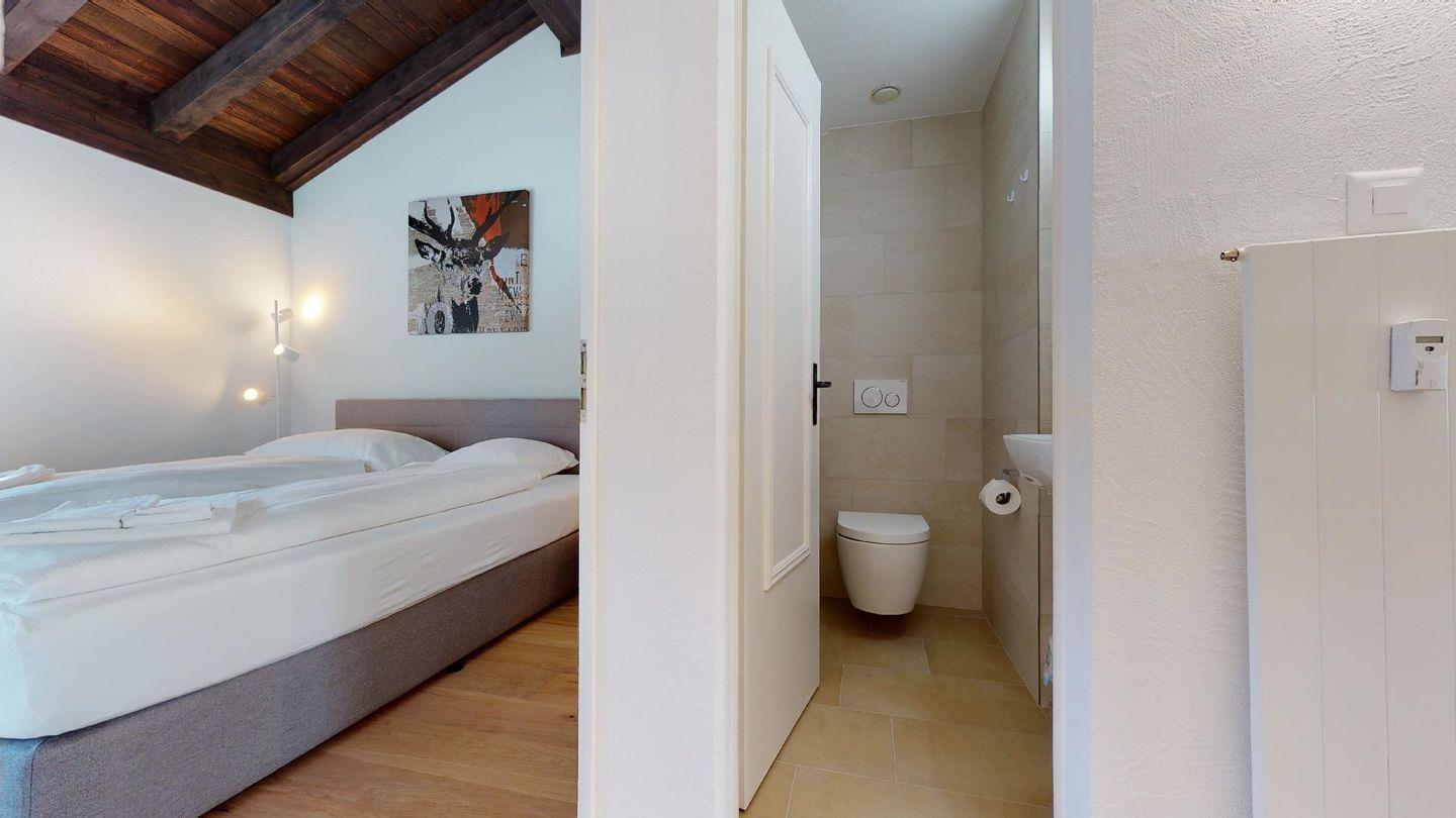3½-Zimmerwohnung im Parterre auf 2 Etagen, ca. 80 m². Im Parterre: Entree mit Garderobe. Wohnzimmer mit Kamin und kleinem Garten, Sofa und Fernseher. Offene Wohnküche mit Essecke, Backofen, Geschirrspüler, Kühlschrank, Kaffeemaschine Chicco d'Oro und Fenster. Im 1. Stock: Zwei Doppelzimmer (Bett 180x200 cm). Dusche/Lavabo und ein separates WC mit Lavabo. Komfortable Einrichtung. Im UG eine gemeinschaftliche Sauna. Haustiere sind nicht erlaubt. Bei der Gemeinde Celerina bekommen Sie Wochenkarten für CHF 15.00 für den öffentlichen Parkplatz 50 Meter unter dem Haus. Kein Veloraum.