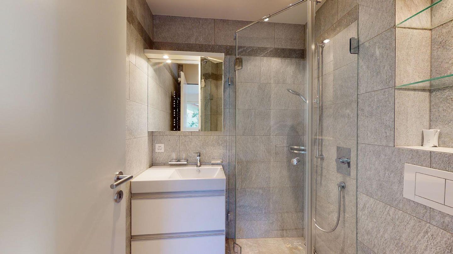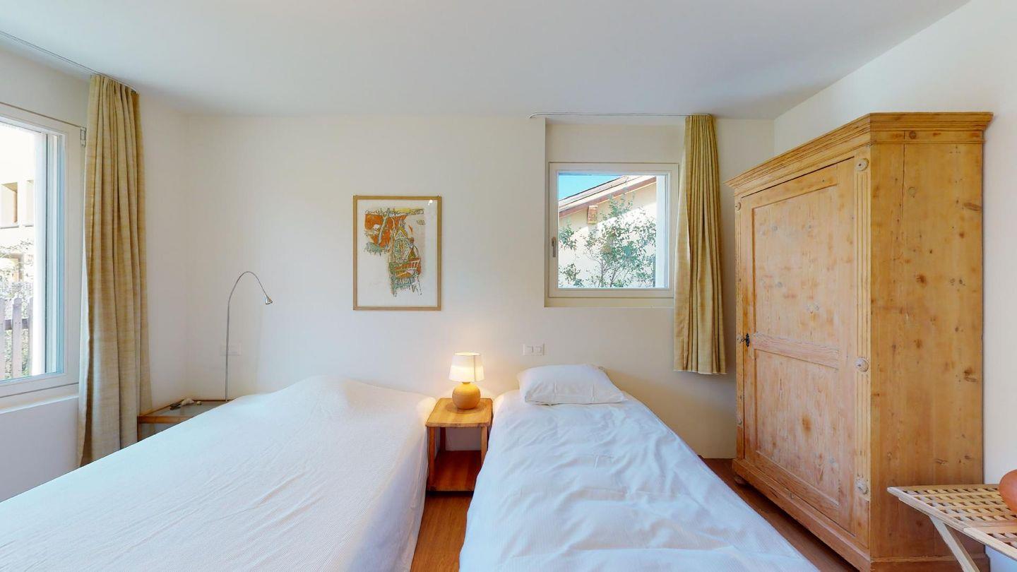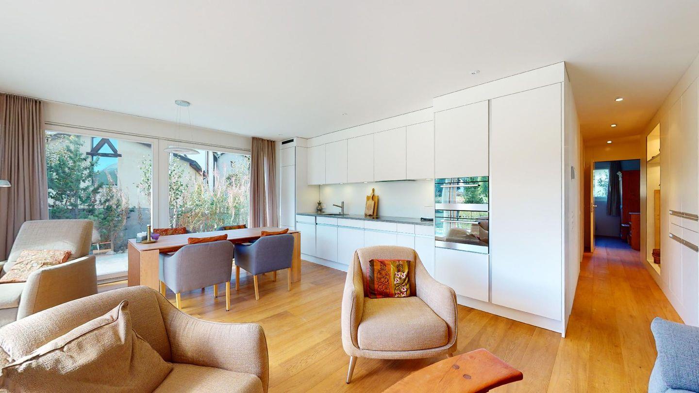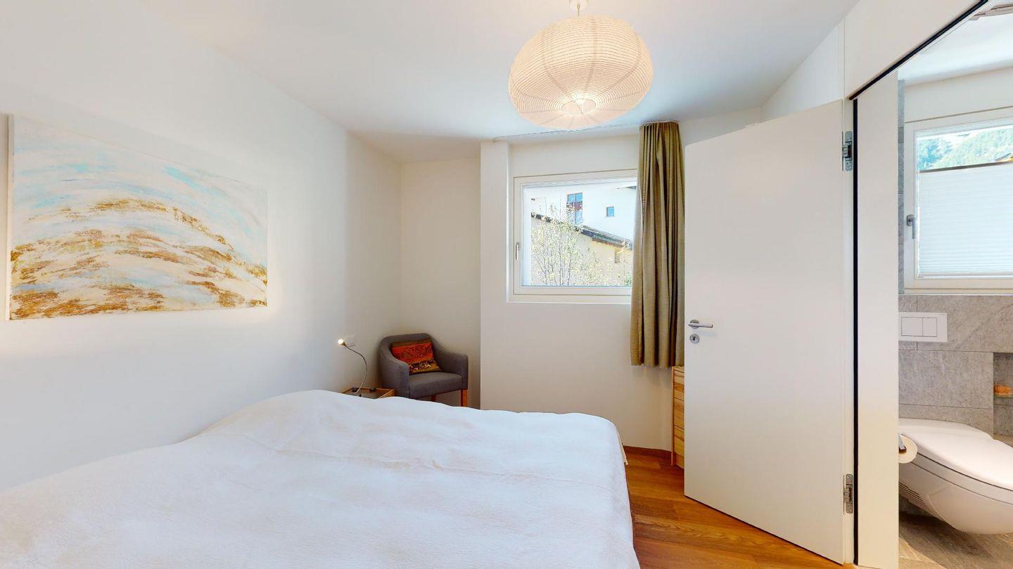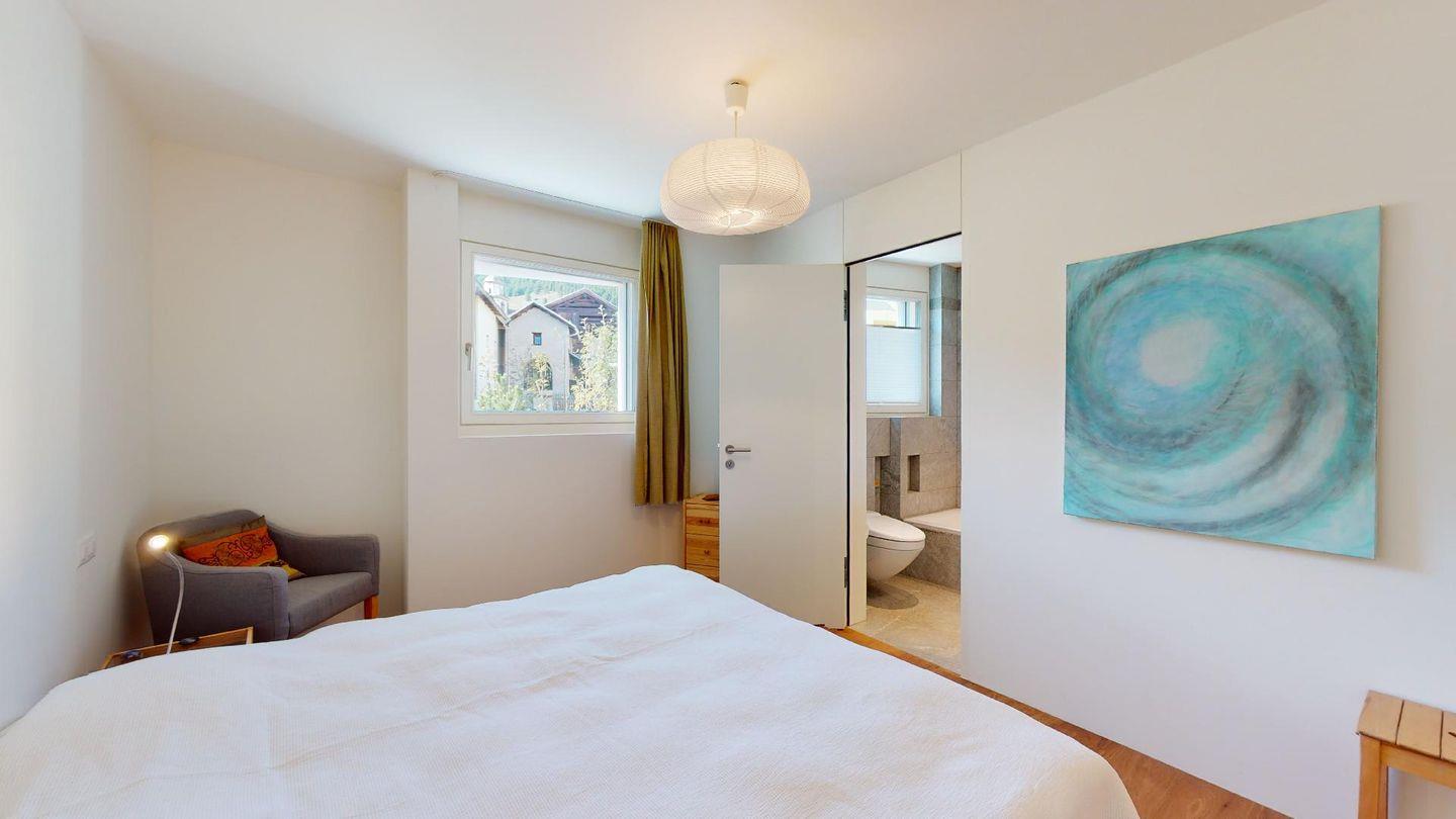 Eingang mit Garderobe. Grosses helles Wohnzimmer mit Schwedenofen, Ausgang auf die Terrasse mit schöner freien Aussicht auf die Berge, den Inn und die Kirche San Gian. TV und Internet. Offene Küche mit Backofen, Combisteam, Kühlschrank, Gefrierschrank, Geschirrspülmaschine, Kaffeemaschine Chicco d'Oro. Essecke mit Aussicht. Ein Doppelzimmer mit 2 Einzelbetten und eigenem Bad mit Badewanne/WC/Lavabo. Ein Zimmer mit Queensizebett (140/200) und eigenem Bad mit Dusche/WC/Lavabo. Ein Garagenplatz (E-Ladestation gegen Aufpreis vorhanden). Waschküche und Skiraum zur Mitbenutzung. Haustiere sind nicht erlaubt. Nichtraucher Wohnung.