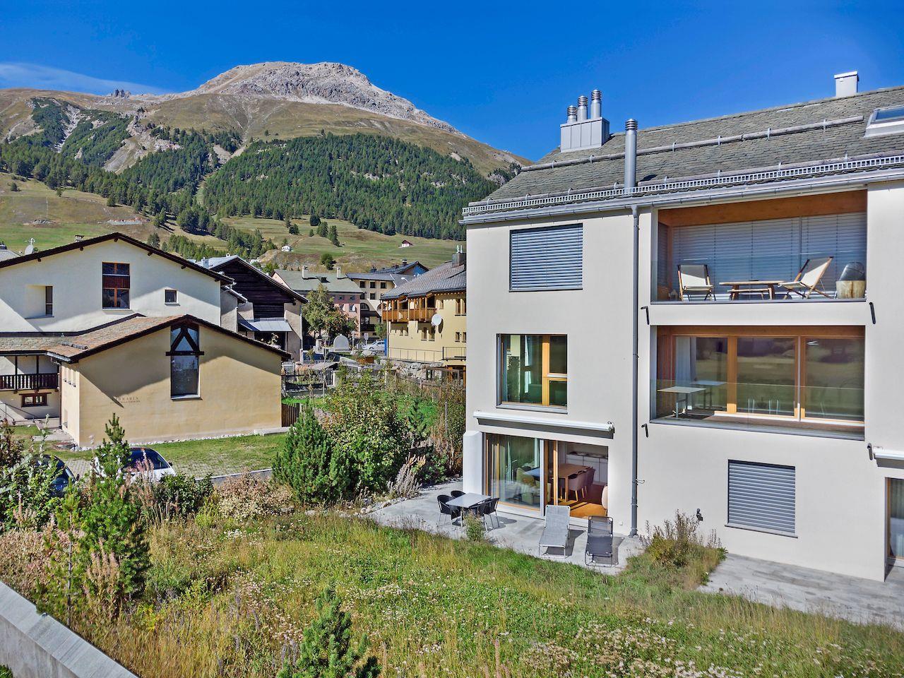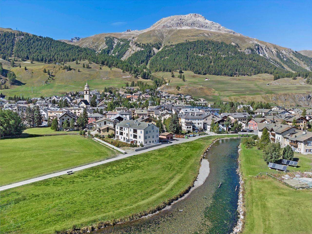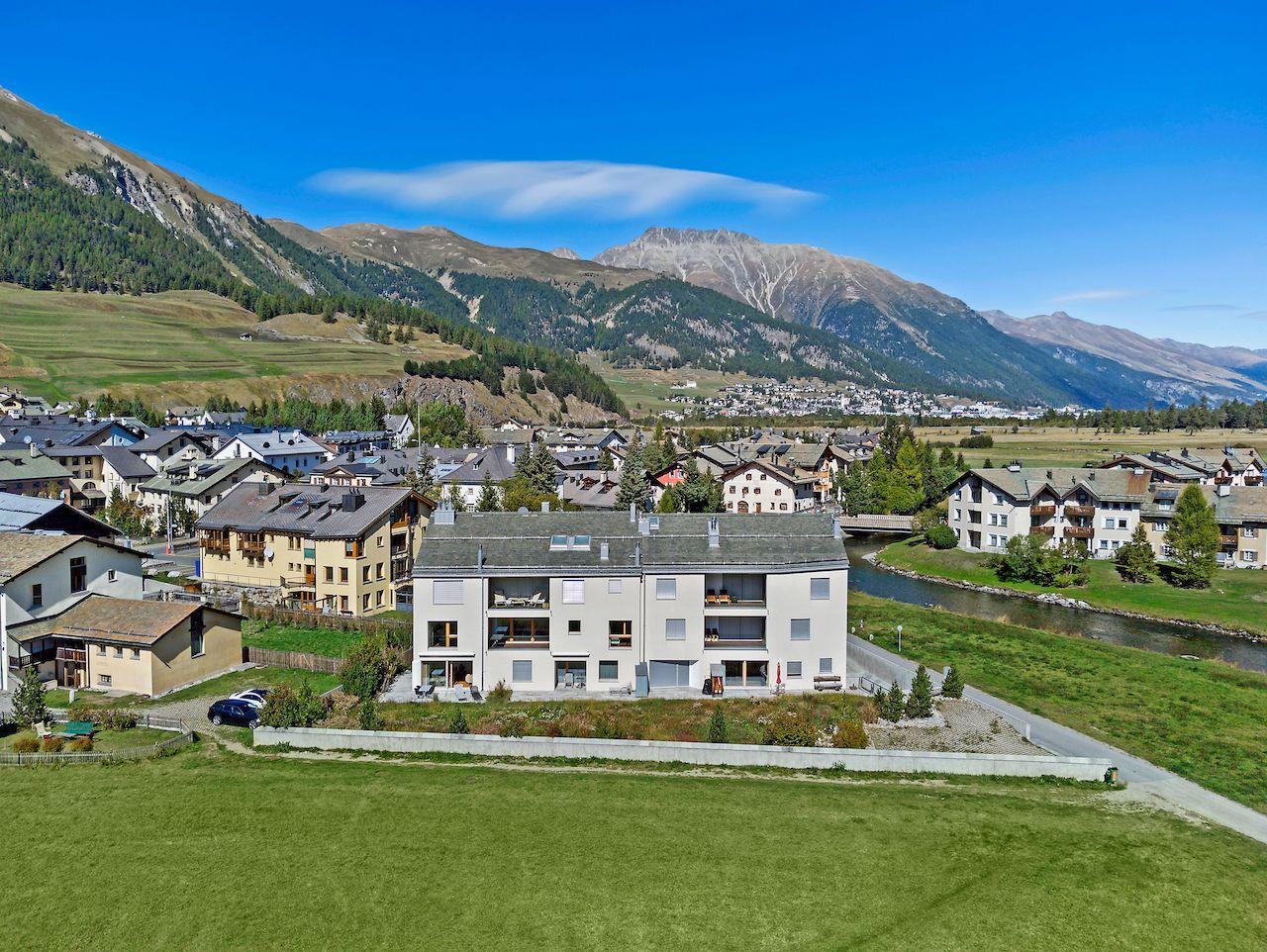 Neubau-Wohnung an idyllischer Lage direkt am Inn mit Aussicht. Post und Bahnhof sind ca. 200m entfernt. Die Bergbahn Saluver/Marguns ist ca. 500m entfernt und mit dem gratis Sportbus erreichbar. Die Langlaufloipen befinden sich vor dem Haus.
