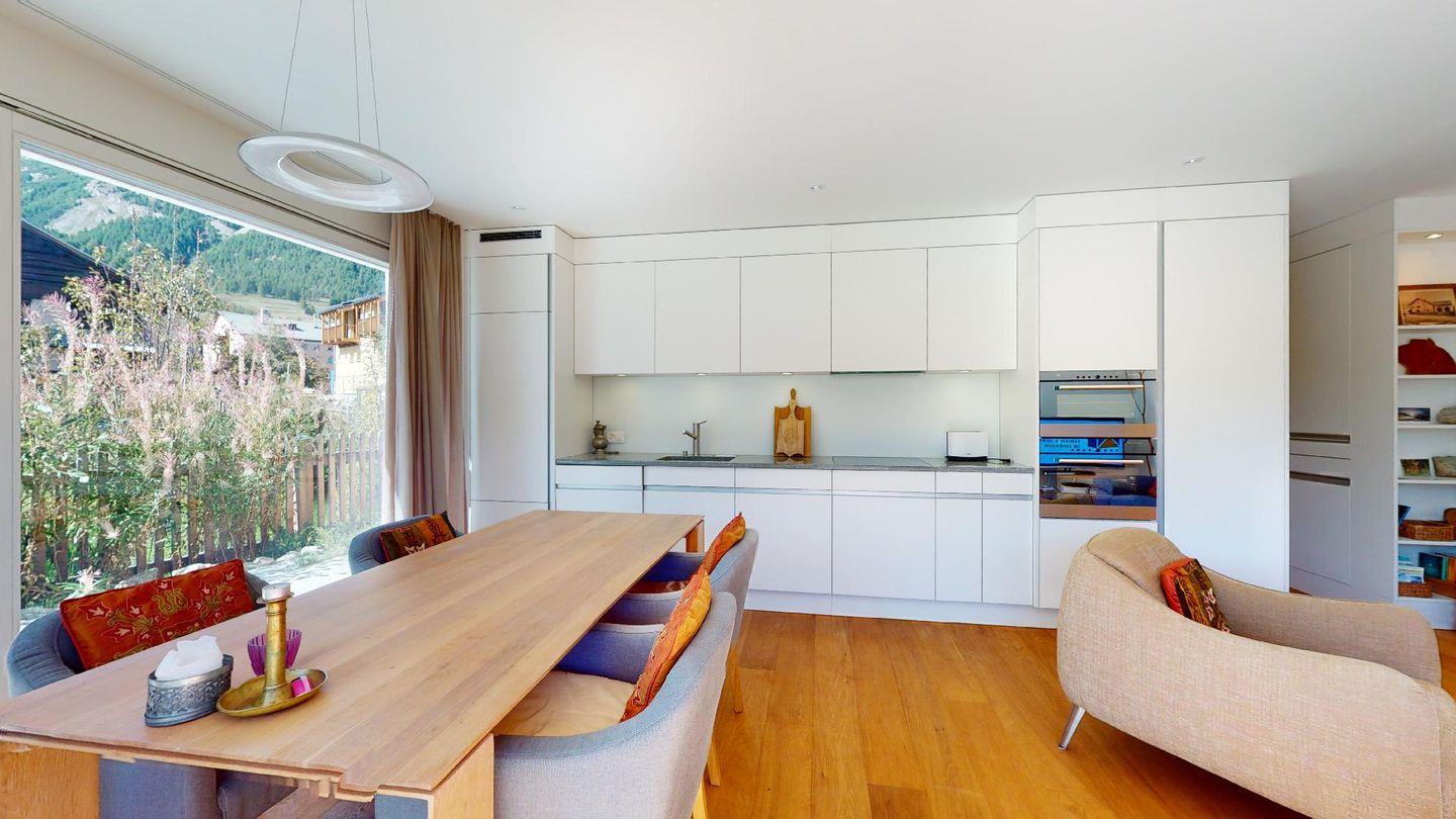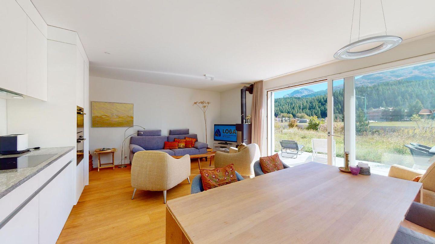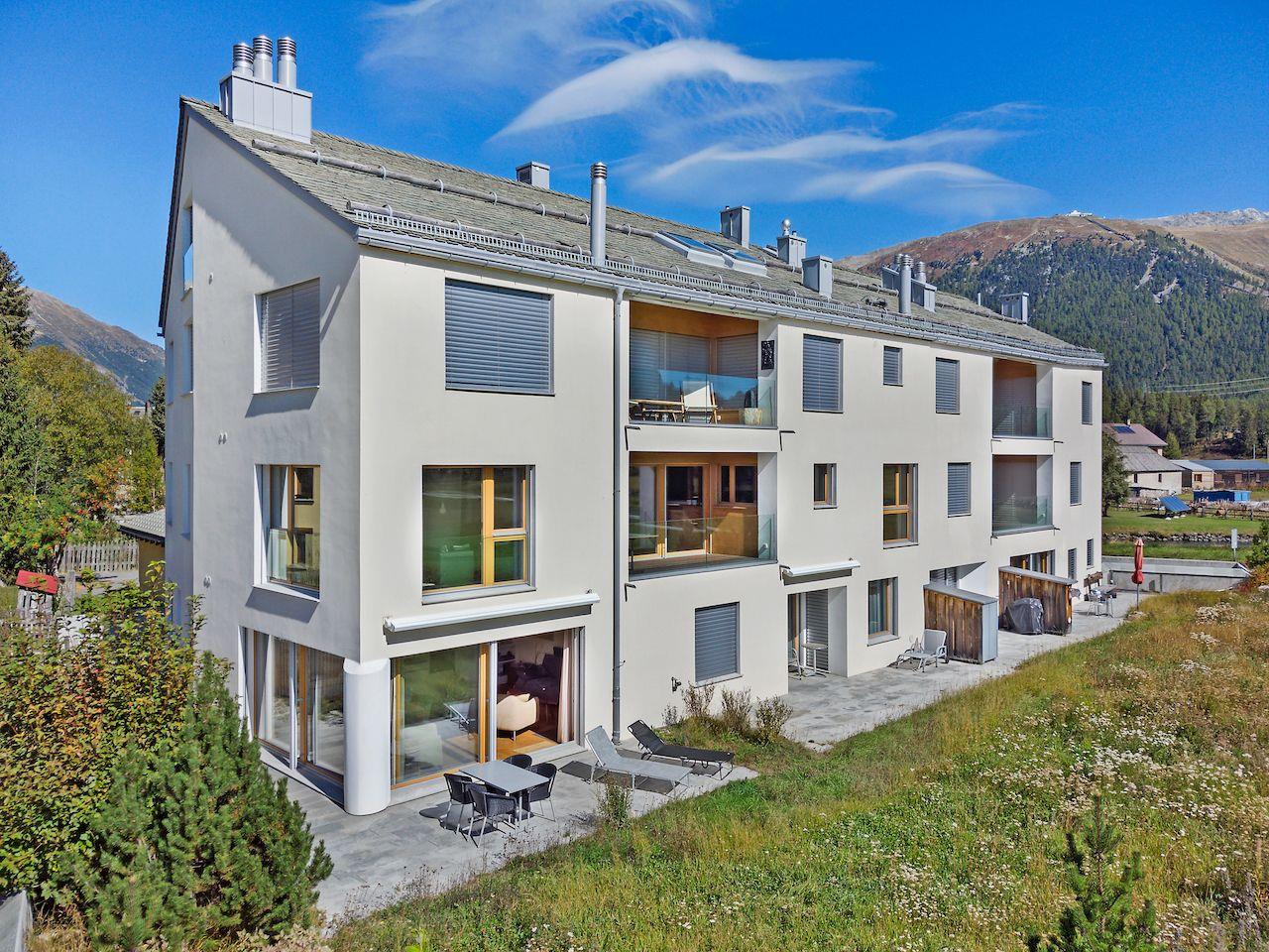 Neubau-Wohnung an idyllischer Lage direkt am Inn mit Aussicht. Post und Bahnhof sind ca. 200m entfernt. Die Bergbahn Saluver/Marguns ist ca. 500m entfernt und mit dem gratis Sportbus erreichbar. Die Langlaufloipen befinden sich vor dem Haus.
