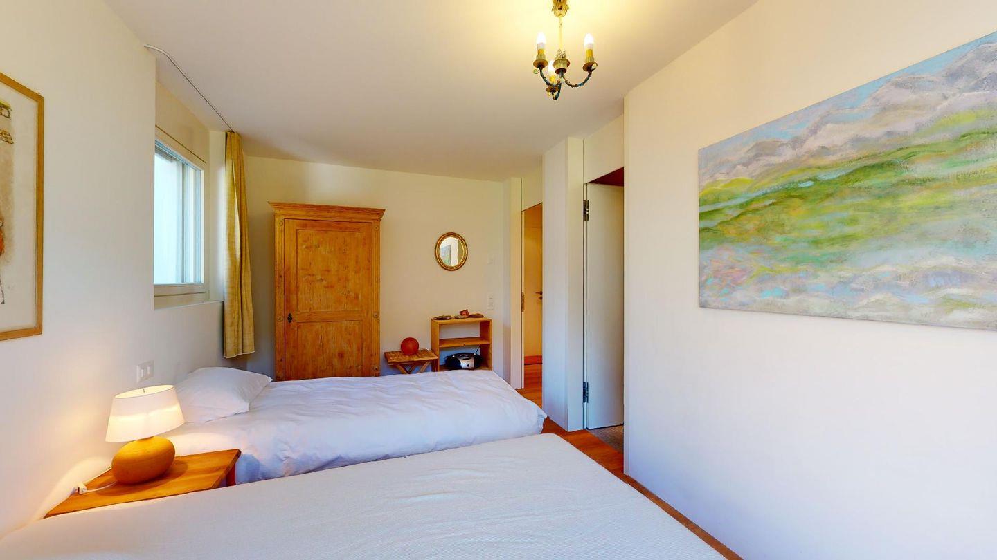 Eingang mit Garderobe. Grosses helles Wohnzimmer mit Schwedenofen, Ausgang auf die Terrasse mit schöner freien Aussicht auf die Berge, den Inn und die Kirche San Gian. TV und Internet. Offene Küche mit Backofen, Combisteam, Kühlschrank, Gefrierschrank, Geschirrspülmaschine, Kaffeemaschine Chicco d'Oro. Essecke mit Aussicht. Ein Doppelzimmer mit 2 Einzelbetten und eigenem Bad mit Badewanne/WC/Lavabo. Ein Zimmer mit Queensizebett (140/200) und eigenem Bad mit Dusche/WC/Lavabo. Ein Garagenplatz (E-Ladestation gegen Aufpreis vorhanden). Waschküche und Skiraum zur Mitbenutzung. Haustiere sind nicht erlaubt. Nichtraucher Wohnung. Bitte lassen Sie keine Schuhe im Treppenhaus stehen. Skischuhe uns Ski ebenfalls im Skiraum deponieren.