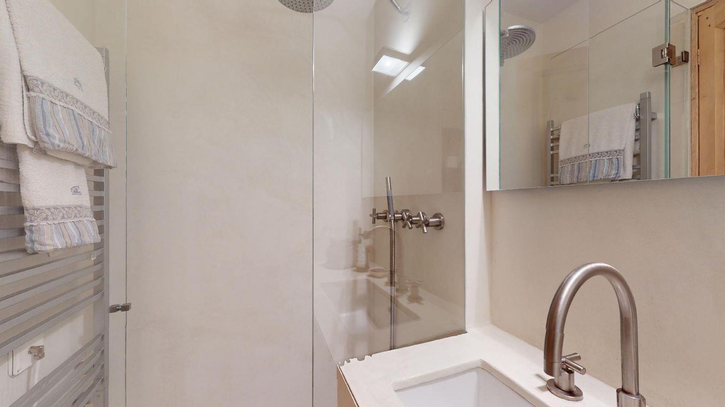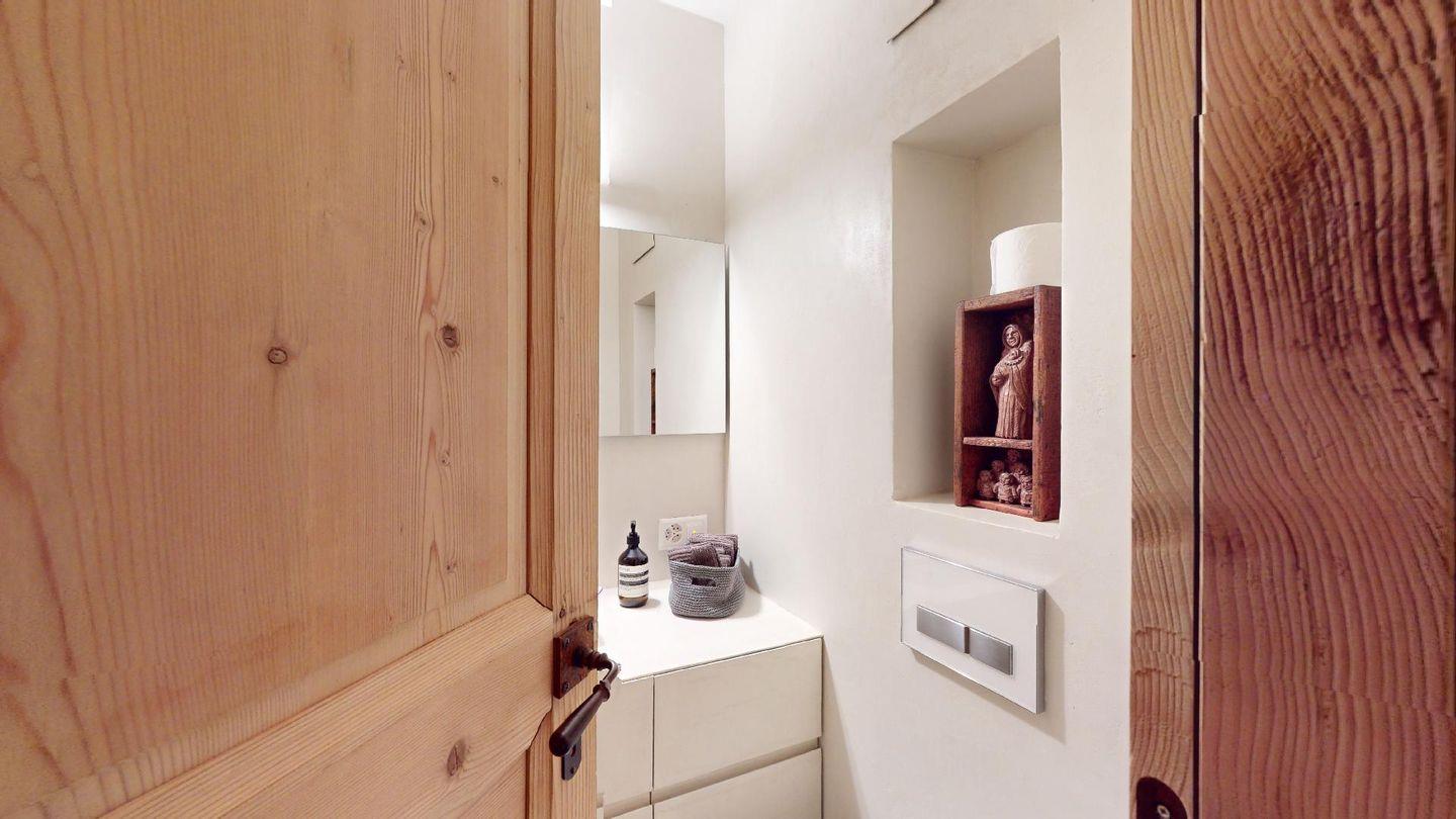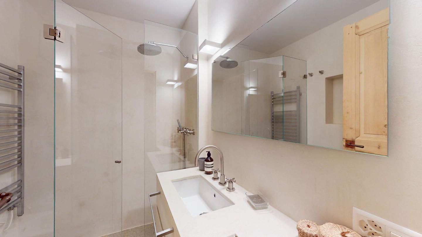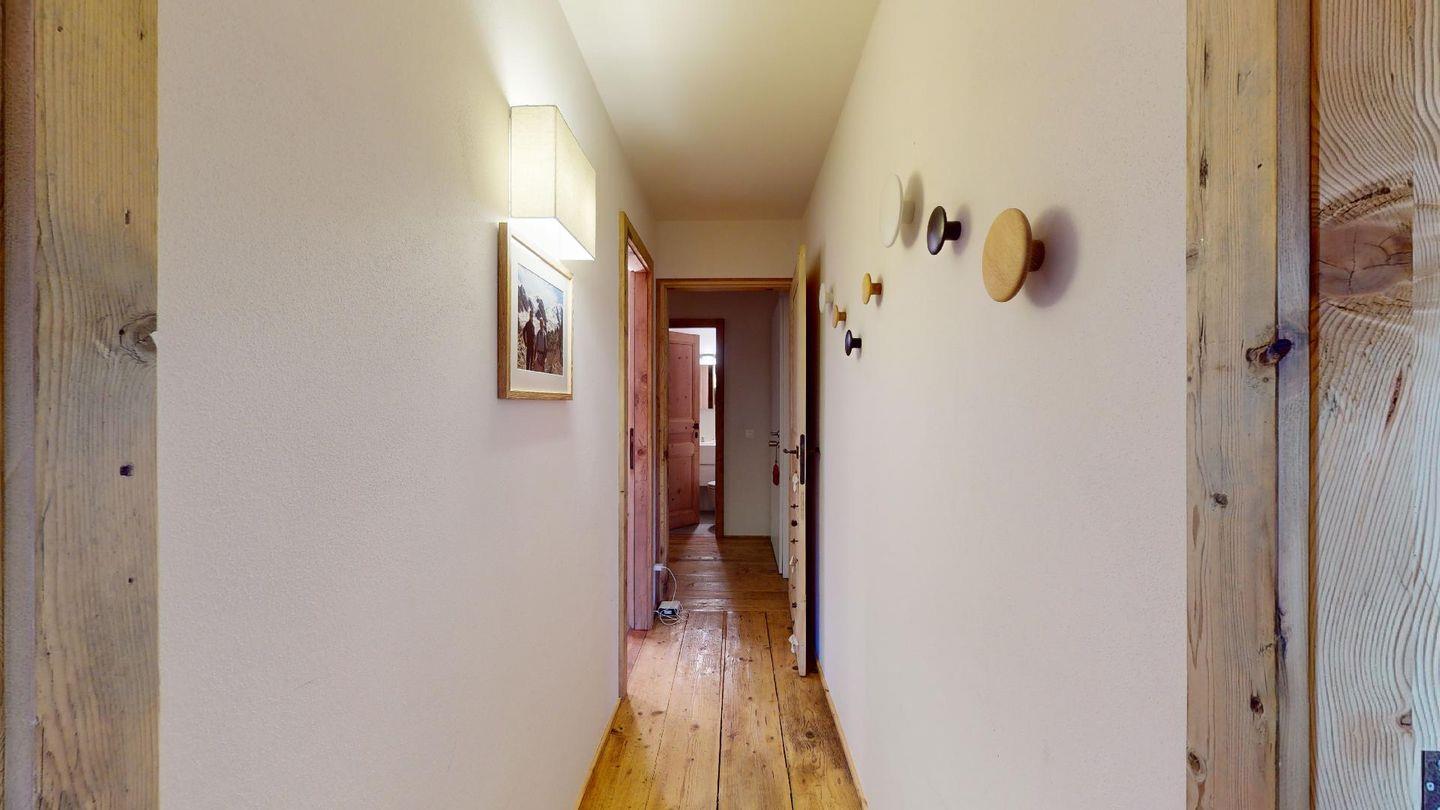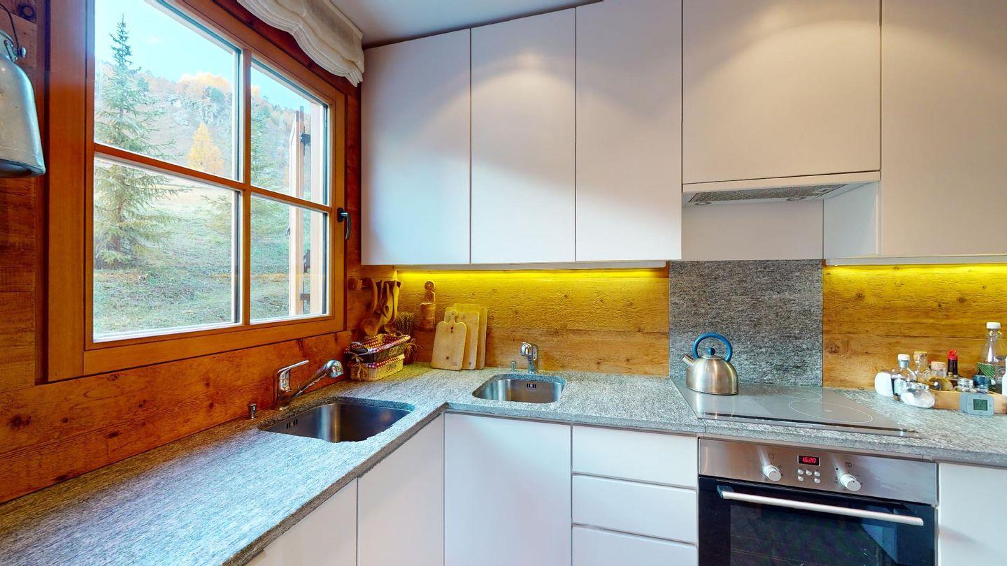 Eingang mit Garderobe. Sehr grosses helles Wohnzimmer mit Kamin, Ausgang auf die ausladende Terrasse, Esstisch. TV, Radio und Internet. Schliessbare Küche mit Backofen, Kühlschrank, Gefrierfach, Geschirrspülmaschine, Nespresso Kaffeemaschine. Ein Doppelzimmer mit Bad mit Wanne/WC/Bidet und Lavabo. Ein Gäste-Bad mit Dusche/WC/Lavabo und Handtuchwärmer. Ein Bad mit Dusche/WC/Bidet und Lavabo. Ein Doppelzimmer mit 2 Einzelbetten. Ein Zimmer mit Etagenbett und Sofa. Zwei Garagenparkplätze. Skiraum zur Mitbenutzung. Haustiere nicht erlaubt. Nichtraucher Wohnung. Keine Waschmaschine vorhanden. Cheminée nicht nutzbar.