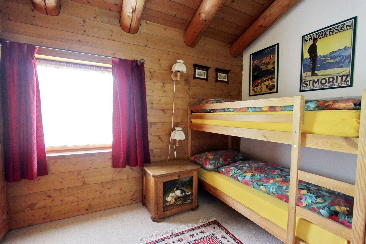Gemütliche 3.5-Zimmer-Wohnung am ruhigen Dorfrand von Celerina mit Schwedenofen, Balkon und einheimischem Holz. Zwei Schlafzimmer, voll ausgestattete Küche, Skiraum, und gemeinschaftliche Waschküche. Garageplatz optional.