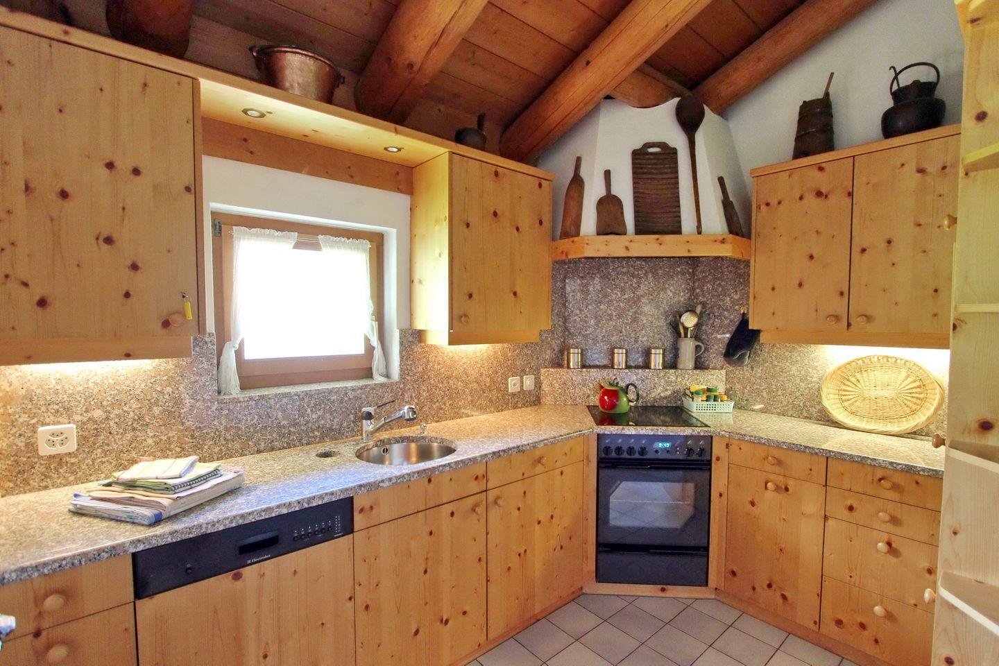 Die Wohnung hat sehr hohe Decken und ist mit schönem einheimischen Holz ausgestattet. Dies verleiht eine angenehme heimelige Atmosphäre.