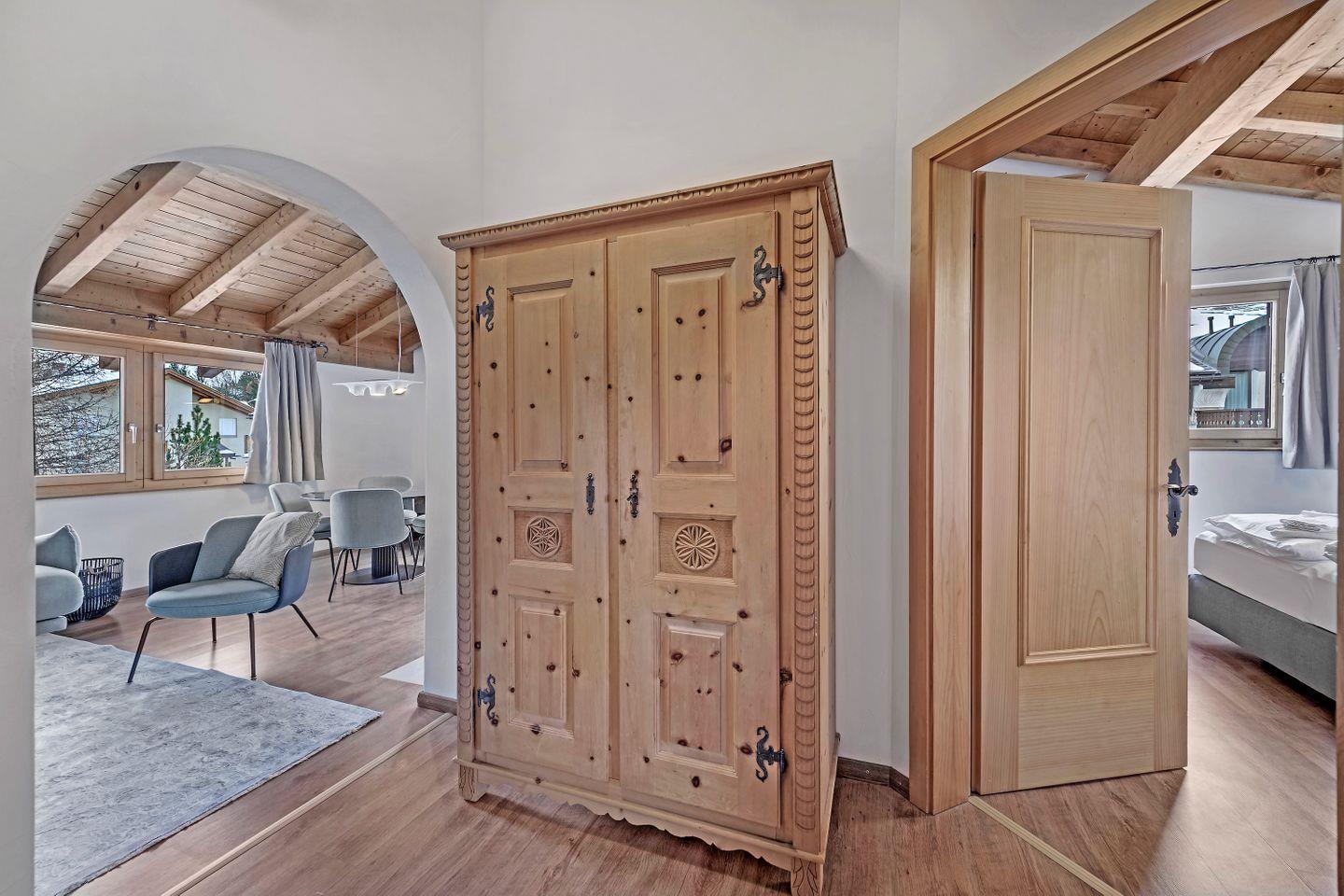2-Zimmer Dachwohnung im 2. Stock, ca. 51 m2. Entree mit Garderobe. Wohnzimmer mit Sofabett und Essecke. Südwestbalkon. Doppelzimmer. Bad/WC/Doppellavabo. Offene Küche mit Backofen, Kaffeemaschine Chicco d'Oro und Geschirrspüler. Radio, TV, Telefon. Rustikale und sehr komfortable Einrichtung. Garagenplatz. Haustiere sind erlaubt.