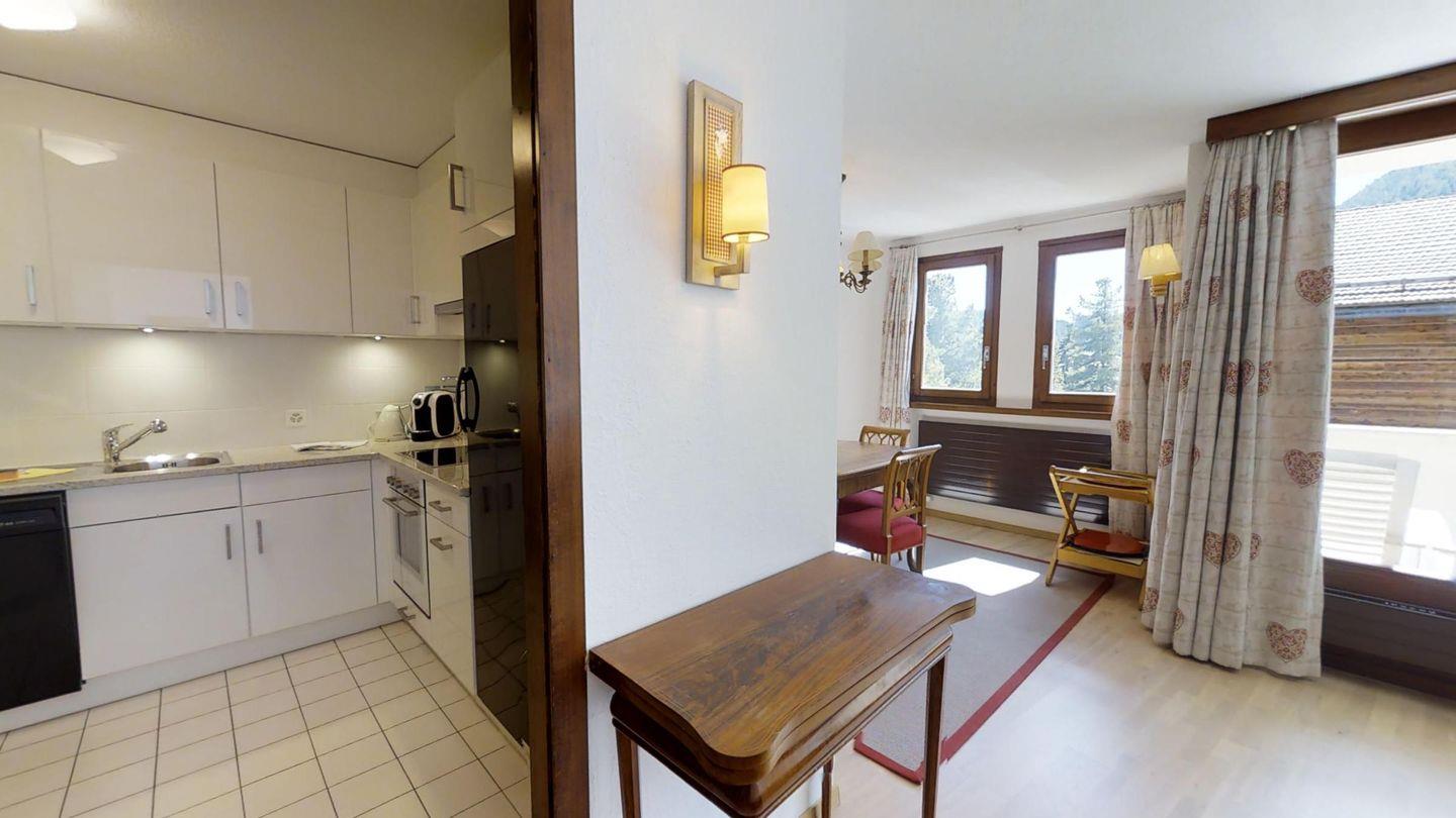 Teil renovierte 4½-Zimmerwohnung im zweiten Stock, ca. 120m2. Eingang mit Garderobe. Wohn-/ Esszimmer mit Kamin und Südbalkon mit Bergsicht. Fernsehnische. Radio/Internet und Telefon. Neue separate Küche mit Backofen, Kühlschrank, Geschirrspülmaschine, Kaffeemaschine (De Longhi u. Chicco d'Oro), Toaster und Fondue. Renovierte Zimmer. Ein Doppelzimmer (2x90x200) mit Bad Wanne/WC/Doppellavabo/Bidet. Ein Zimmer mit Kajüttenbett (90x200). Dusche/WC/Lavabo. Ein Doppelzimmer (2x80x200). Gäste-WC. Bügeleisen und Bügelbrett. Komfortable Einrichtung. Waschküche und Skiraum zur gemeinsamen Benützung. Haustiere sind nicht erlaubt.