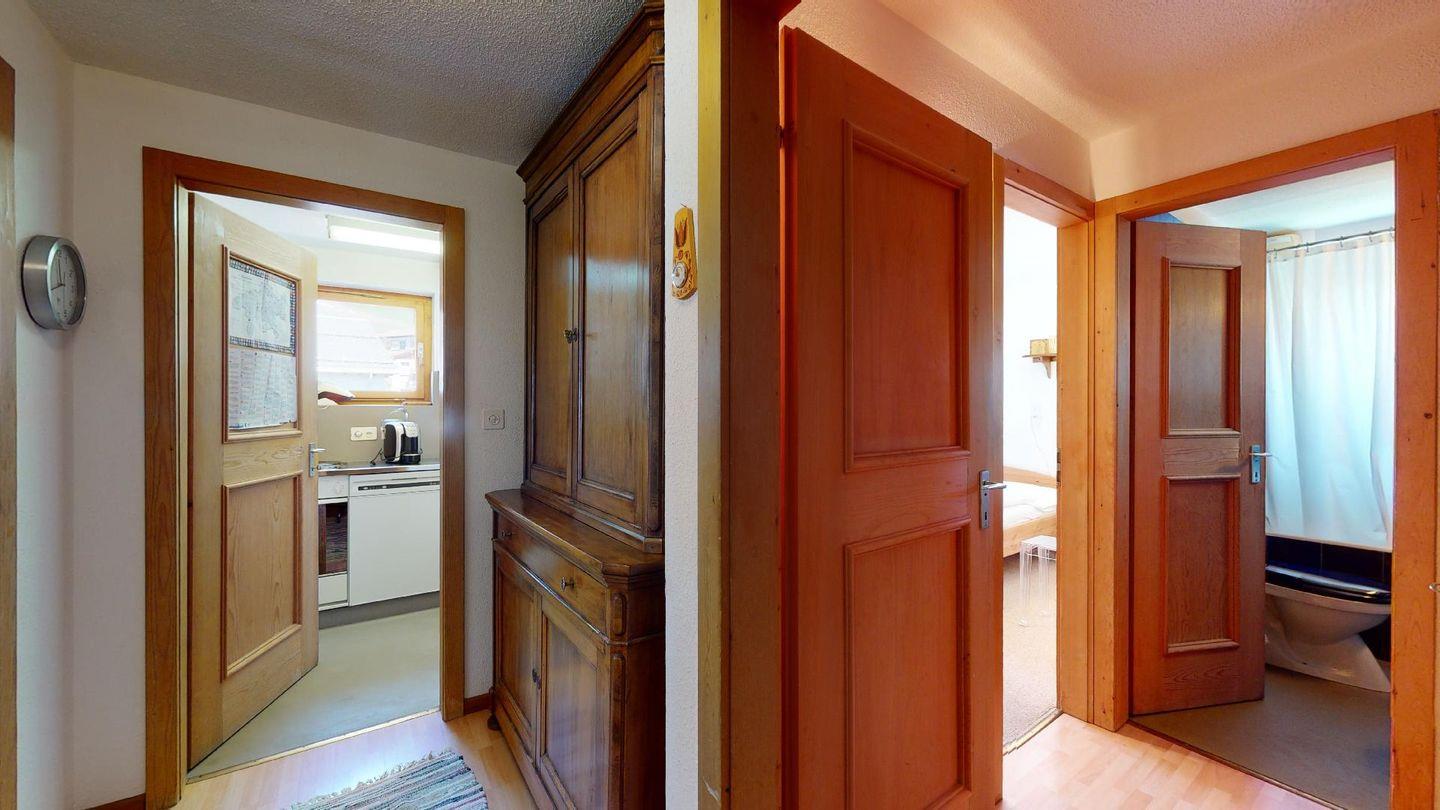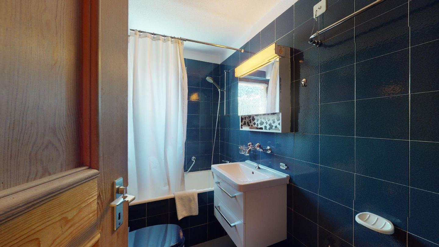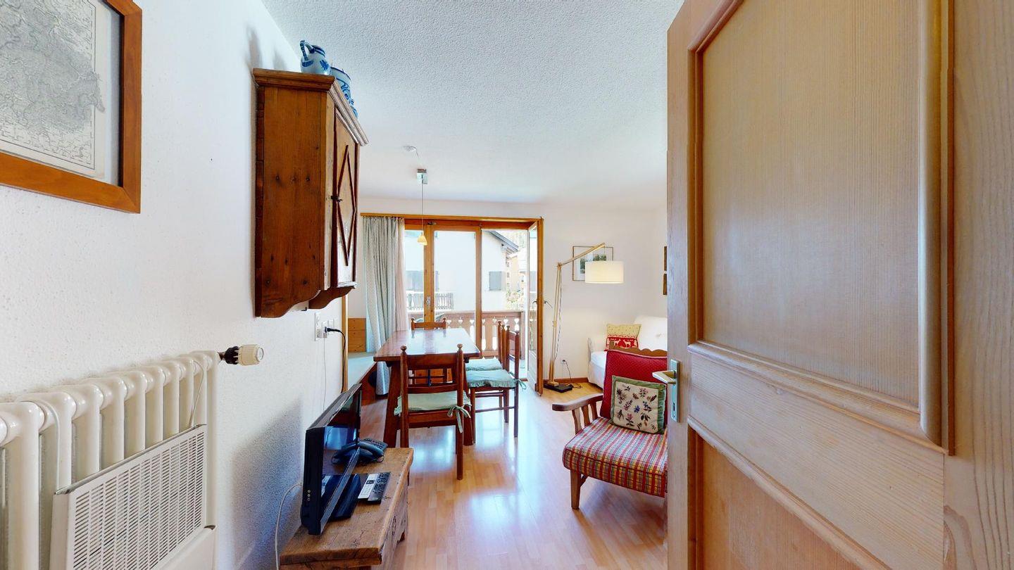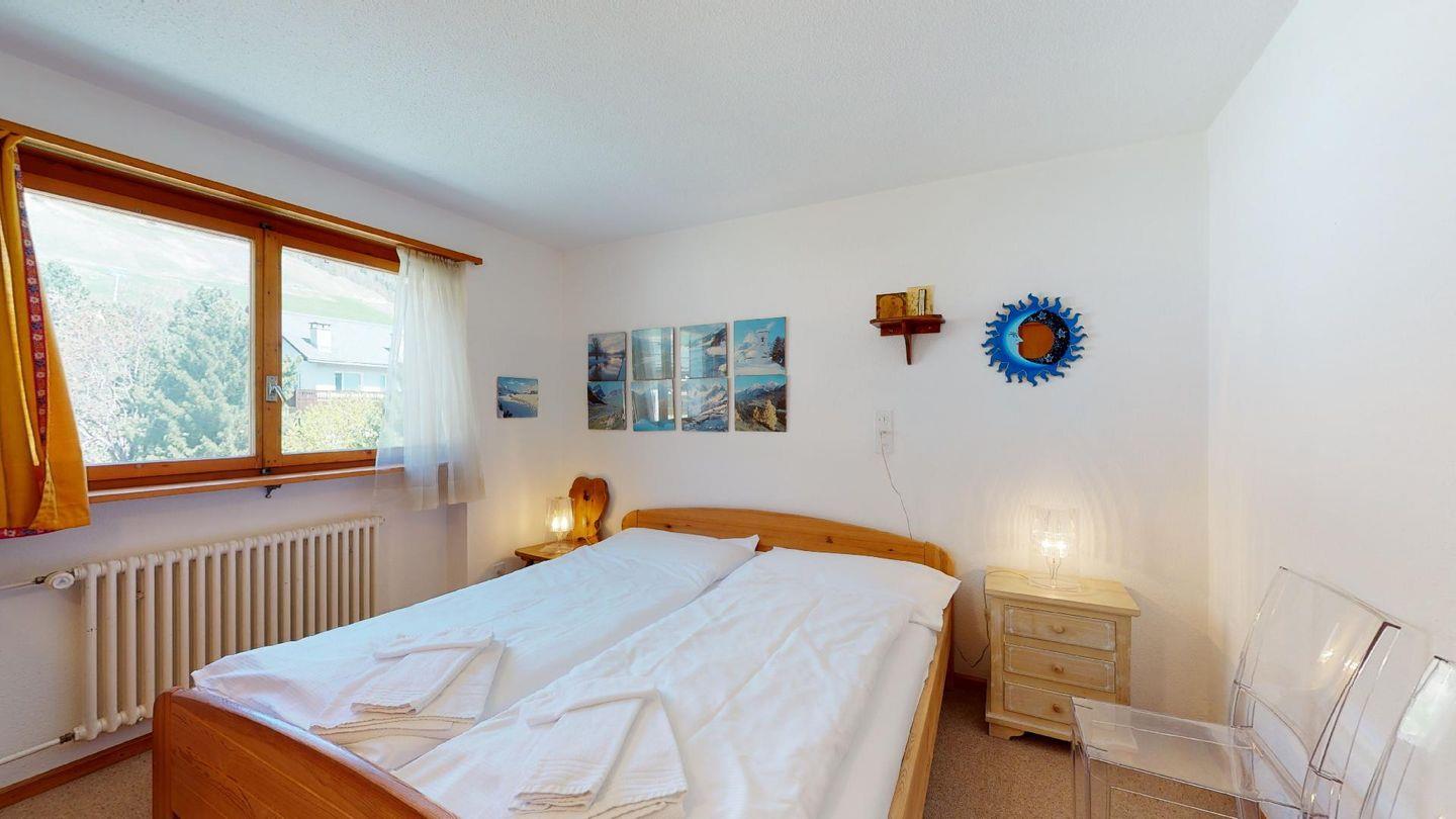 2-Zimmerwohnung, ca. 55 m2, im 2. Stock. Eingang mit Garderobe. Separate Küche mit Fenster, Backofen, Kühlschrank, Filterkaffeemaschine und Geschirrspüler. Wohnzimmer mit Schlafsofa (150x180), Essecke und Ausgang zum (Süd-)Balkon. Fernseher, Radio, Telefon und Internet. 1 Doppelzimmer (2x90x200). Bügeleisen und Bügelbrett. Parkettboden. Einfache, rustikale Einrichtung. Skiraum und Waschküche zur gemeinsamen Benützung. Keine Garage und kein Aussenparkplatz. Haustiere sind nicht erlaubt.