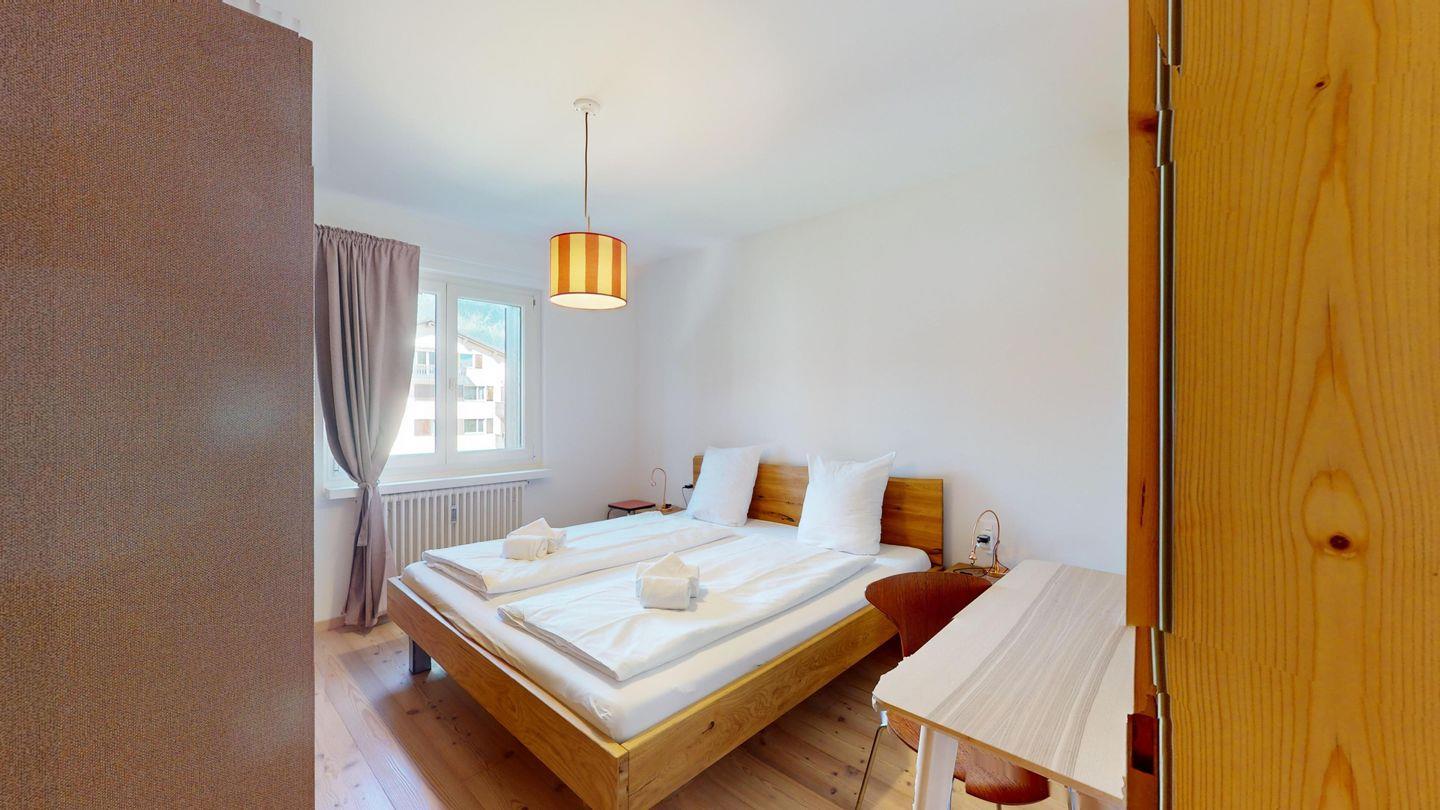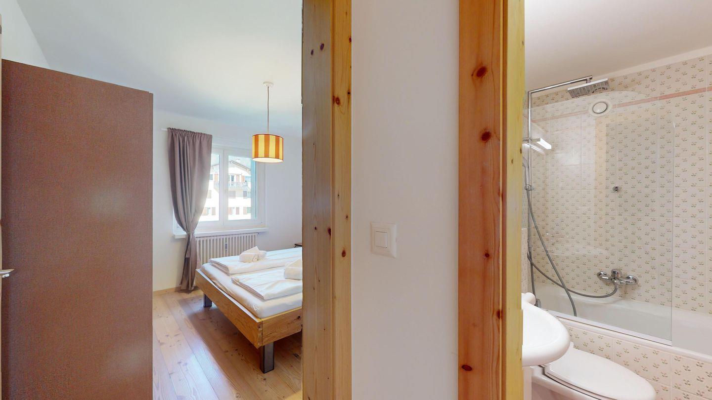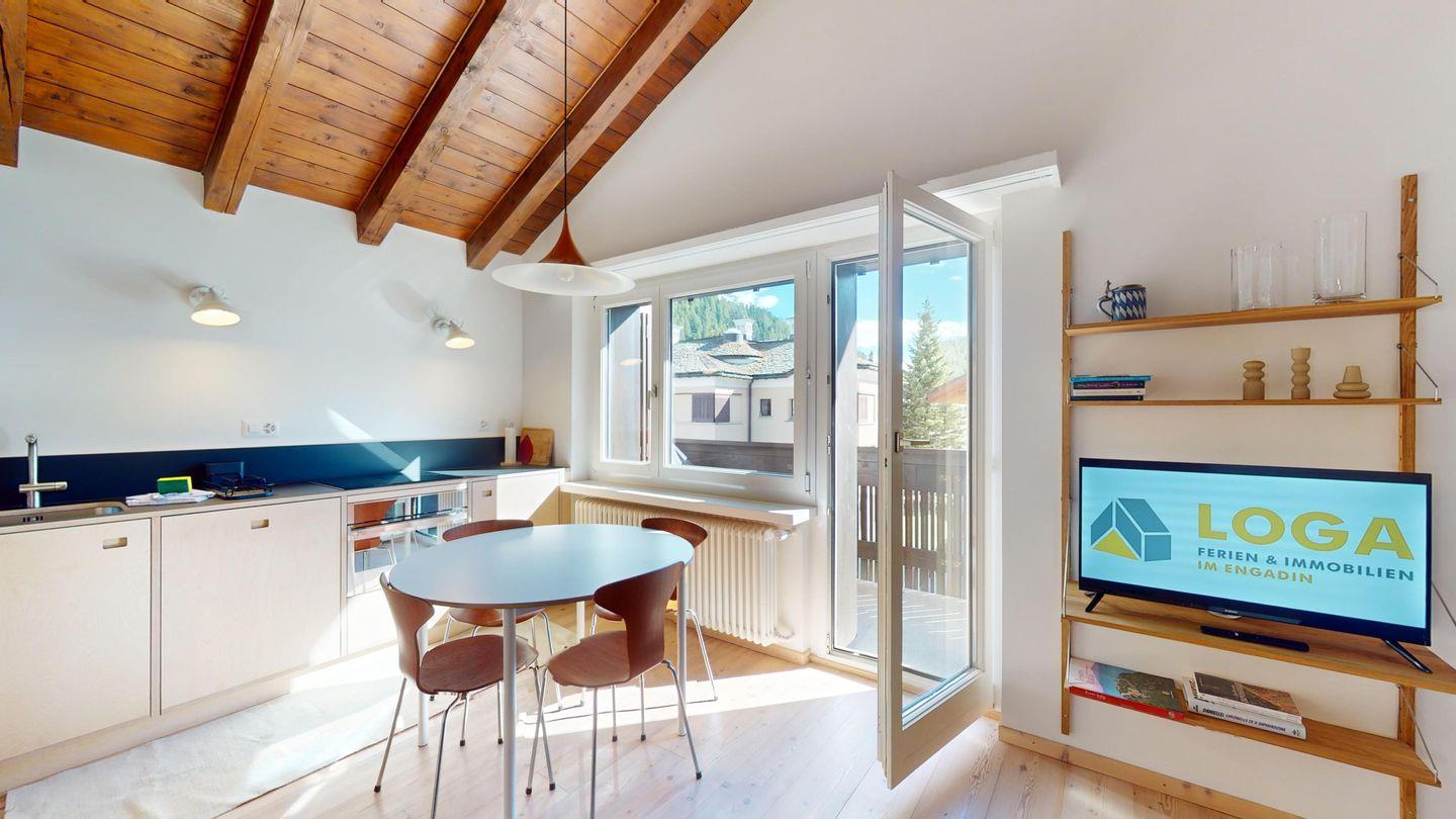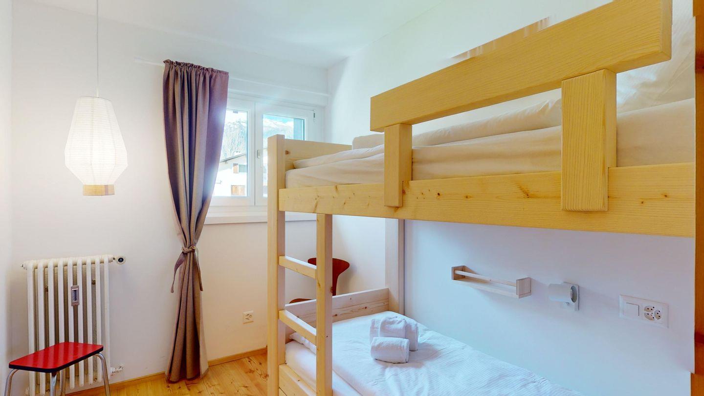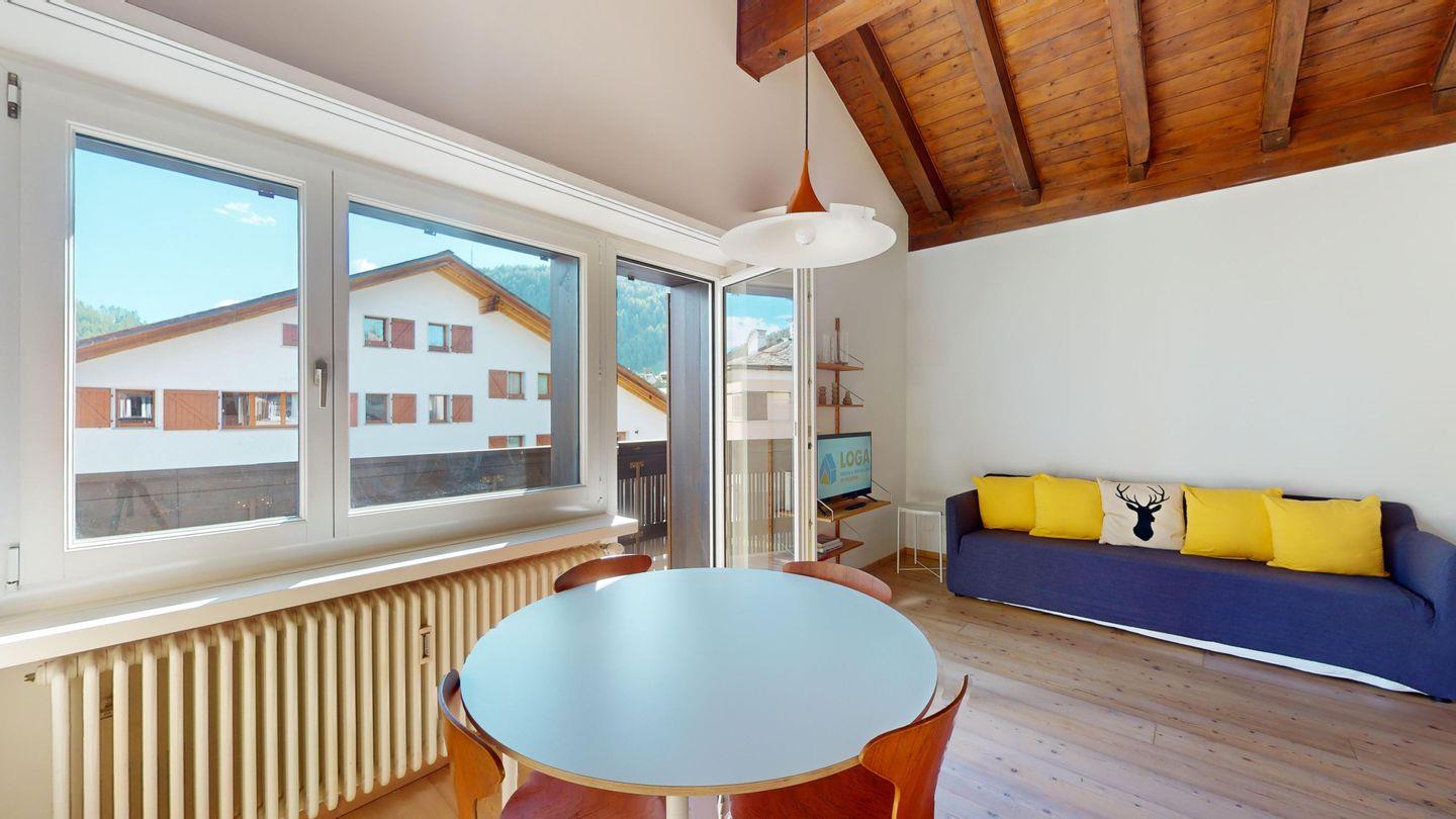 Die 3-Zimmerwohnung im Dachgeschoss, ca. 50 m², wurde Anfangs 2024 gänzlich umgebaut und renoviert. Eingang mit Garderobe. Wohnzimmer mit Südbalkon und offener Küche mit Herd, Combi-Mikrowelle, Geschirrspülmaschine, Chicco d'Oro Kaffeemaschine und Kühlschrank. Ein Schlafzimmer mit Doppelbett. Ein Schlafzimmer mit Etagenbett. Bad, WC und Lavabo. Internet und TV. Einfache Einrichtung. Garagenplatz (enge Einfahrt). Waschküche zur Mitbenützung. Haustiere sind nicht erlaubt.