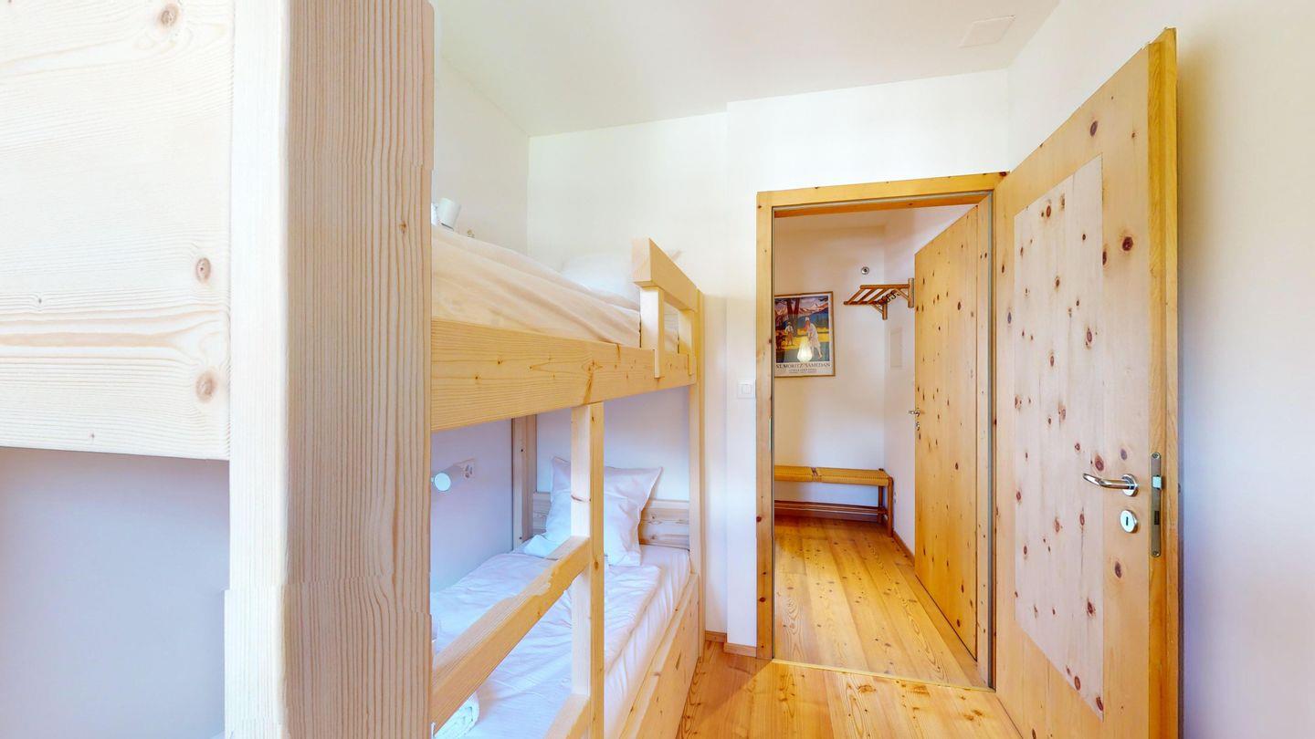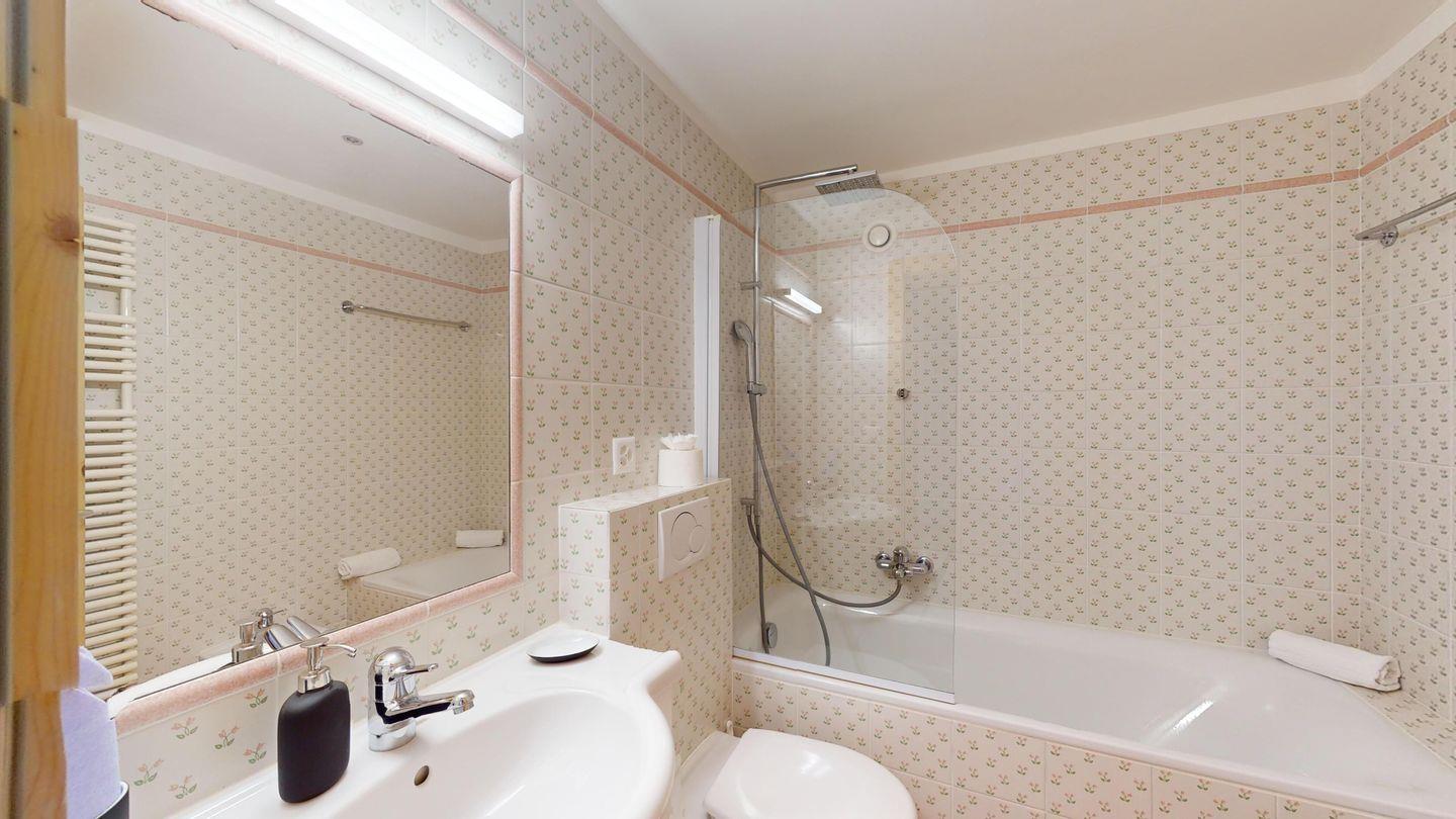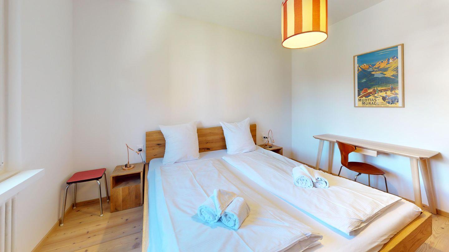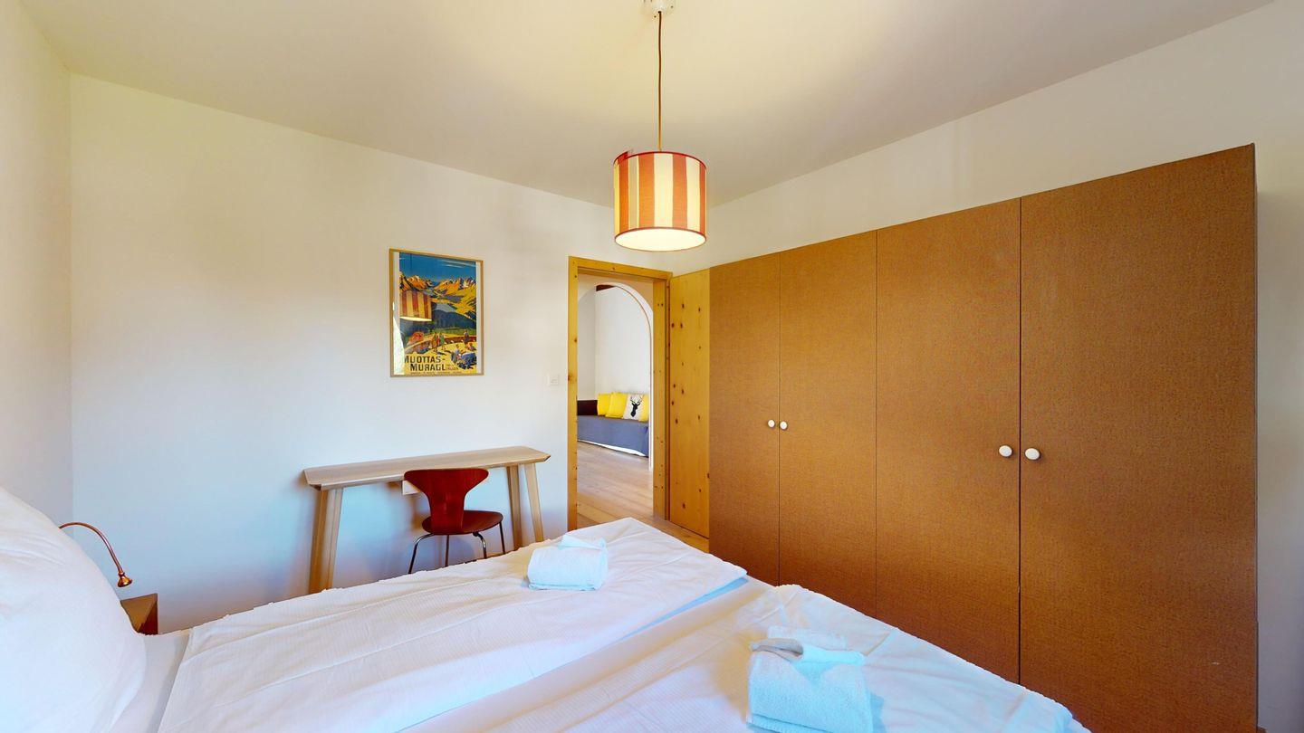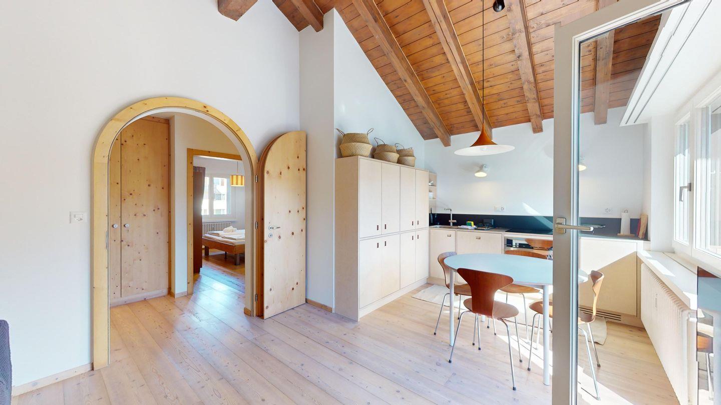 Die 3-Zimmerwohnung im Dachgeschoss, ca. 50 m², wurde Anfangs 2024 gänzlich umgebaut und renoviert. Eingang mit Garderobe. Wohnzimmer mit Südbalkon und offener Küche mit Herd, Combi-Mikrowelle, Geschirrspülmaschine, Chicco d'Oro Kaffeemaschine und Kühlschrank. Ein Schlafzimmer mit Doppelbett. Ein Schlafzimmer mit Etagenbett. Bad, WC und Lavabo. Internet und TV. Einfache Einrichtung. Garagenplatz (enge Einfahrt). Waschküche zur Mitbenützung. Haustiere sind nicht erlaubt.