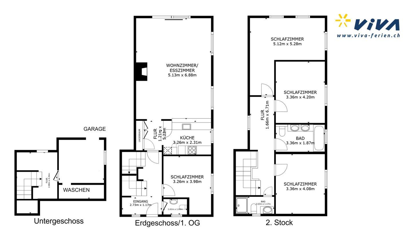 In diesem seltenen Objekt in Celerina, wo Mietmöglichkeiten in Häusern rar sind, erwartet Sie die perfekte Kulisse für unabhängige und erholsame Familienferien. Sie fahren mit dem Auto direkt ins Untergeschoss zu Ihrer Garageneinfahrt (250cm breit x 210cm hoch). Von dort erreichen Sie einen grossen Disponibel Raum mit Garderobe, Schuhablagen und Waschküche. Eine Treppe führt ins Erdgeschoss, wo der Haupteingangsbereich mit zusätzlicher Garderobe und Gäste-WC aufwartet. 1 Doppelschlafzimmer. Grosses Wohn- /Esszimmer mit Kamin. Schöner Garten mit Grill, der im Sommer zum Verweilen einlädt. Abgetrennt mit Durchreiche befindet sich die gut eingerichtete Küche. 1. Obergeschoss: 3 Doppelschlafzimmer mit grossem Bad/DU/WC sowie 1 separate DU/WC.