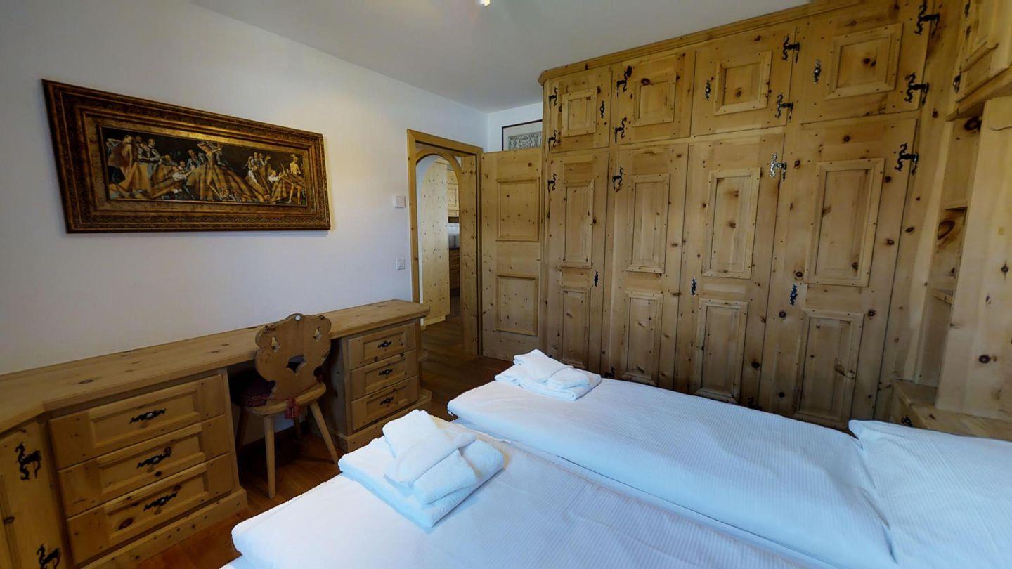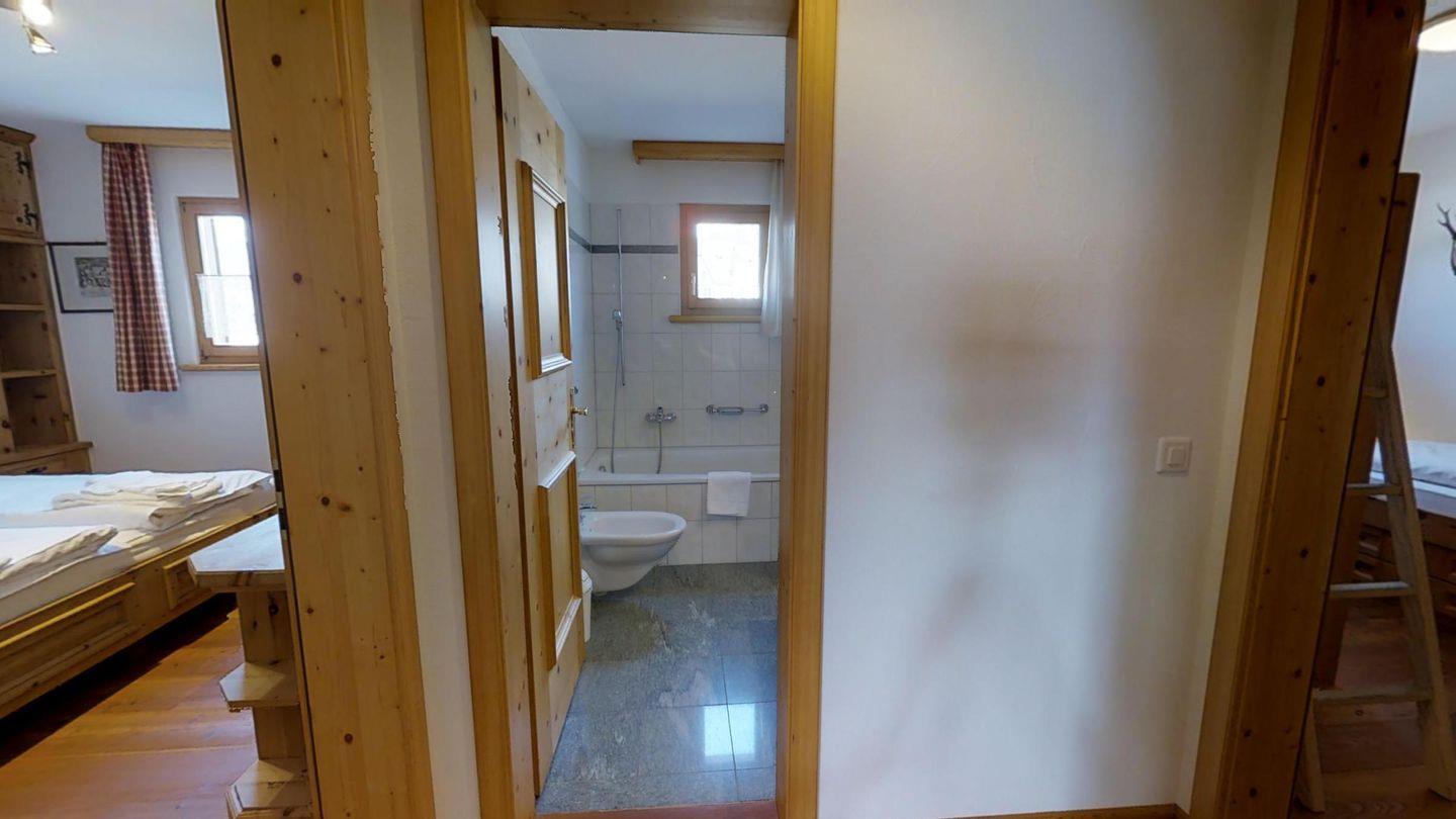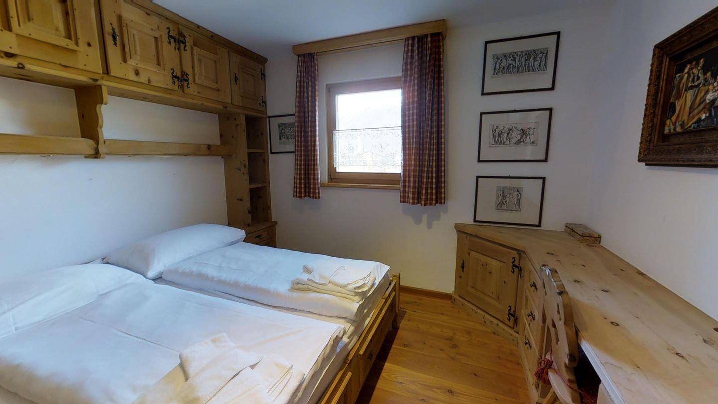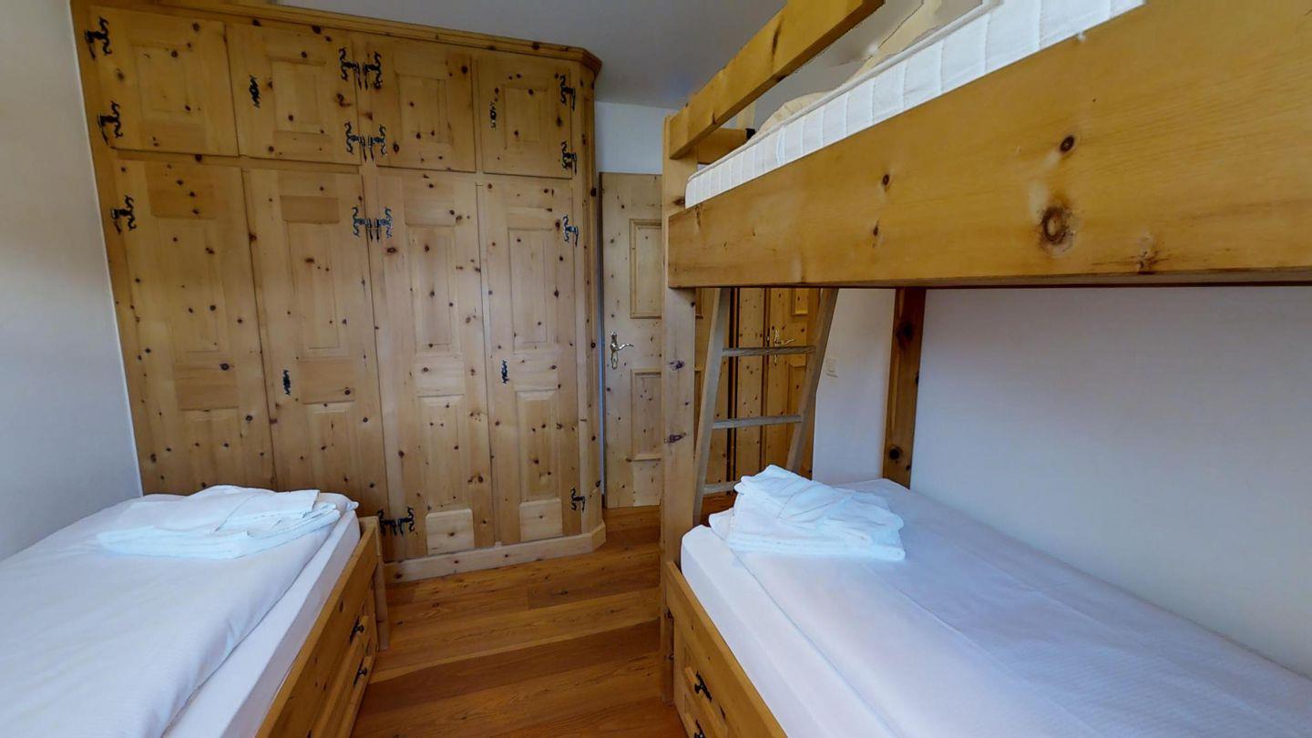 3½-Zimmerwohnung im 1. Stock, ca. 105 m2. Entree mit Garderobe. Wohn-/Esszimmer, Radio und TV. Offene Küche mit Backofen, Kühlschrank, Geschirrspüler und Kaffeemaschine (Chicco d'Oro). Doppelschlafzimmer (2x90x200). Ein Bad/WC/Bidet/Lavabo mit Fenster. Zimmer mit einem Einzelbett (90x200) und einem Etagenbett (90x200). Dusche/WC und Lavabo. Bügeleisen und Bügelbrett. Tiefgarage. Skiraum und Waschküche zur allgemeinen Benützung. Haustiere sind nicht erlaubt. Anreise Samstag