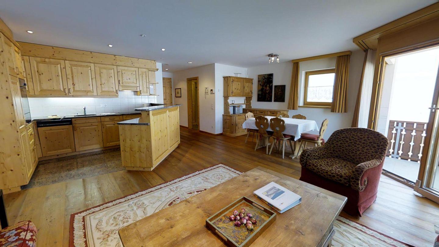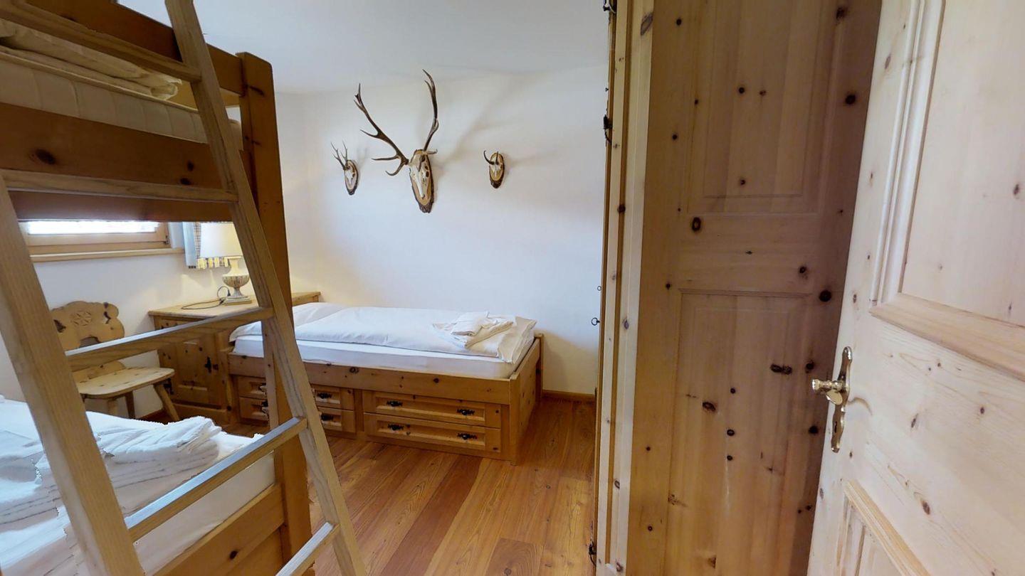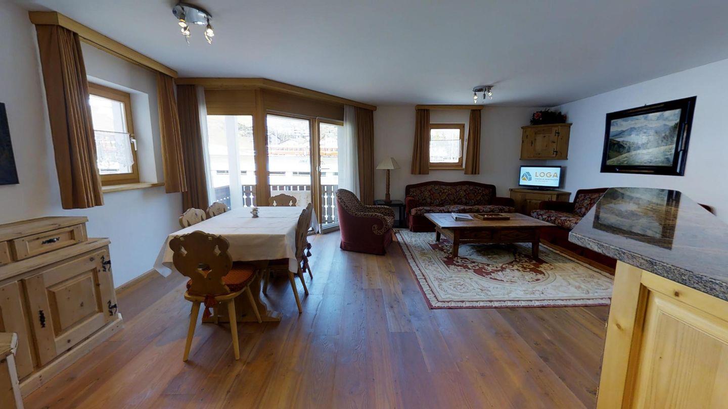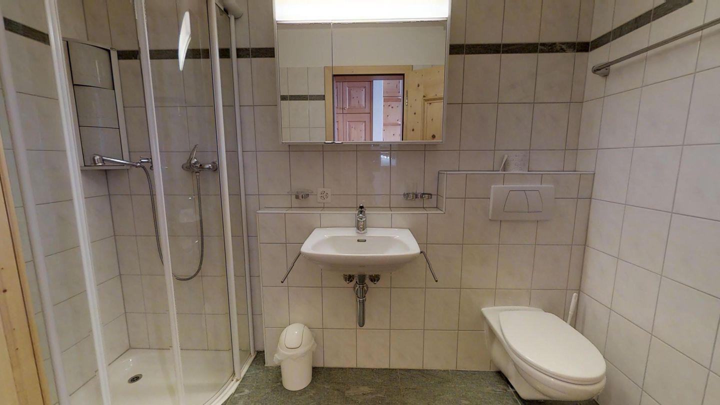 3½-Zimmerwohnung im 1. Stock, ca. 105 m2. Entree mit Garderobe. Wohn-/Esszimmer, Radio und TV. Offene Küche mit Backofen, Kühlschrank, Geschirrspüler und Kaffeemaschine (Chicco d'Oro). Doppelschlafzimmer (2x90x200). Ein Bad/WC/Bidet/Lavabo mit Fenster. Zimmer mit einem Einzelbett (90x200) und einem Etagenbett (90x200). Dusche/WC und Lavabo. Bügeleisen und Bügelbrett. Tiefgarage. Skiraum und Waschküche zur allgemeinen Benützung. Haustiere sind nicht erlaubt. Anreise Samstag
