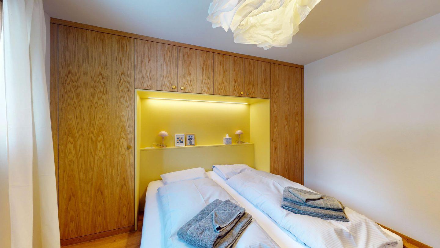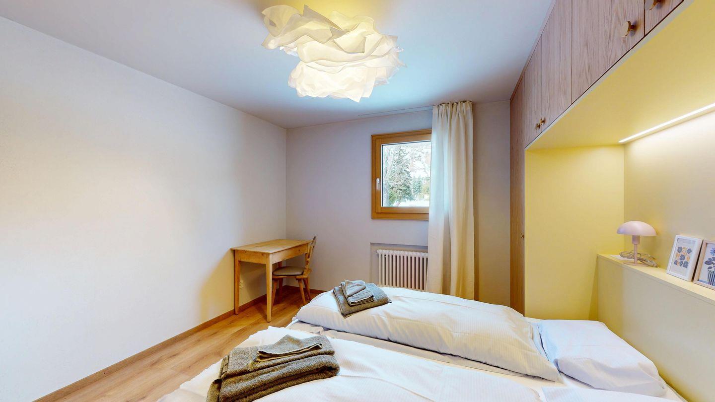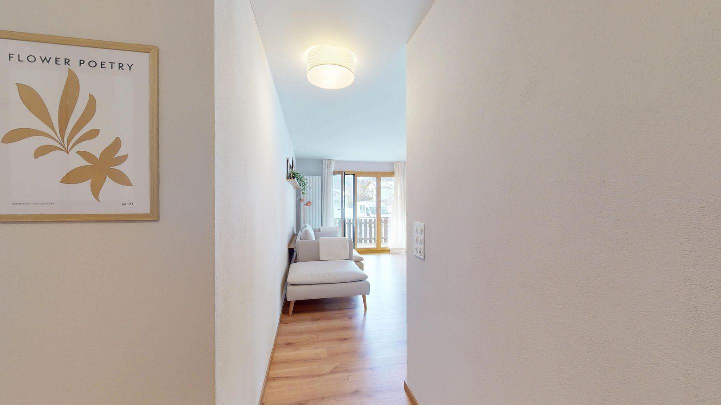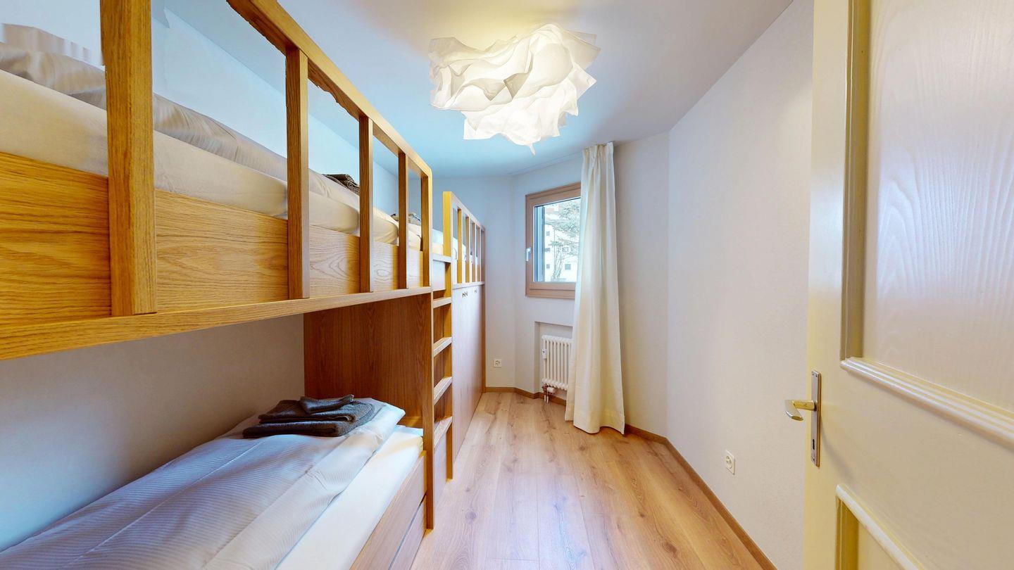 Die neu und aufwendig renovierte 3½-Zimmerwohnung im Parterre, bietet modernen Komfort an ruhigen Lage. Sie eignet sich hervorragend für Familien oder Paare. Eingang mit Garderobe, helles Wohnzimmer mit Sitzecke, Sofa, TV, Zugang zum Balkon mit schönem Bergblick. Moderne kleine Küche, mit hochwertigen Geräten ausgestattet: Kühlschrank mit Gefrierfach und zusätzlich 3 separate Gefrierfächer, Geschirrspüler, Induktionsherd, Backofen, Wasserkocher, Toaster und Chicco d`Oro Kaffeemaschine. Ein Doppelschlafzimmer. Ein 2. Schlafzimmer mit 2 Hochbetten und ein Einzelbett. Badezimmer mit Badewanne/WC/Bidet, zusätzliches Gäste-WC. Ein Garagenplatz.