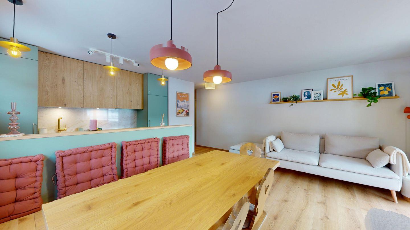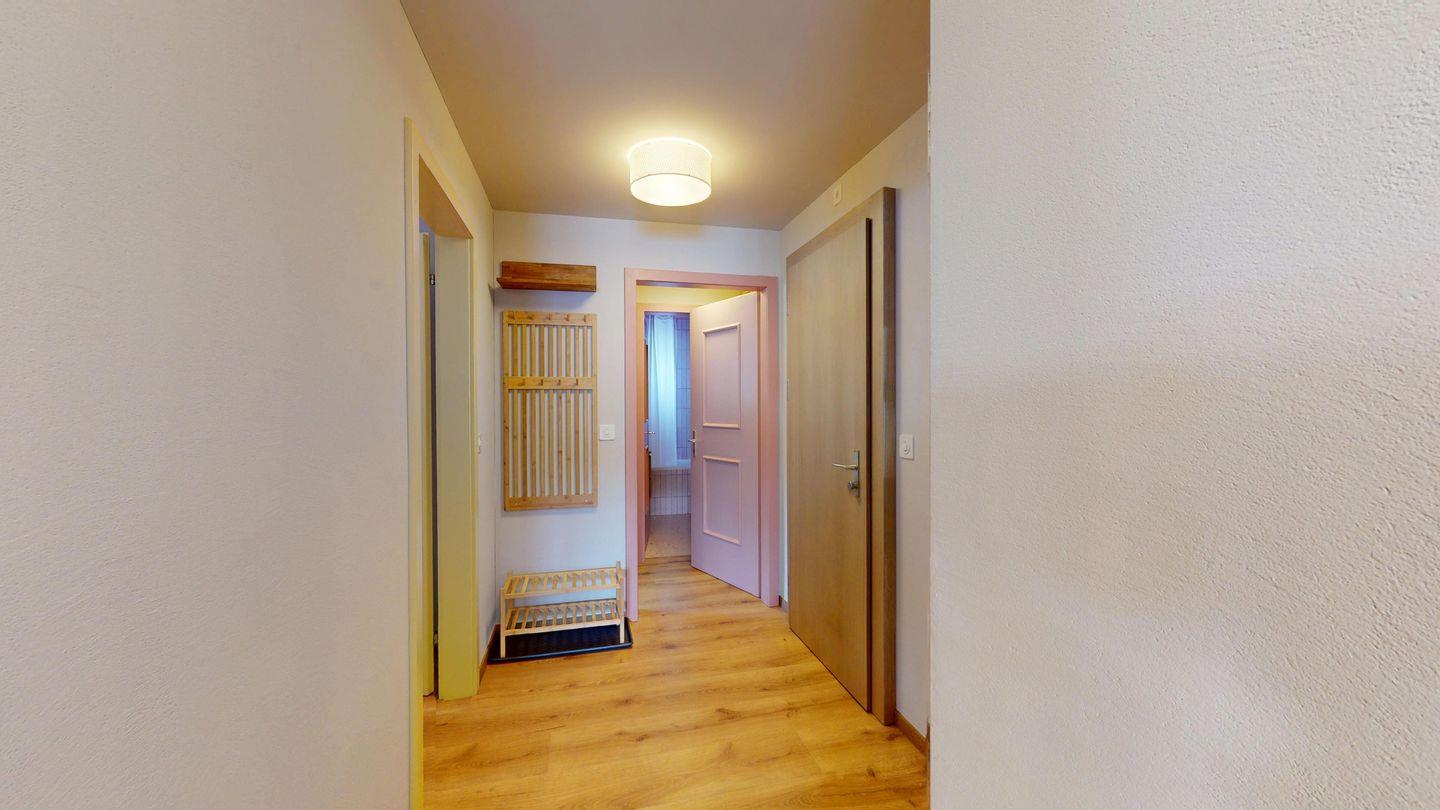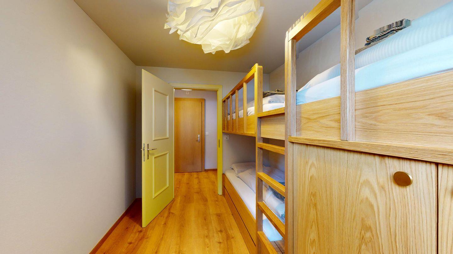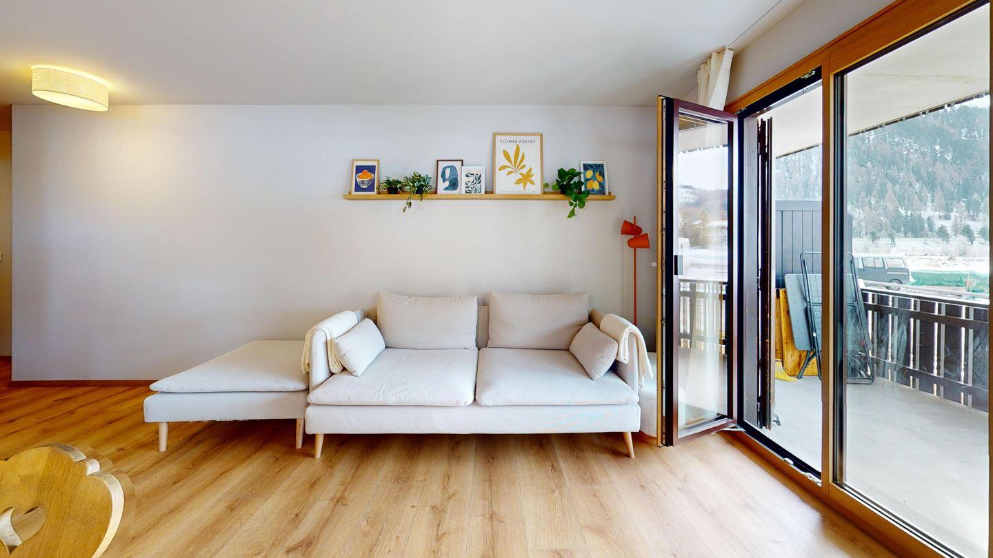 Die neu und aufwendig renovierte 3½-Zimmerwohnung im Parterre, bietet modernen Komfort an ruhigen Lage. Sie eignet sich hervorragend für Familien oder Paare. Eingang mit Garderobe, helles Wohnzimmer mit Sitzecke, Sofa, TV, Zugang zum Balkon mit schönem Bergblick. Moderne kleine Küche, mit hochwertigen Geräten ausgestattet: Kühlschrank mit Gefrierfach und zusätzlich 3 separate Gefrierfächer, Geschirrspüler, Induktionsherd, Backofen, Wasserkocher, Toaster und Chicco d`Oro Kaffeemaschine. Ein Doppelschlafzimmer. Ein 2. Schlafzimmer mit 2 Hochbetten und ein Einzelbett. Badezimmer mit Badewanne/WC/Bidet, zusätzliches Gäste-WC. Ein Garagenplatz.