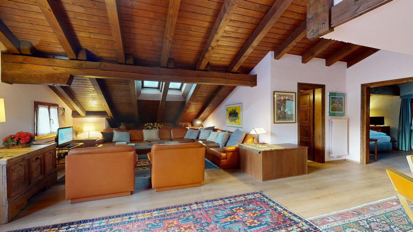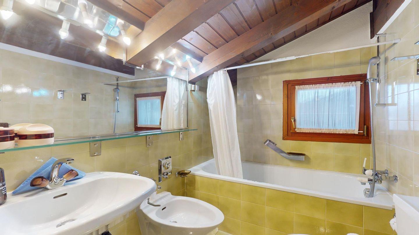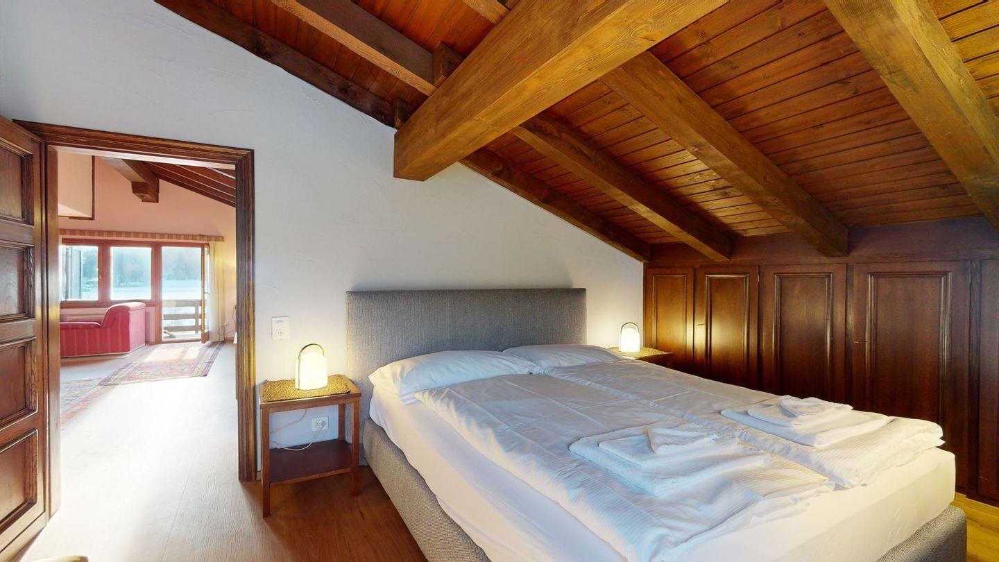 3-Zimmerwohnung im 3. Stock, ca. 80 m2. Eingang mit Garderobe. Grosses Wohn-/ Esszimmer mit Kamin und Südbalkon. TV, Radio und CD. Separate Küche mit Fenster, Backofen, Geschirrspülmaschine, Chicco d'Oro Kaffeemaschine, Toaster und Kühlschrank. Ein Doppelzimmer (160x190). Bad mit Badewanne/Bidet/Lavabo/WC. Vom Wohnzimmer führt eine Treppe zur geschlossenen Galerie, wo sich zwei Einzelbetten (2X80x190) sowie ein Bad mit Badewanne/WC/Lavabo befinden. Bügeleisen und Bügelbrett. Sehr komfortable Möblierung. Garagenplatz. Waschküche zur gemeinsamen Benützung. Haustiere sind nicht erlaubt. Anreise Samstag