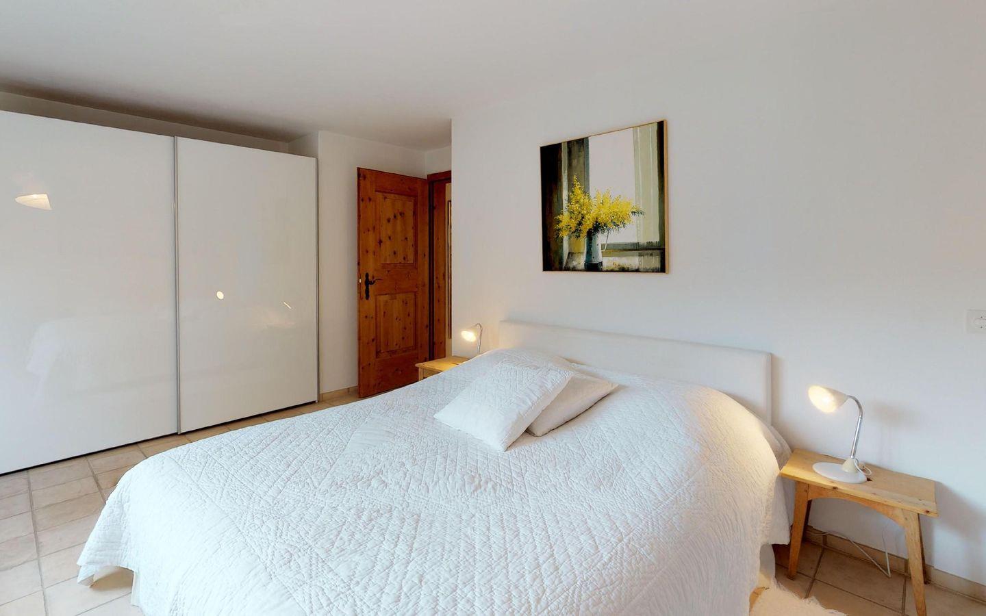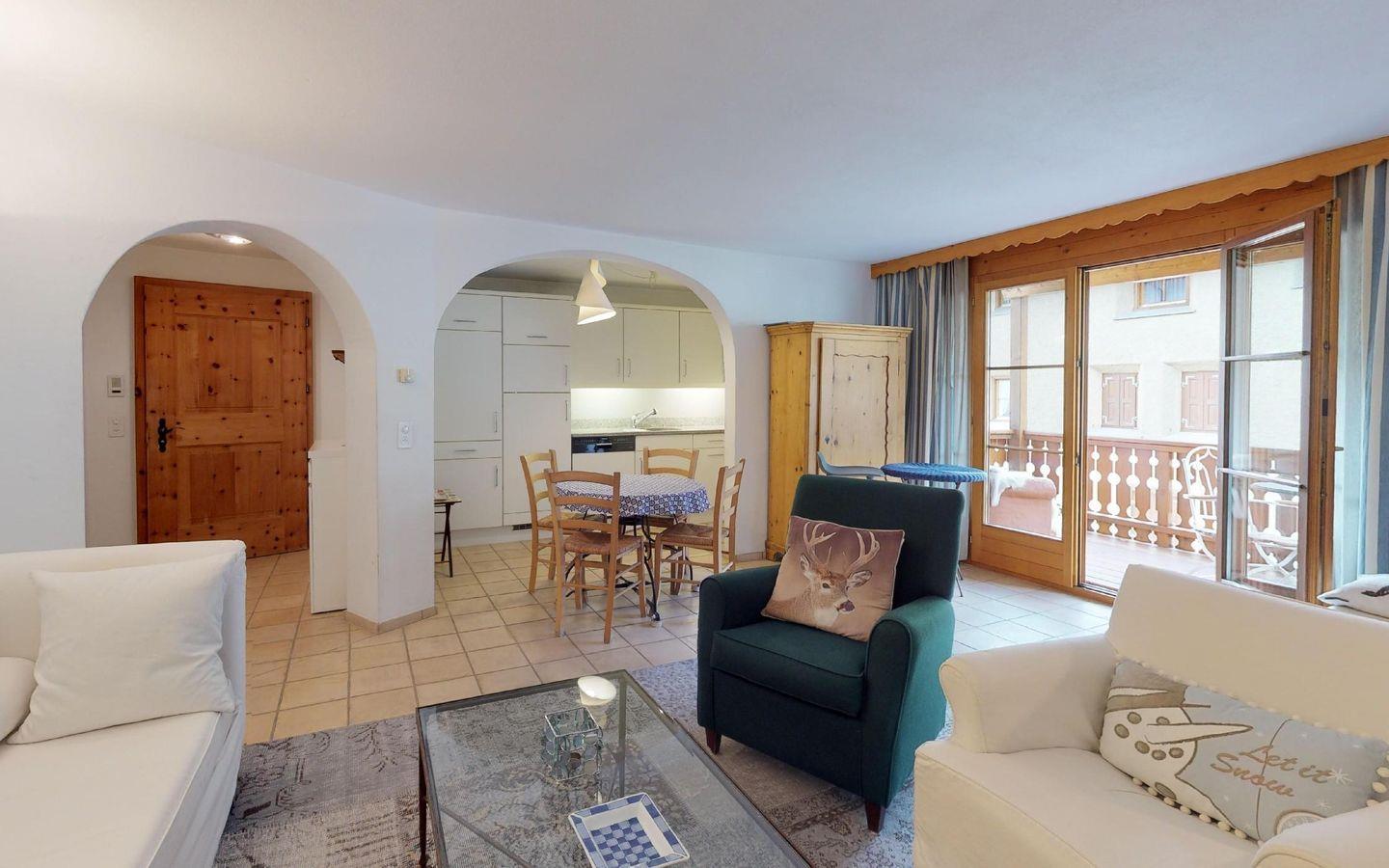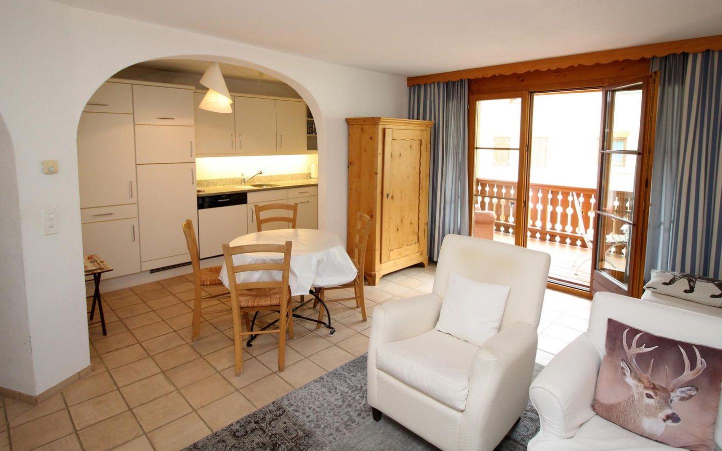 Sehr schöne, grosszügige Ferienwohnung im 2. Stock. Wohn- /Esszimmer mit Kaminofen und Balkon. Offene Küche. Bad/Dusche. Doppelschlafzimmer. Garagenplatz.
