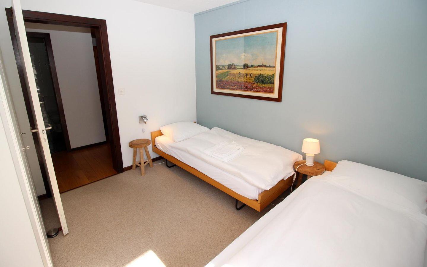 Praktische 4- Zimmer - Familienwohnung mit Wohn- /Esszimmer, Kamin und Terrasse. Separate Küche. 2 Doppelschlafzimmer, ein Schlafzimmer mit Stockbetten. Bad/Dusche sowie separate Dusche, 1 privater Garagenplatz.