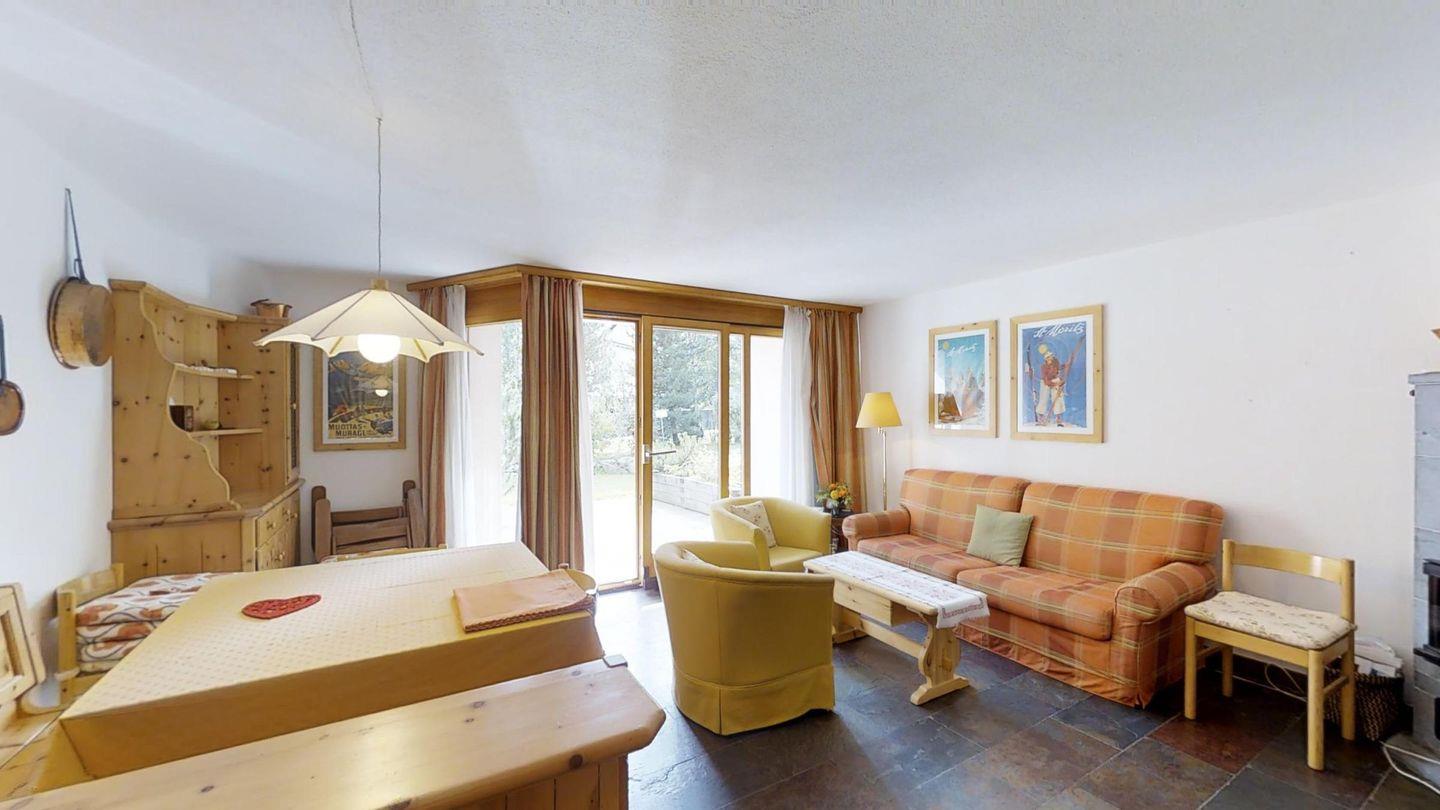 3 – Zimmerwohnung, ca.70 m², im EG. Eingang mit Garderobe. Wohn-/Esszimmer mit Fernseher, Radio, CD und Internet. Ausgang auf den Gartensitzplatz. Offene Küche mit Backofen, Geschirrspülmaschine, Kaffeemaschine (Chicco d'Oro), Raclette und Fondue Set, Wasserkocher und Kühlschrank. Ein Doppelzimmer mit Bad Dusche/WC/Lavabo. Ein Zimmer mit Kajüttenbett und ein Einzelbett. Ein Bad mit Wanne/WC und Lavabo. Waschküche zur gemeinsamen Benützung. Zur Wohnung gehört auch ein Garagenparkplatz max. Höhe 1.90M. Haustiere sind nicht erlaubt.
