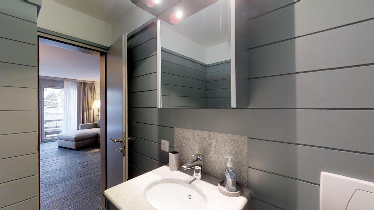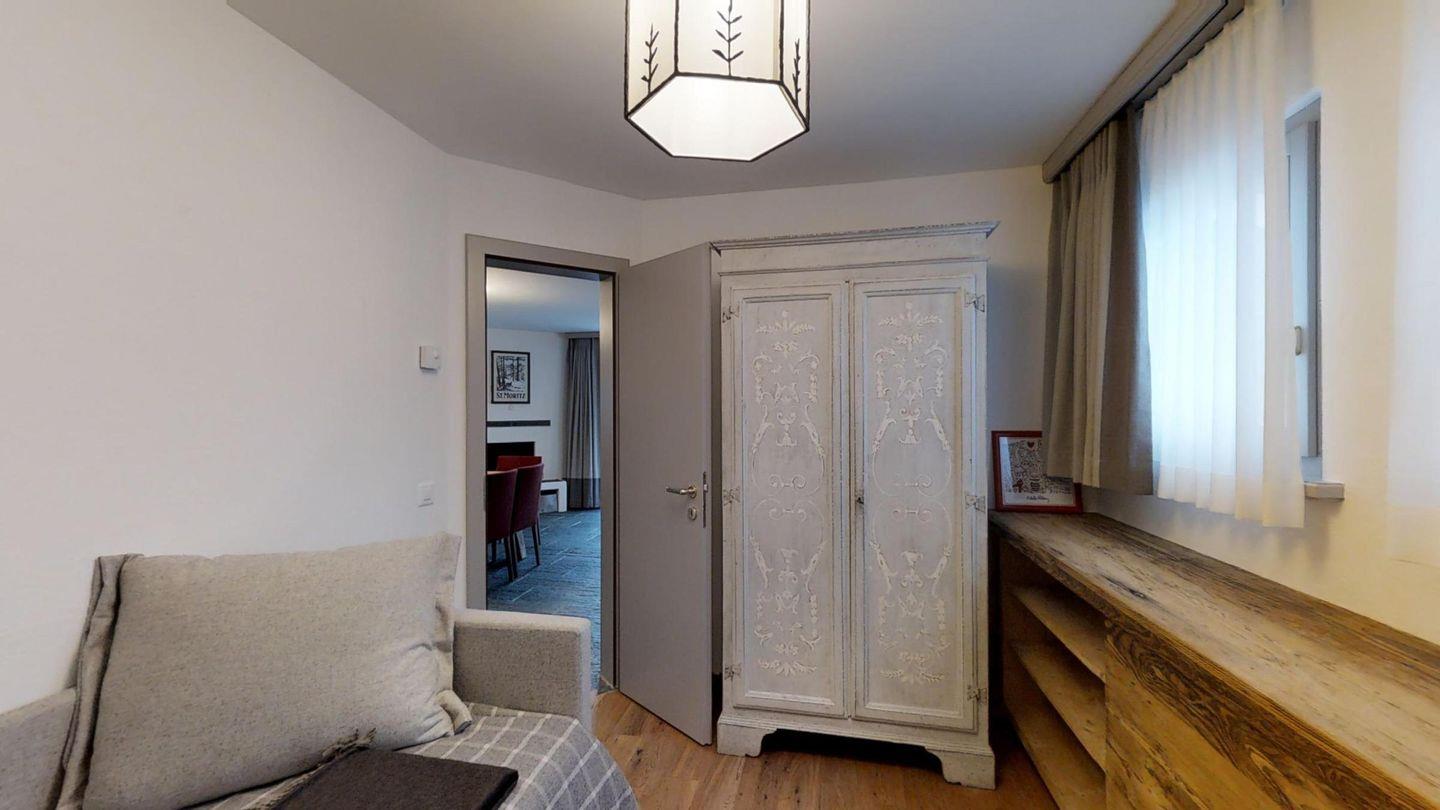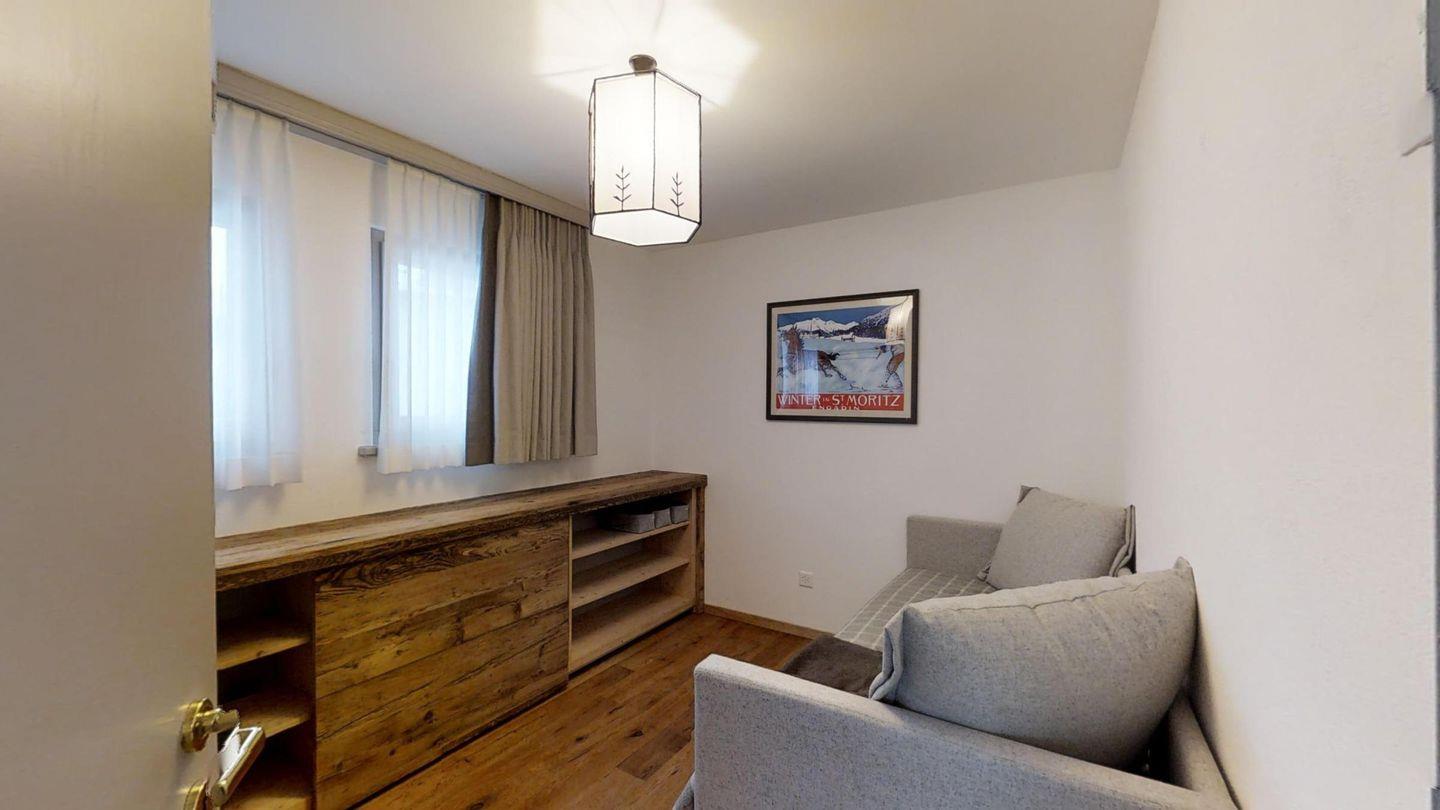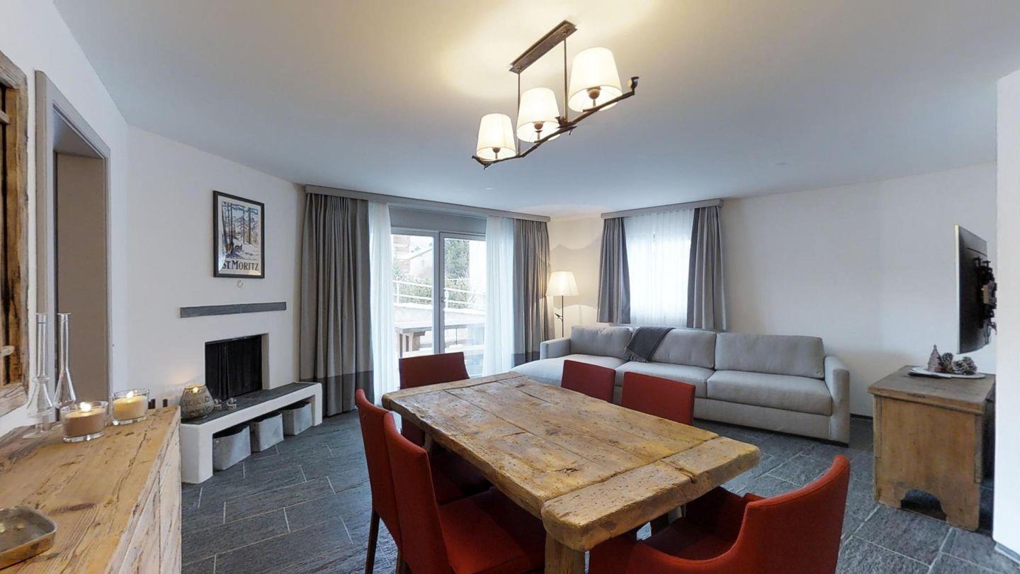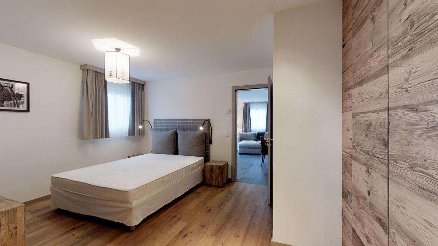 3-Zimmerwohnung im EG, ca. 90 m2. Entree mit Garderobe. Wohn-/Esszimmer mit Gartensitzplatz. Radio, Internet und TV. Küche mit Backofen, Kühlschrank, Geschirrspüler und Kaffeemaschine (Chicco d'Oro). Ein Doppelschlafzimmer (160 cm). Ein Bad/WC/Bidet und Lavabo. Ein Zimmer mit Schlafsofa. Dusche/WC/Bidet und Lavabo. Ein Garagenplatz. Eigener Waschraum (Waschmaschine und Tumbler) mit Bügelgelegenheit. Zur Mitbenützung im Haus: Spielzimmer mit Tischtennis und Skiraum. Haustiere sind erlaubt. Anreise Samstag