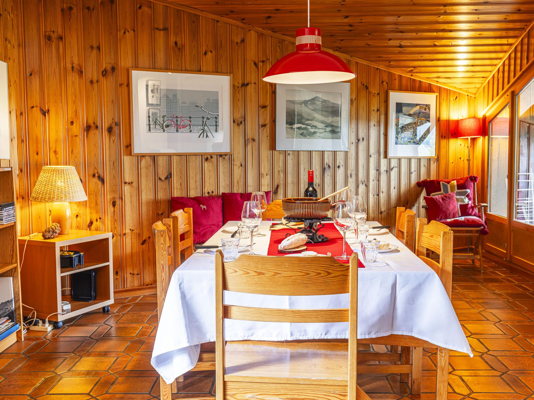 "Champbois", 3-room apartment on 3rd floor. Comfortable and tasteful furnishings: living/dining room with open-hearth fireplace and cable TV. Exit to the balcony. 1 room with 2 beds (90 cm, length 200 cm). 1 room with 1 bed (90 cm, length 200 cm), 1 x 2 bunk beds (90 cm, length 200 cm). Open kitchen (oven, dishwasher, 4 ceramic glass hob hotplates, toaster, kettle, electric coffee machine, Capsules for coffee machine (Nespresso), fondue Set (chinoise)). Exit to the balcony. Bath/WC, shower/WC. Electric heating. 2 balconies. Balcony furniture. Beautiful view of the mountains and the resort. Facilities: washing machine (extra). Dryer (extra), baby cot for up to 3 year olds. Internet (WiFi). Parking at the house. Please note: non-smokers only. Multipass in summer included. 15927900201220