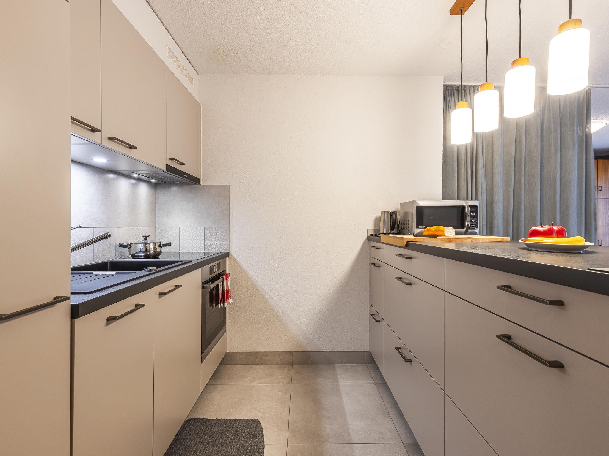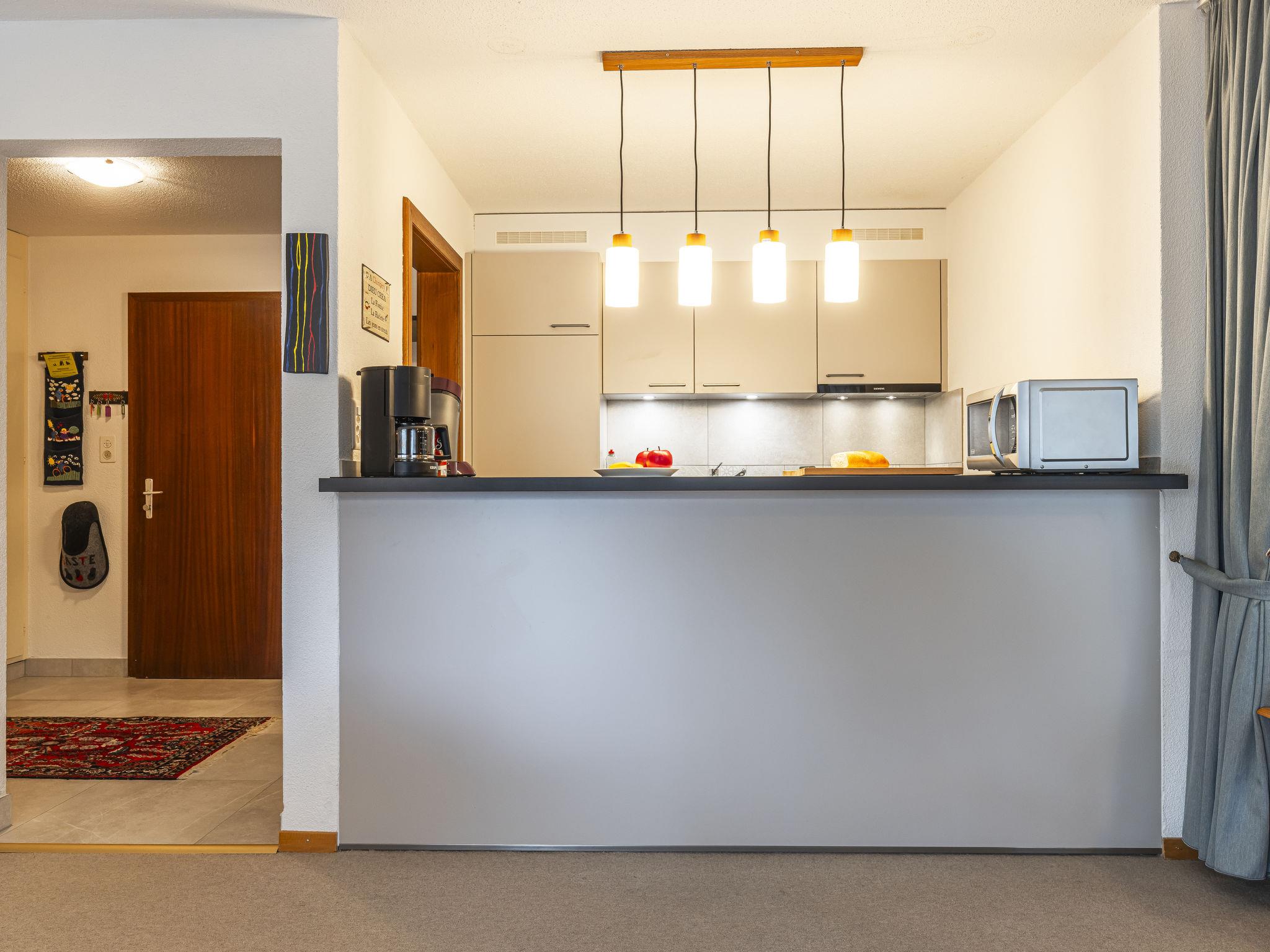 "Grand-Pré A", 2-room apartment on 2nd floor. Comfortable and cosy furnishings: living/sleeping room with 2 beds (90 cm, length 190 cm), TV. Exit to the balcony. 1 room with 1 double bed (2 x 90 cm, length 200 cm). Exit to the balcony. Open kitchen (oven, dishwasher, 4 ceramic glass hob hotplates, kettle, microwave, electric coffee machine, raclette grill, fondue Set (chinoise, cheese)) with hatch. Bath/WC. Large balcony. Balcony furniture. Marvellous view of the mountains, the countryside and the resort. Facilities: washing machine, dryer, hair dryer. Internet (WiFi). Parking at the house. Please note: non-smokers only.