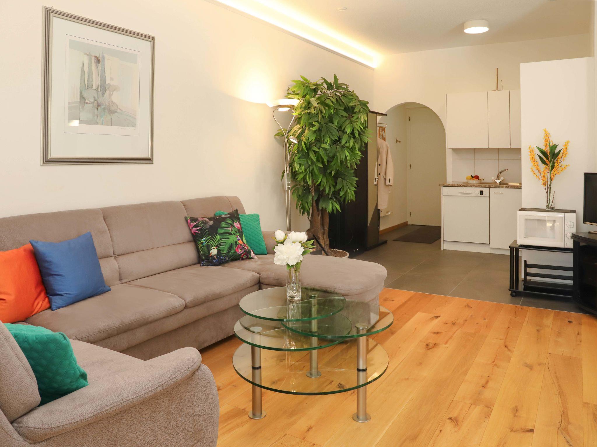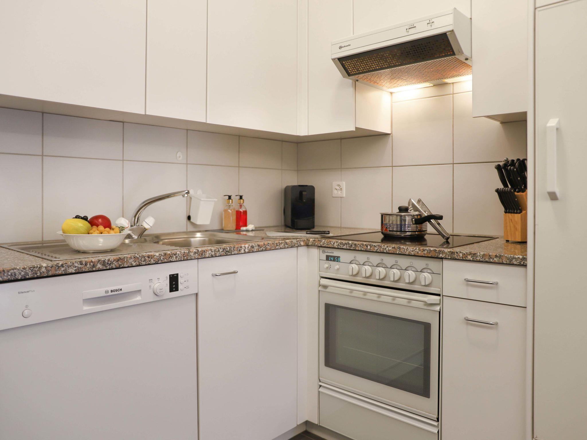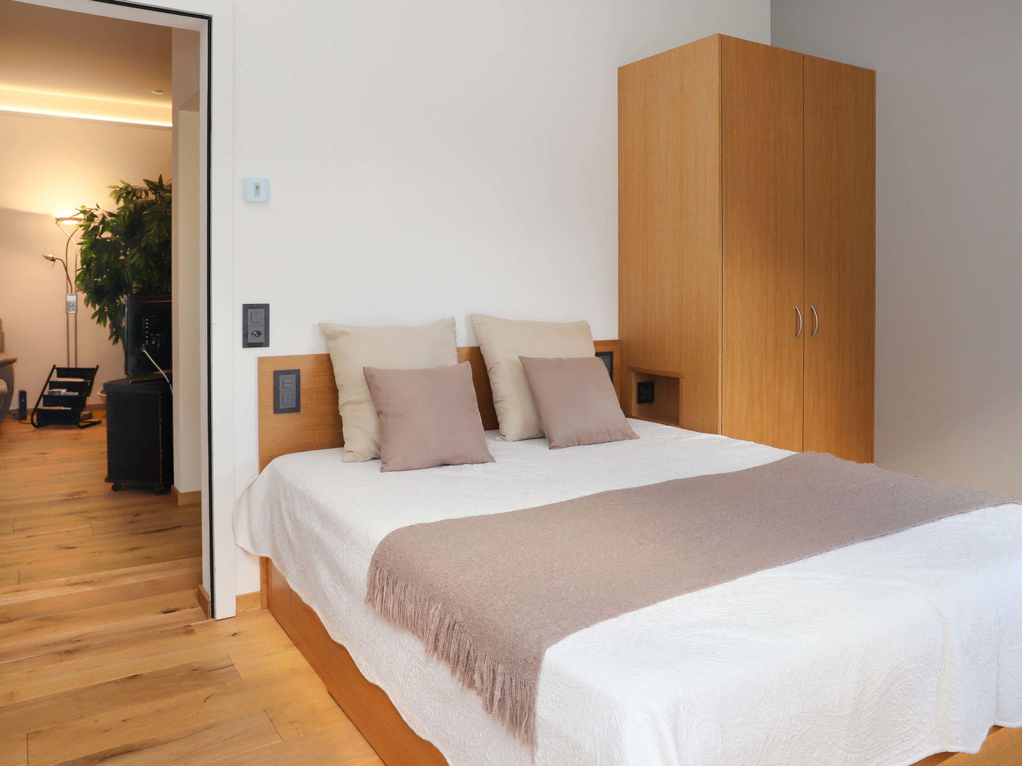 "Alpes et Lac 40", 3-room apartment 65 m2 on 4th floor. Spacious and bright, comfortable and beautiful furnishings: large living/dining room with open-hearth fireplace and cable TV. Exit to the balcony. 1 room with 1 french bed (1 x 160 cm, length 200 cm). Exit to the balcony. 1 large room with 1 french bed (1 x 160 cm, length 200 cm). Exit to the balcony. Kitchenette (oven, dishwasher, 4 ceramic glass hob hotplates, microwave, electric coffee machine, Capsules for coffee machine (Delizio) extra, raclette grill, fondue Set (chinoise, cheese)). Bath/WC, double hand-basin. Marvellous panoramic view of the lake and the mountains. Facilities: children's high chair, baby cot, hair dryer. Internet (WiFi, free). Garage space n 32. E-charging station. Please note: non-smokers only. the last two floors accessible by an external staircase.