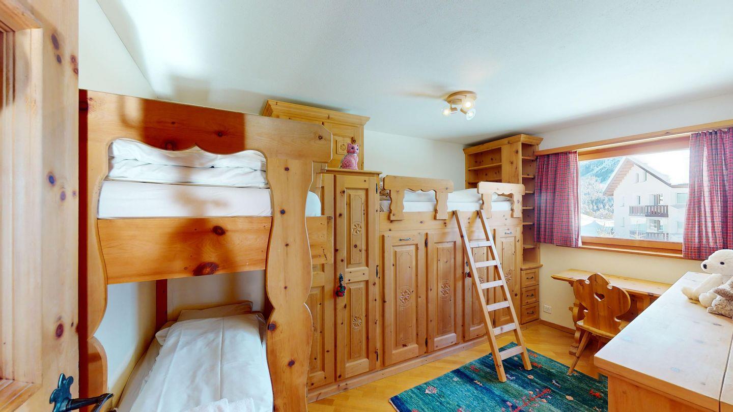 Grosszügige 4.5-Zimmer-Ferienwohnung in Champfèr. Helle Ferienwohnung mit viel Platz zum Wohlfühlen. Das Wohnzimmer verfügt über eine Sofaecke, Esstisch, SAT-TV und Smart-TV. Von hier gelangen Sie auf den sonnigen Balkon. Die komplett ausgestattete Küche lässt keine Wünsche offen. Es gibt ein Elternschlafzimmer mit Doppelbett, ein zweites Schlafzimmer mit Doppelbett und ein Kinderzimmer mit Etagenbett. Ein Gäste-WC ist ebenfalls vorhanden.