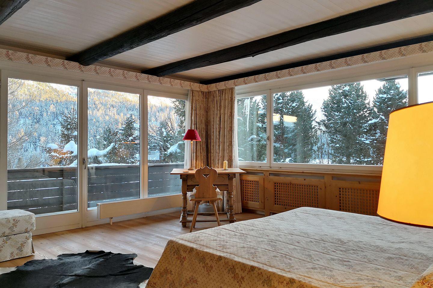 Die Ferienwohnung verfügt über überdurchschnittlich grosse Zimmer was bei Vollbelegung stets Privatsphäre garantiert. Der grosse Balkon mit Blick Richtung Piz Margna und Maloja ist ein weiteres Highlight dieser Wohnung.