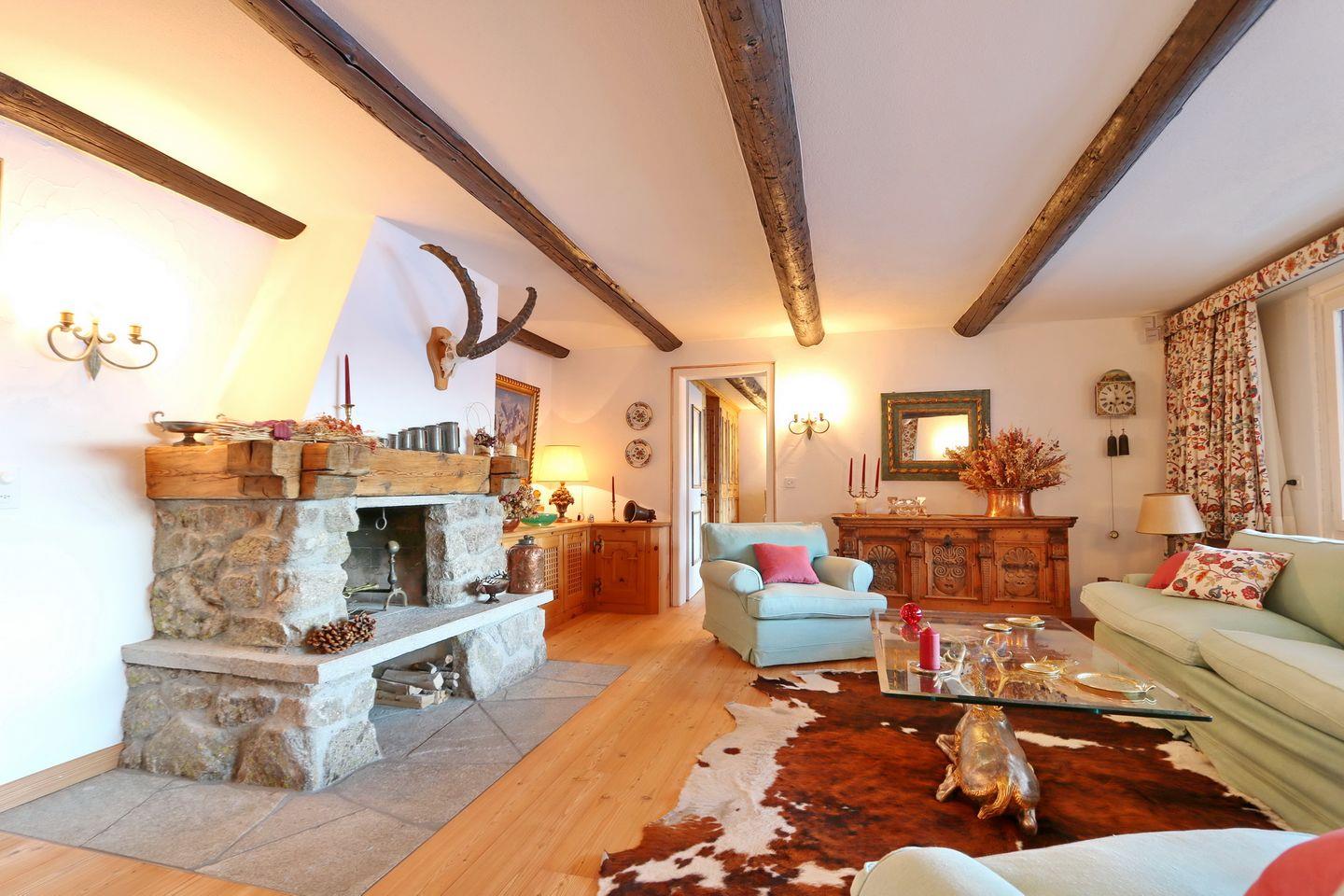 Wohnung mit Traumaussicht in Champfèr. Zwei Schlafzimmer mit en-suite Badezimmern, große Küche, geräumiges Wohnzimmer mit Kamin, großer Balkon. Garagenplatz im Nebengebäude, Gemeinschaftswaschküche. Ruhige Lage, nahe Spazierwege und Loipe.
