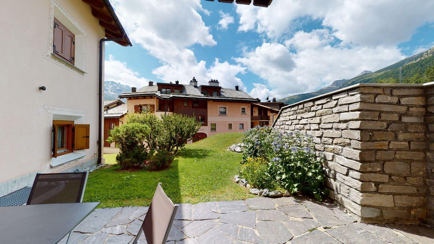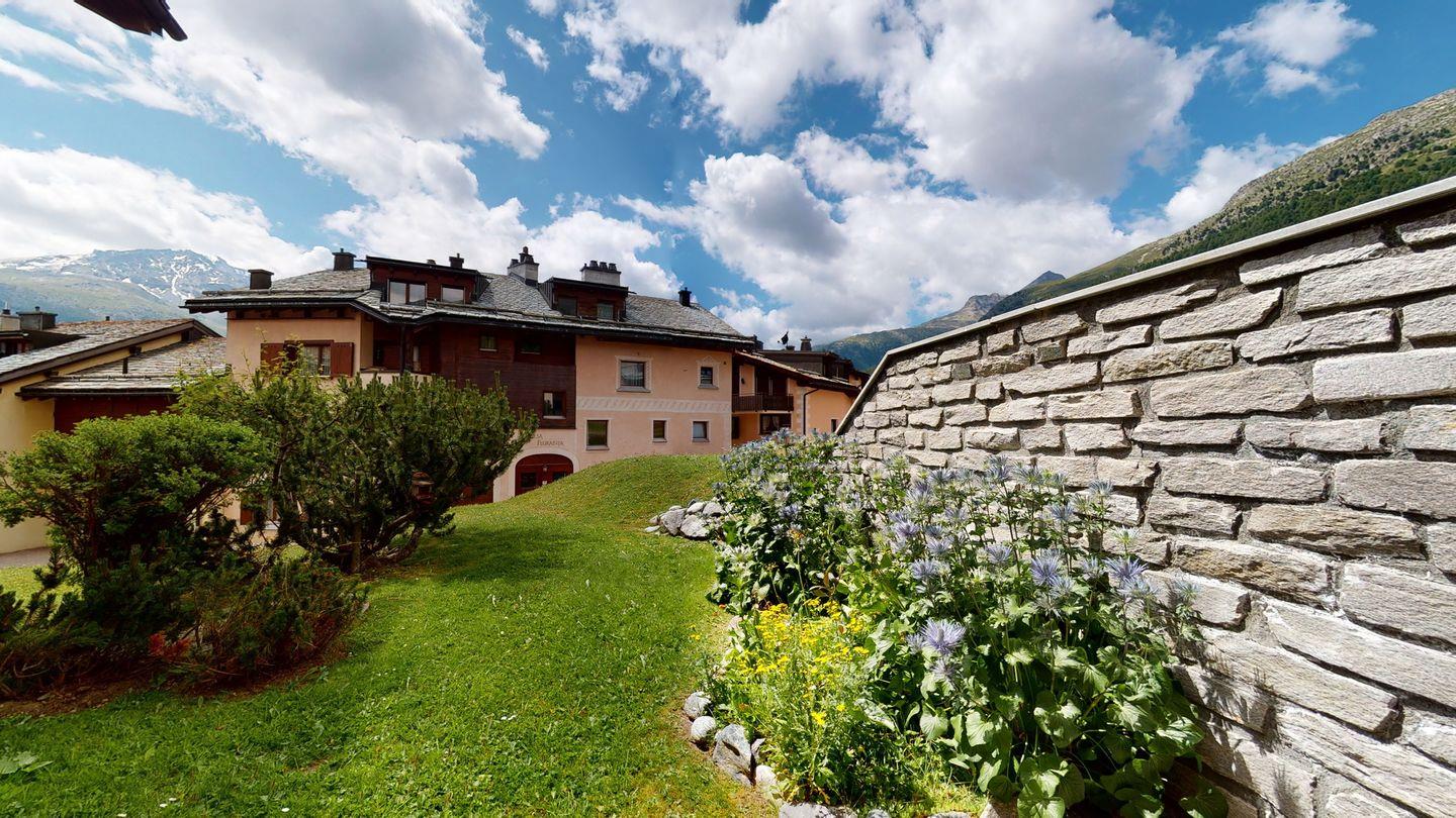 Die Wohnung befindet sich im ruihigen und verkehrsfreien Quartier Üerts. In etwa 5 Minuten zu Fuss erreicht man die Bushaltestelle. Der Lej da Champfér befindet sich ebenfalls etwa 5 Gehminuten entfernt.