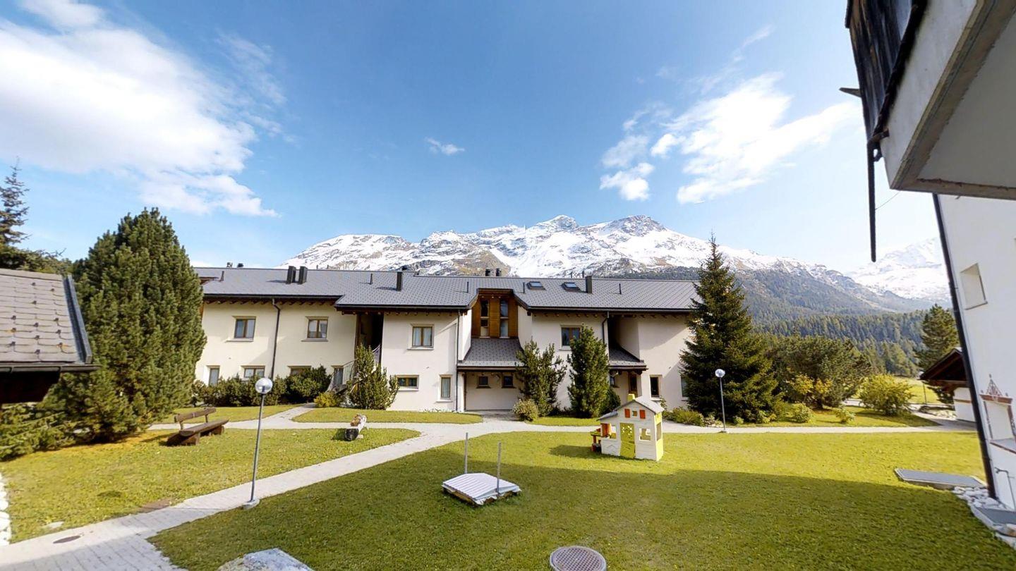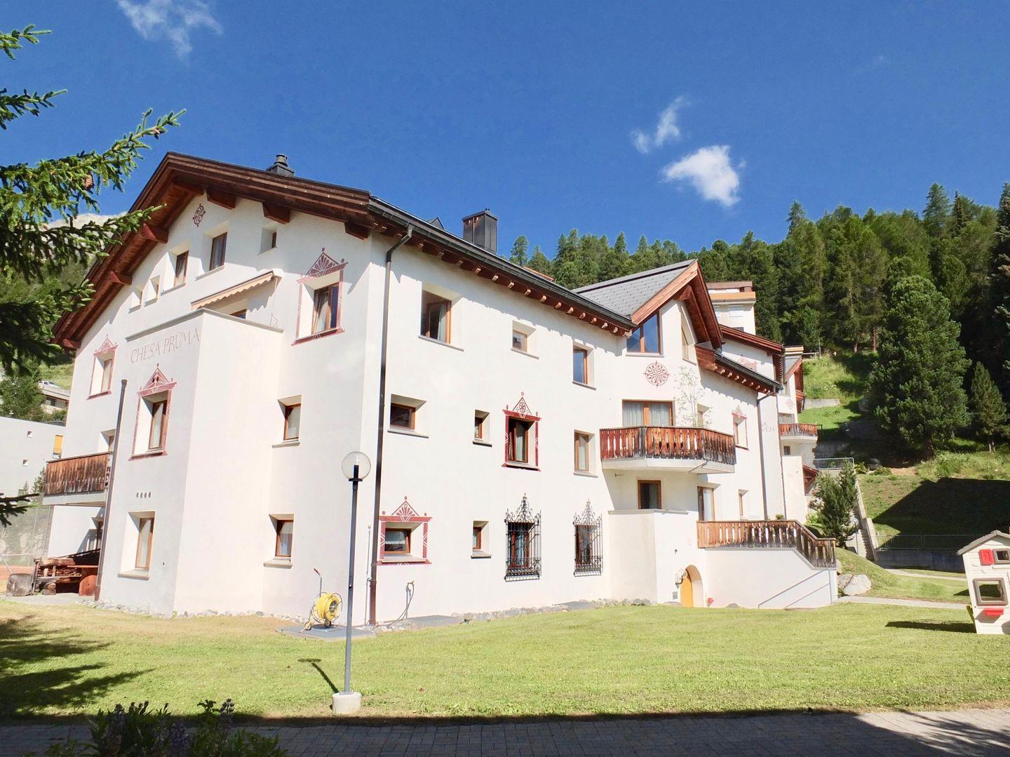 Die Chesa Prüma befindet sich in der Überbauung "Craschuns" und wurde 1994 im Engadinerstil erstellt. Die Überbauung liegt am Rande des Dorfkerns, an ruhiger Lage. Langlaufloipen, Wander- und Radwege befinden sich in unmittelbarer Nähe. Bushaltestelle, Kinderspielplatz und Lebensmittelgeschäfte finden Sie im Dorf. Das Hotel Europa mit Restaurant, Bar, Hallenbad, Sauna, Fitnessraum und eine grosse Terrasse mit Liegestühlen liegt ca. 5 Gehminuten entfern. Luftseilbahn, Tennisplätze und Surfgelegenheit befinden sich ca. 3 km entfernt. Champfèr liegt ca. 2 km von St. Moritz und von Silvaplana entfernt.