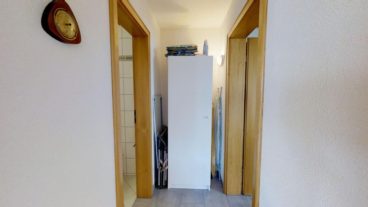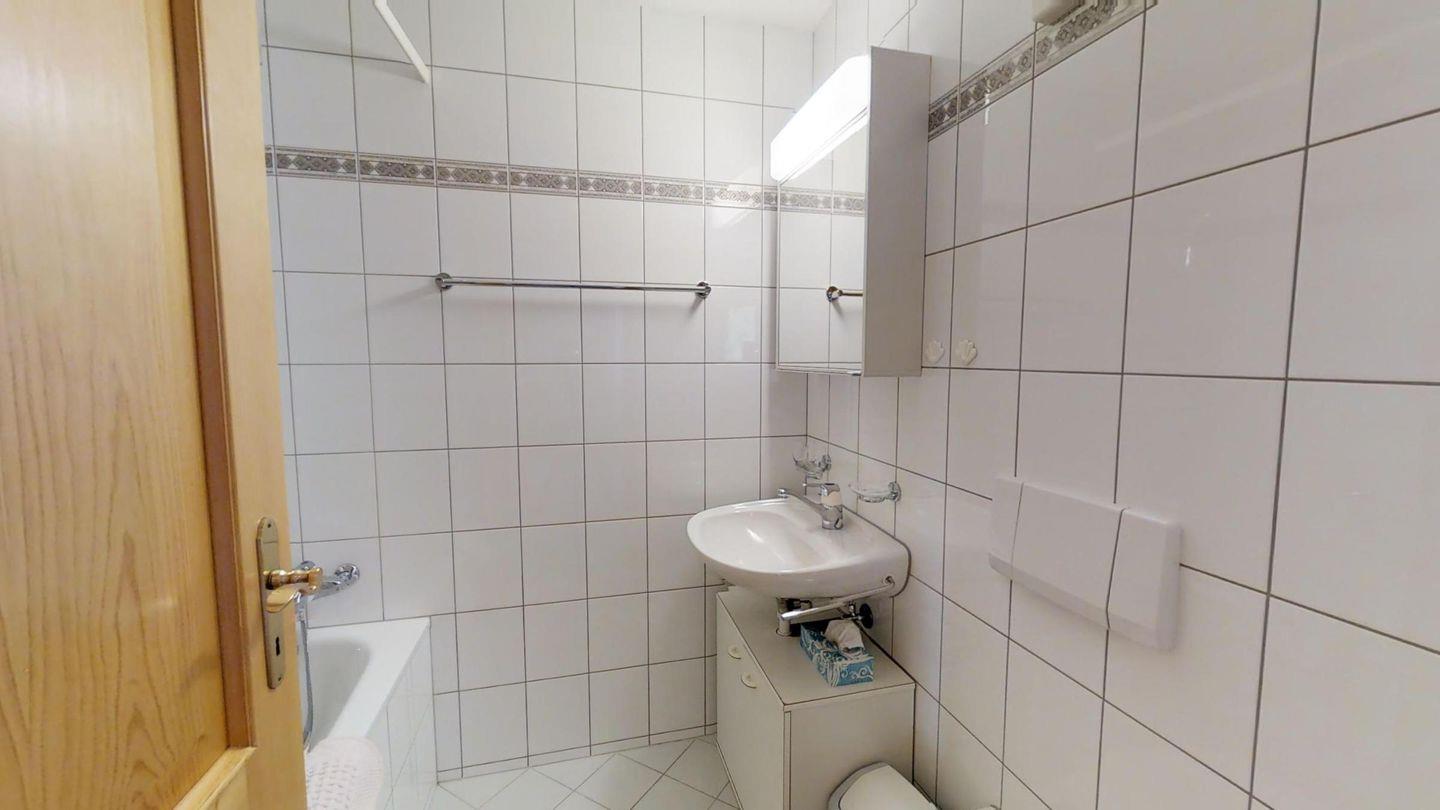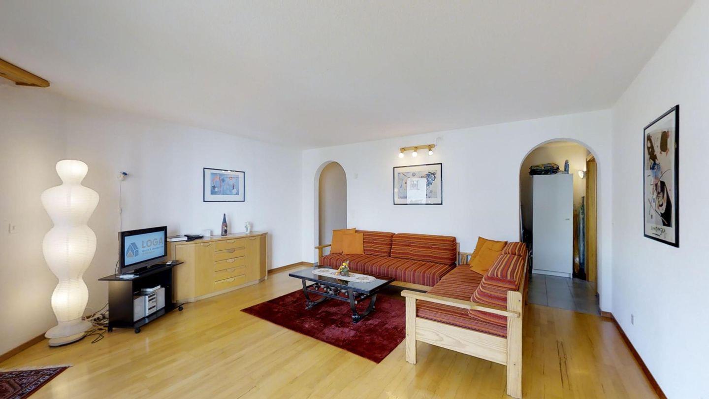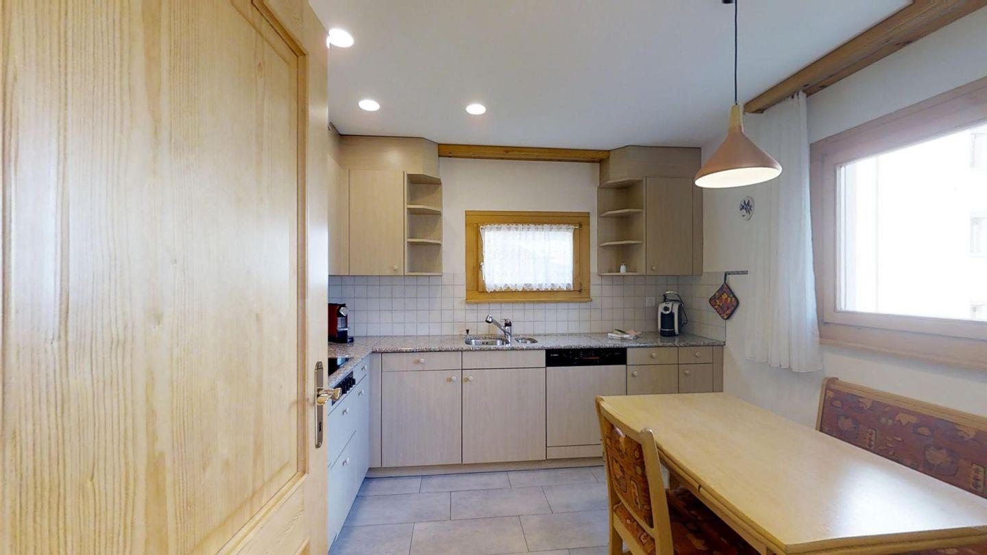 Helle 2½-Zimmerwohnung in erhöhtem Erdgeschoss, ca. 70 m2, an ruhiger Ost-Lage. Entree mit Garderobe und Wandschrank. Grosses Wohnzimmer mit zwei Einzelbetten (90x200). Sitzplatz mit Gartenmöbel. Kleiner Balkon. Telefon mit Zähler, Radio und TV. Essküche mit Geschirrspüler, Backofen und Mikrowelle. Fondue-Geschirr vorhanden. Bad, WC und Lavabo. Doppelzimmer mit zwei Einzelmatratzen (2x90x190). Neue, komfortable Einrichtung, Bodenheizung, Garagenplatz und Skiraum zur Mitbenützung. Haustiere sind nicht erlaubt.