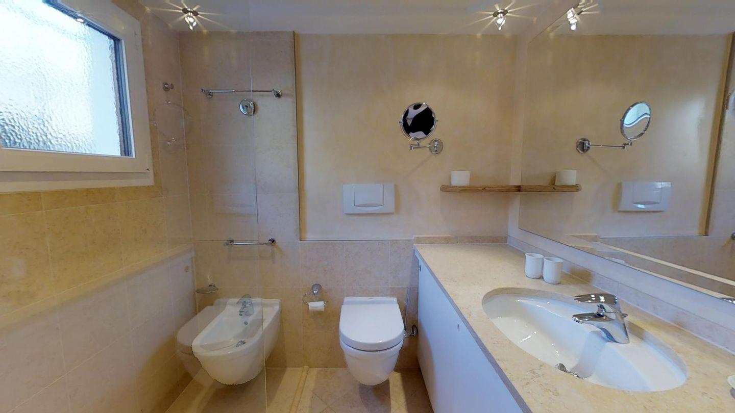 Studio im Erdgeschoss, ca. 40 m2. Sitzplatz mit Süd/Westlage, Bergsicht. Renoviert Ende 2014. Entree, kleine Küche mit Mikrowelle und Geschirrspüler, Chocco d'Oro Kaffeemaschine, Keramikplatte. Wohnzimmer mit Essecke im Engadinerstil und Sofabett. Doppelbett (180x200) aus Arvenholz. Radio mit iPod/iPhone Station und TV. Badezimmer mit Regendusche/Lavabo/Bidet/WC. Garagenplatz. Haustiere sind nicht erlaubt.