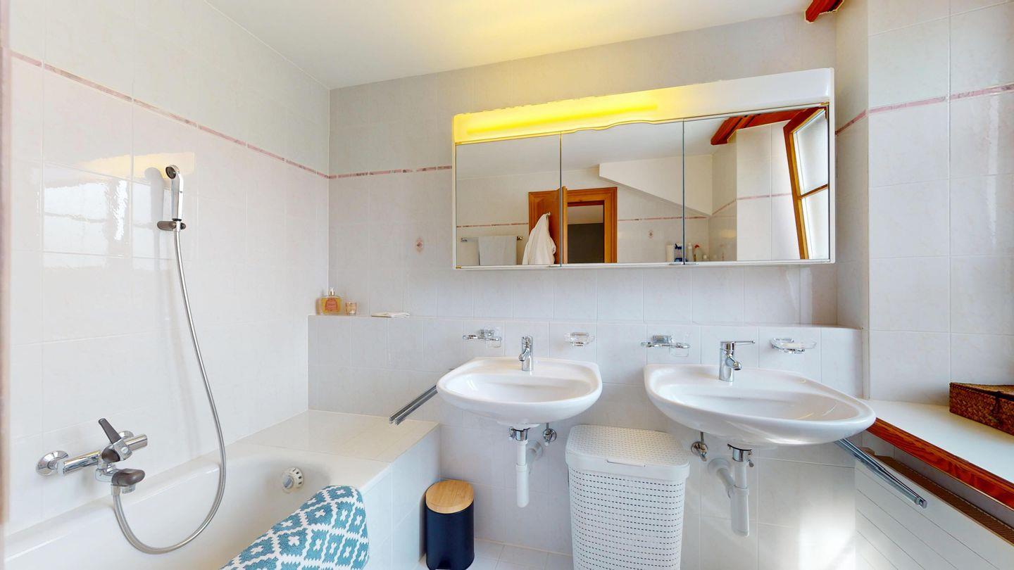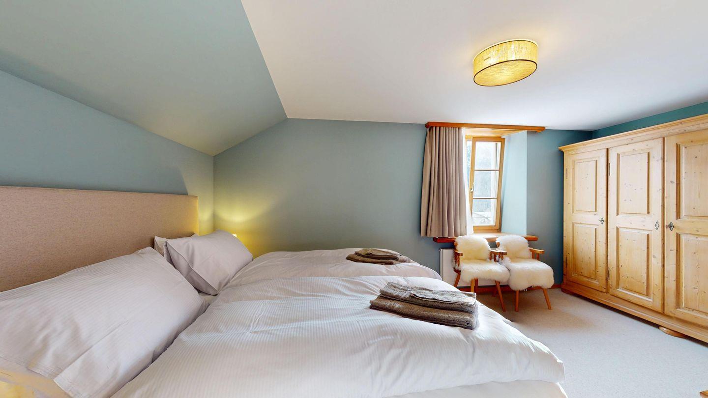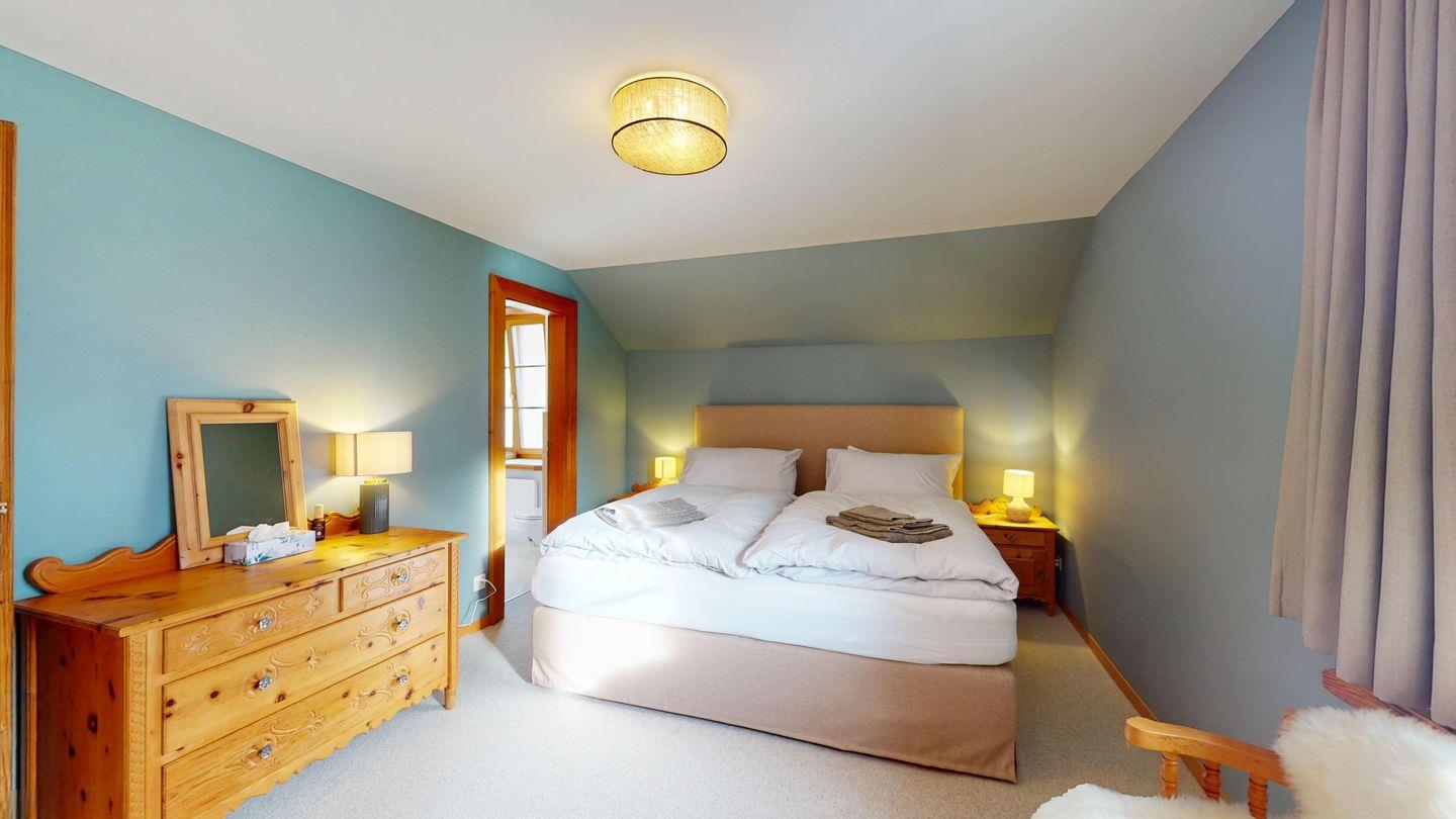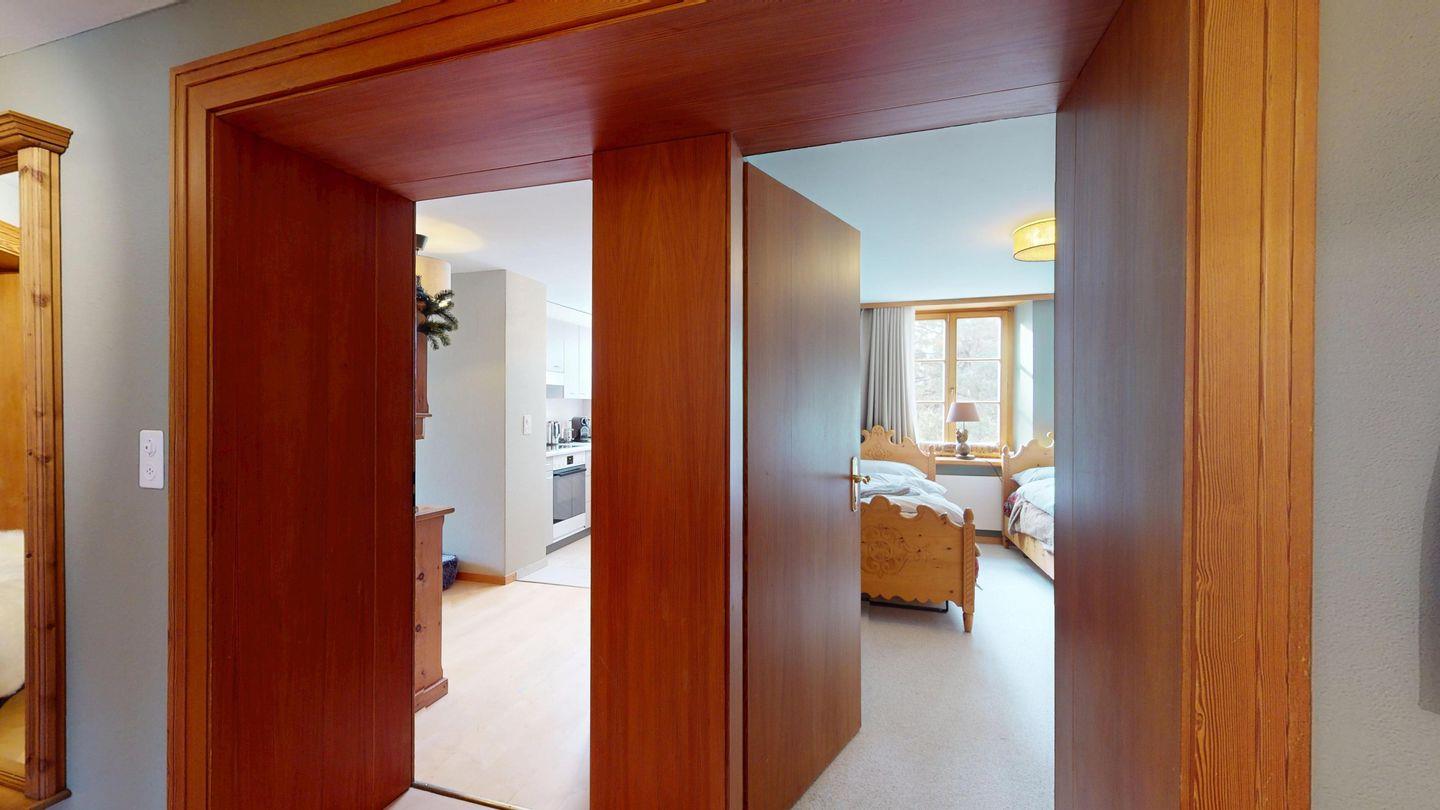 Grosszügige 4-Zimmerwohnung im 2. Stock. Eingang mit Garderobe. Wohn-/Esszimmer mit Balkon. Offene Küche mit Fenster, Backofen, Geschirrspüler und Kühlschrank. Doppelzimmer mit eigenem Badezimmer mit Badewanne/WC/Doppelwaschbecken. Ein Schlafzimmer mit zwei Einzelbetten und ein Schlafzimmer mit Etagenbett. Badezimmer mit Dusche/WC/Lavabo. 2 Garagenplätze. Haustiere sind nicht erlaubt.