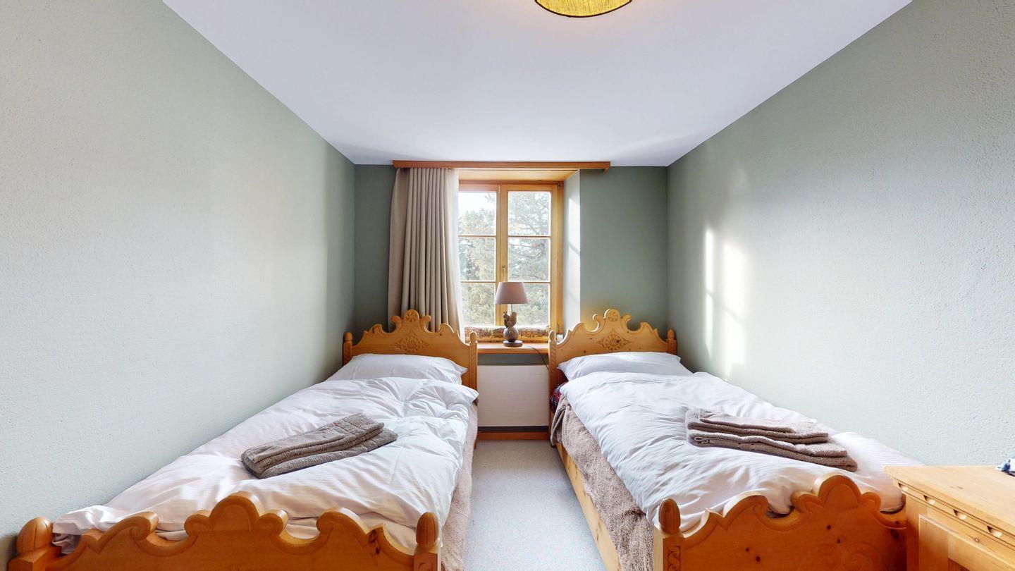 Grosszügige 4-Zimmerwohnung im 2. Stock. Eingang mit Garderobe. Wohn-/Esszimmer mit Balkon. Offene Küche mit Fenster, Backofen, Geschirrspüler und Kühlschrank. Doppelzimmer mit eigenem Badezimmer mit Badewanne/WC/Doppelwaschbecken. Ein Schlafzimmer mit zwei Einzelbetten und ein Schlafzimmer mit Etagenbett. Badezimmer mit Dusche/WC/Lavabo. Ein Aussenparkplatz. Haustiere sind nicht erlaubt.