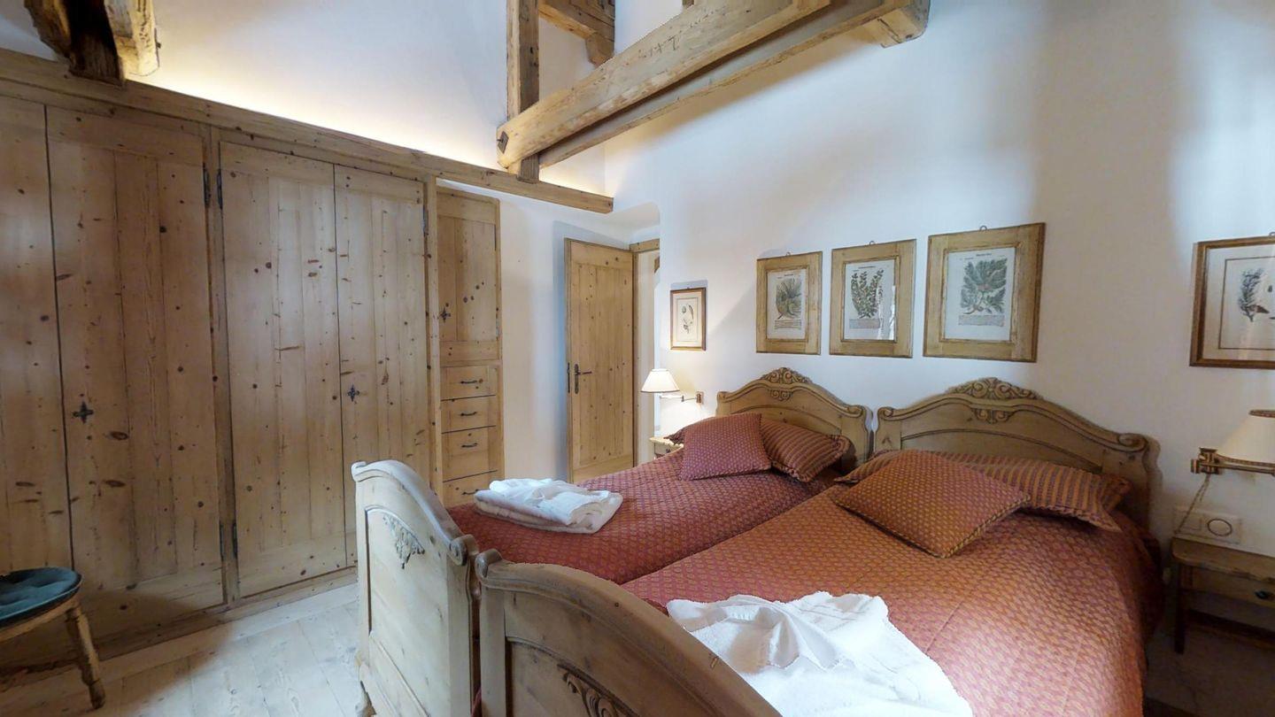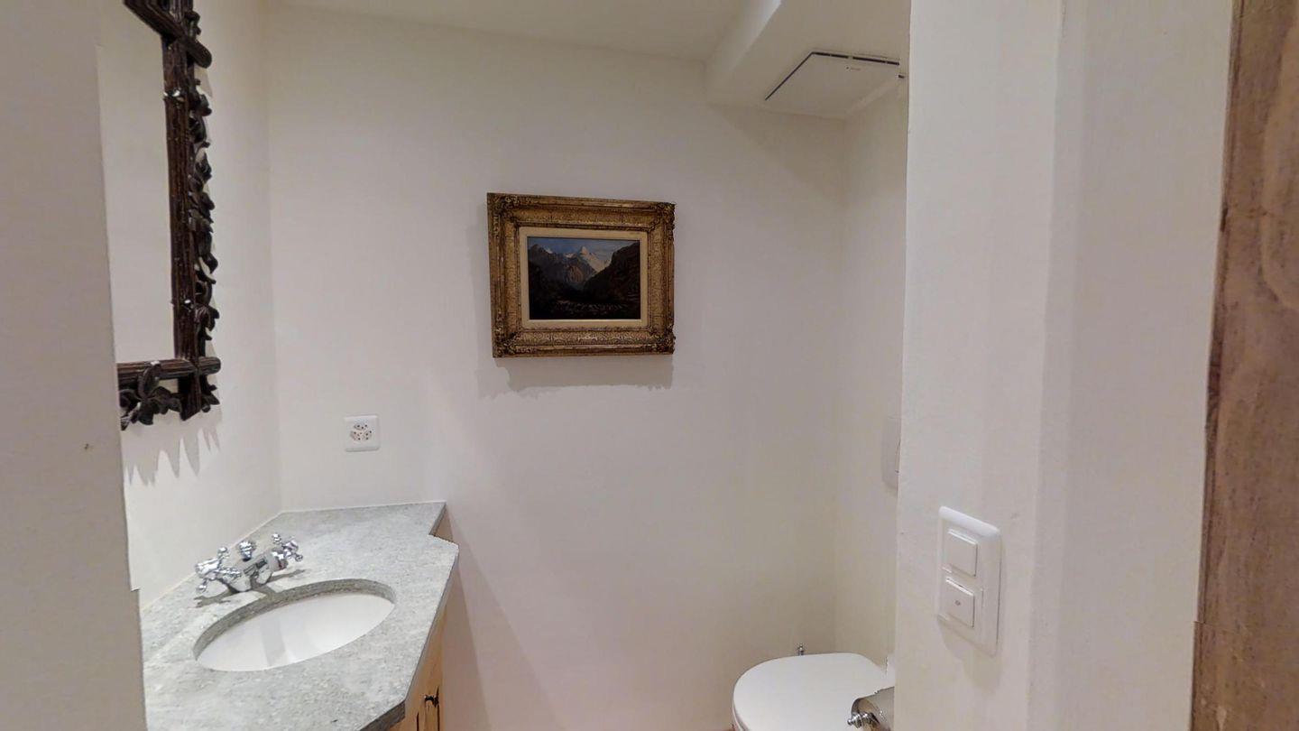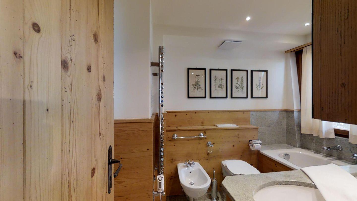 Weiters befinden sich im gleichen Geschoss auf der linken Wohnungshälfte eines der Schlafzimmer (2 Betten) mit eigenem Badezimmer mit Badewanne/WC/Doppelwaschbecken