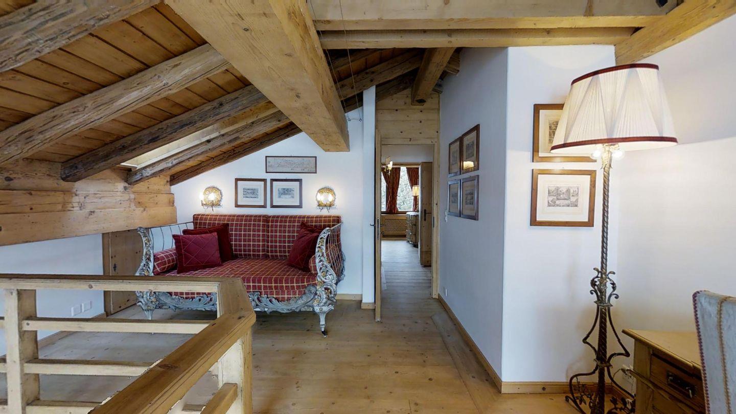 Im Dachgeschoss befinden sich das Hauptschlafzimmer mit eigenem Badezimmer mit Badewanne/separate Dusche/WC/Doppelwaschbecken sowie einer offenen Galerie mit kleiner Büroecke und Sicht auf den Wohnzimmer- und Kaminbereich.