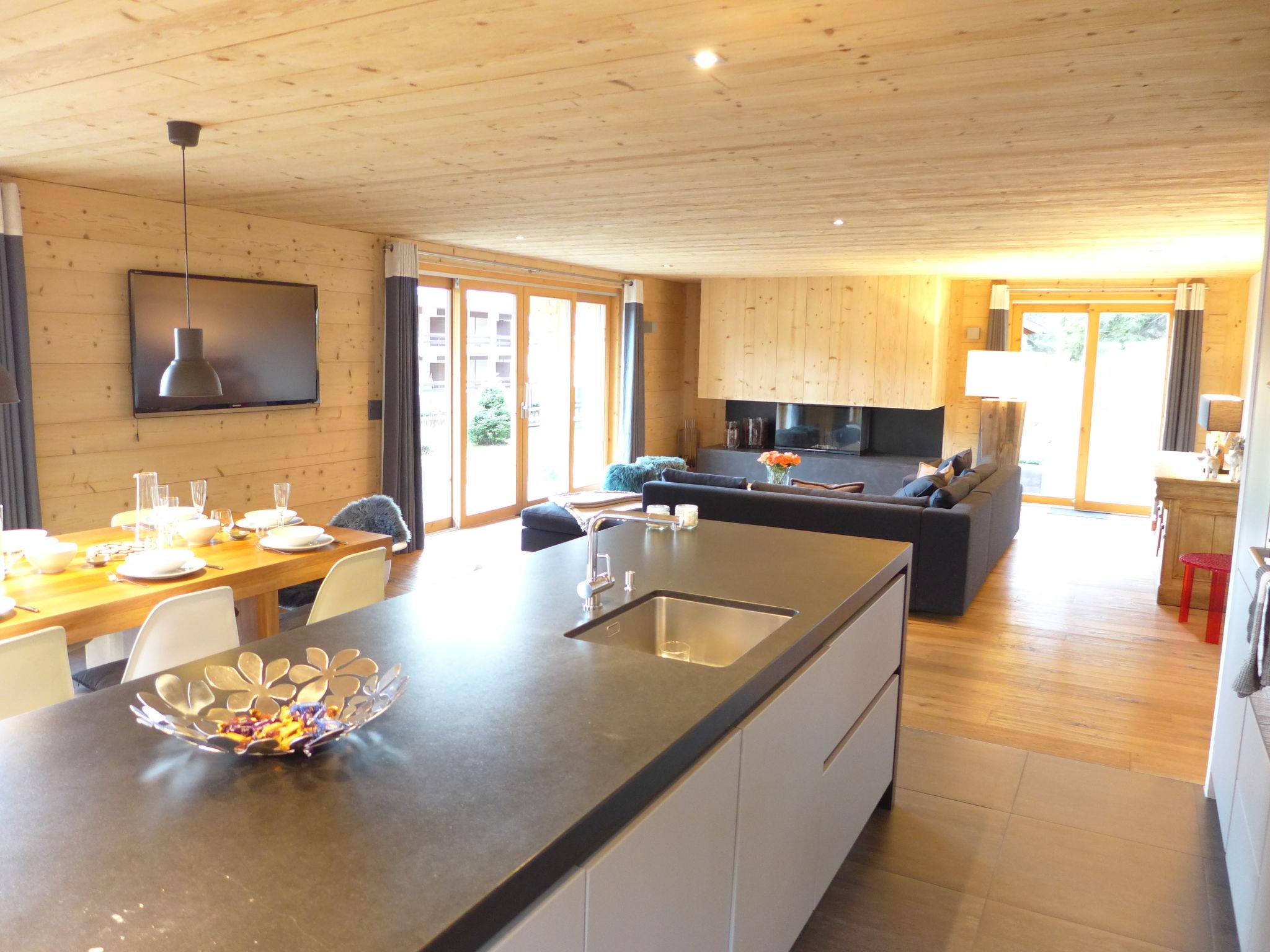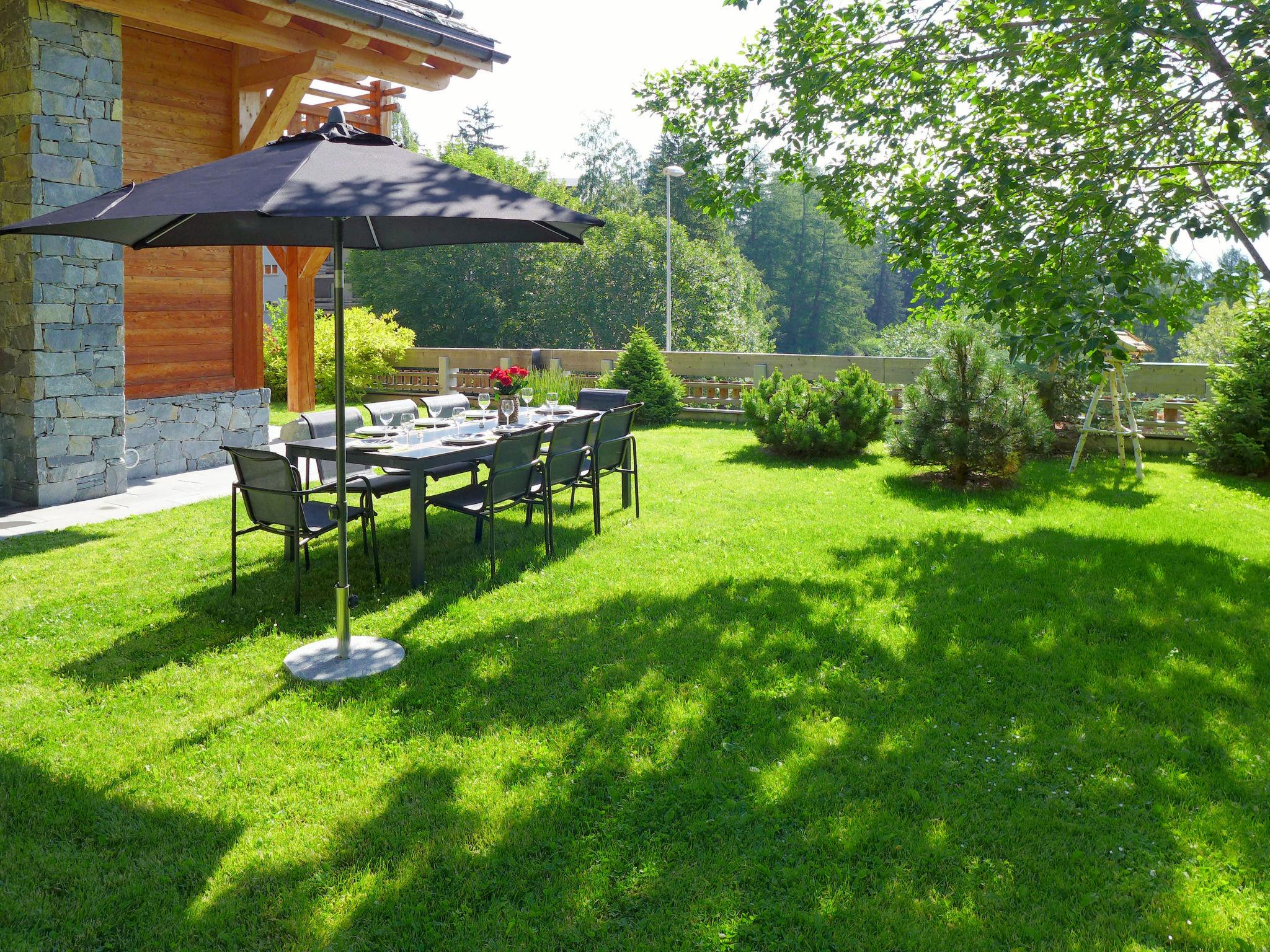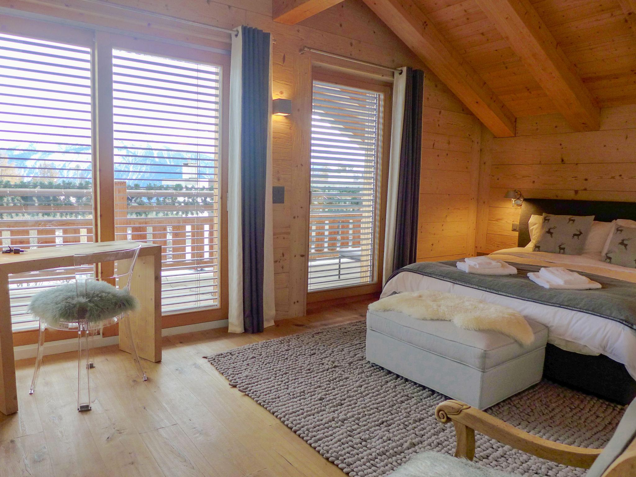 "Chalet Astoria", 6-room chalet 230 m2. Spacious, very comfortable and wooden furniture furnishings: living/dining room with open-hearth fireplace, separate WC, cable TV and electric shutters. Exit to the garden, south facing position. 1 room with Dressing room with 1 french bed (160 cm, length 200 cm), bath/WC and cable TV. Exit to the garden, west facing position. Large, open kitchen (oven, dishwasher, 4 induction hot plates, toaster, kettle, electric coffee machine, raclette grill, combination microwave, fondue Set (chinoise, cheese)). Gas heating, floor heating. Upper floor: 1 room with 1 french bed (160 cm, length 200 cm), shower/WC and cable TV. 2 rooms, each room with 1 double bed (180 cm, length 200 cm), bath/WC and cable TV. Exit to the balcony, south facing position. 1 room with 2 beds (80 cm, length 200 cm), shower/WC and cable TV. Terrace furniture, barbecue, deck chairs (2), box-room. Partial view of the mountains and the countryside. Facilities: iron, children's high chair, baby cot for up to 2 year olds, hair dryer. Internet (WiFi, free). Parking (1 car), garage (3 cars), height 210 cm, width 255 cm. Please note: non-smoking house. Machine à café automatique Delonghi : avec grains de café à moudre. 2 lits bébé et 2 chaises hautes. Lits bébé, sans duvets draps et matelas.