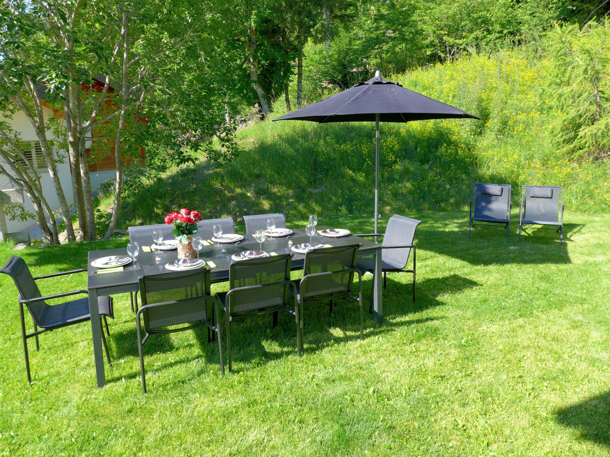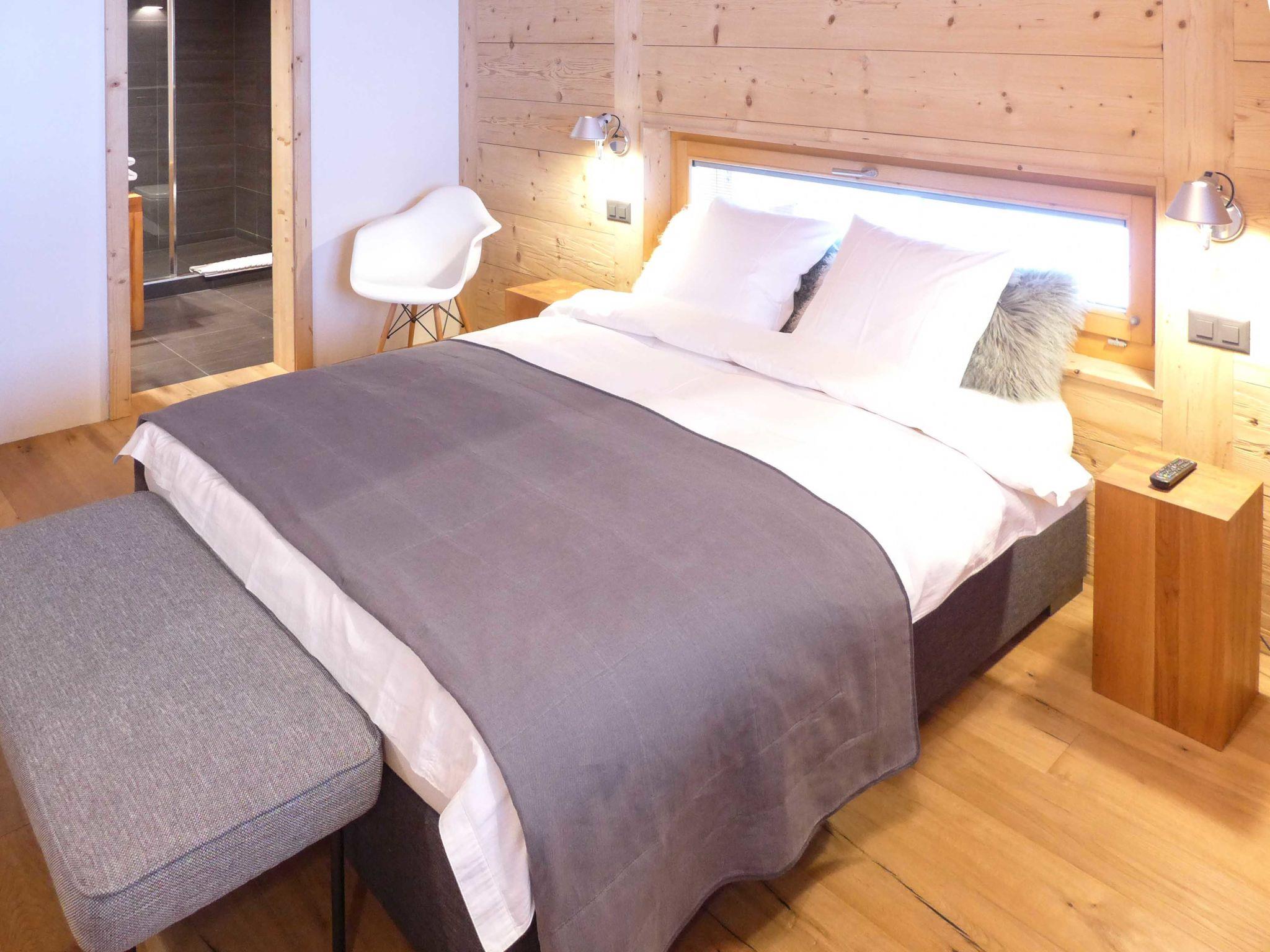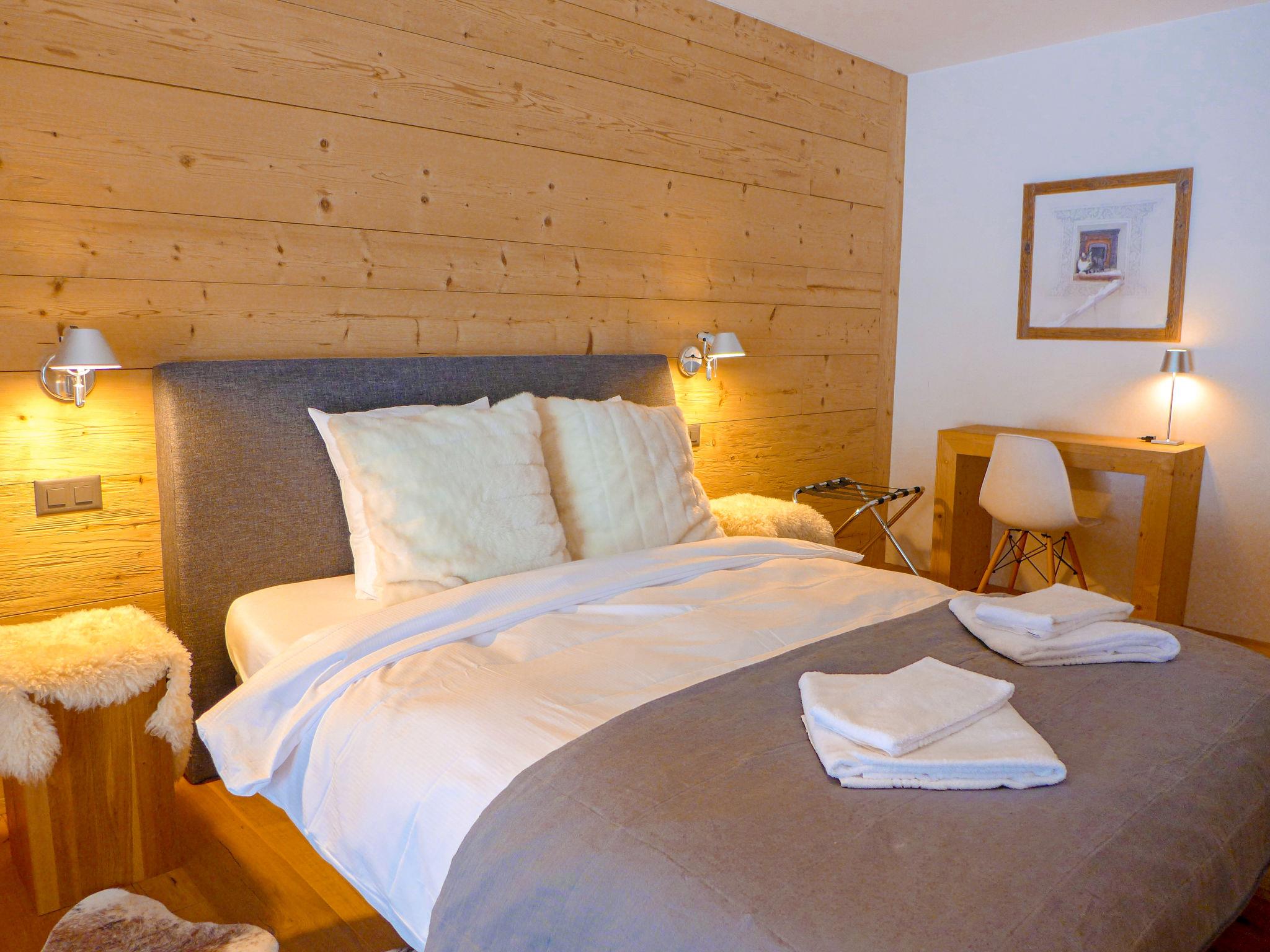 "Chalet Astoria", 6-room chalet 230 m2. Spacious, very comfortable and wooden furniture furnishings: living/dining room with open-hearth fireplace, separate WC, cable TV and electric shutters. Exit to the garden, south facing position. 1 room with Dressing room with 1 french bed (160 cm, length 200 cm), bath/WC and cable TV. Exit to the garden, west facing position. Large, open kitchen (oven, dishwasher, 4 induction hot plates, toaster, kettle, electric coffee machine, raclette grill, combination microwave, fondue Set (chinoise, cheese)). Gas heating, floor heating. Upper floor: 1 room with 1 french bed (160 cm, length 200 cm), shower/WC and cable TV. 2 rooms, each room with 1 double bed (180 cm, length 200 cm), bath/WC and cable TV. Exit to the balcony, south facing position. 1 room with 2 beds (80 cm, length 200 cm), shower/WC and cable TV. Terrace furniture, barbecue, deck chairs (2), box-room. Partial view of the mountains and the countryside. Facilities: iron, children's high chair, baby cot for up to 2 year olds, hair dryer. Internet (WiFi, free). Parking (1 car), garage (3 cars), height 210 cm, width 255 cm. Please note: non-smoking house. Machine à café automatique Delonghi : avec grains de café à moudre. 2 lits bébé et 2 chaises hautes. Lits bébé, sans duvets draps et matelas.