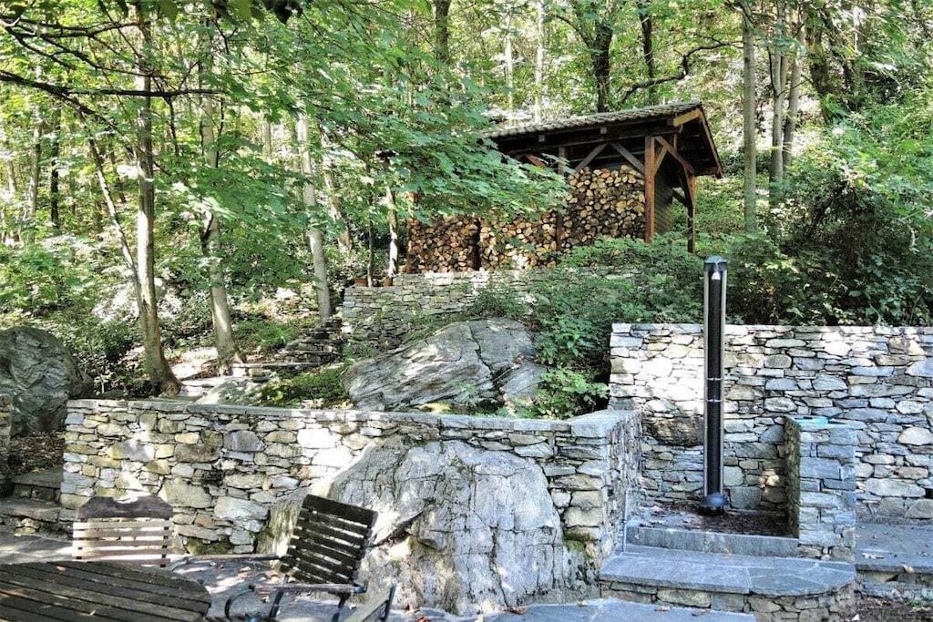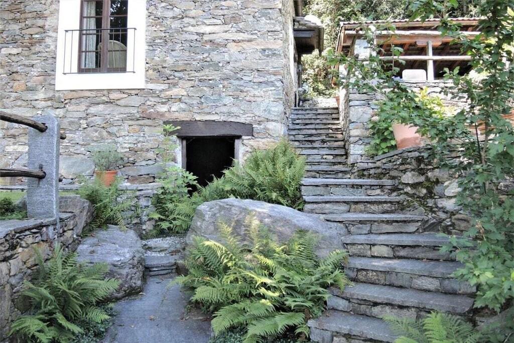 This typical Ticino rustico is located in the hamlet of Medoscio, right on the edge of the forest. It invites guests to a unique vacation. Ideal for nature lovers, hikers, and those seeking peace and quiet. The adjoining rustico "Topolino" can be booked additionally (see Gatto & Topolino) • 2.5-room rustico (main house), sleeps 2 to 4 • Living-dining room with sofa set • Swedish stove (wood provided) • Dining table with 4 chairs • Satellite TV, Wi-Fi • Well-equipped open kitchen • Ceramic hob • Oven • Refrigerator with freezer compartment • Filter coffee machine • Shower/WC • Washing machine/tumble dryer • Stairs • 1 bedroom with double bed (2 mattresses) • 1 open entrance hall with pull-out bed • Electric heating (heating surcharge during the heating season: • April / May / September / October): CHF 10.00 per day • The wood provided must be split • Quiet location right on the edge of the forest • Pergola with large wooden table and garden • Large garden seating area with Ticino stone table • Sun terrace with Sun loungers • Garden shower • Parking available • Bus stop nearby
