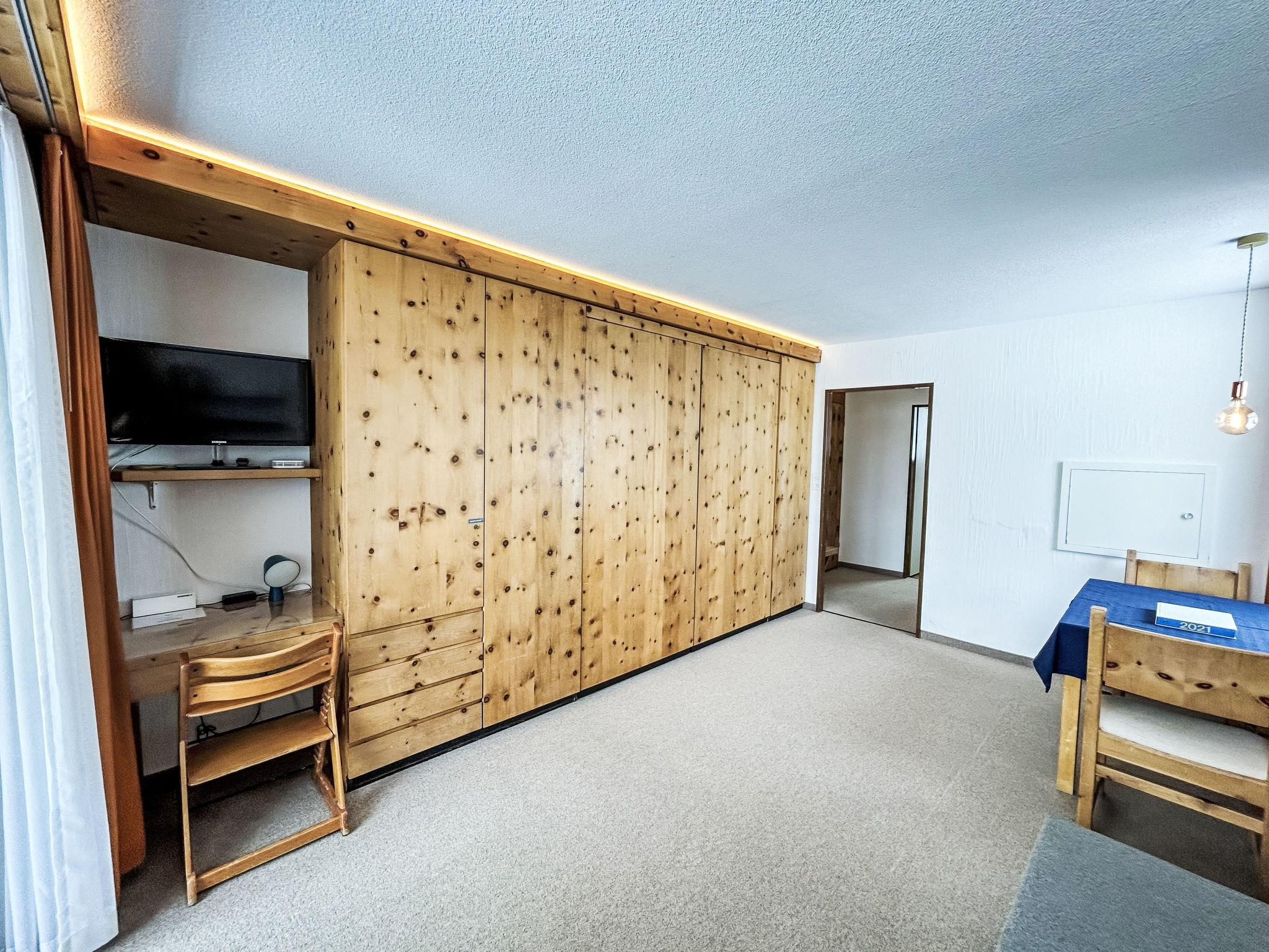 "Guardaval Apt 401", 1-room apartment 30 m2 on 4th floor. Cosy furnishings: living/dining room with 2 fold-away beds and cable TV (flat screen). Exit to the balcony. Kitchen (2 hot plates, oven, toaster, kettle, electric coffee machine). Bath/WC. Balcony 7 m2, east facing position. Balcony furniture. Beautiful view of the mountains, the countryside and the resort. Facilities: Internet (WiFi, free). Parking. Please note: non-smokers only.