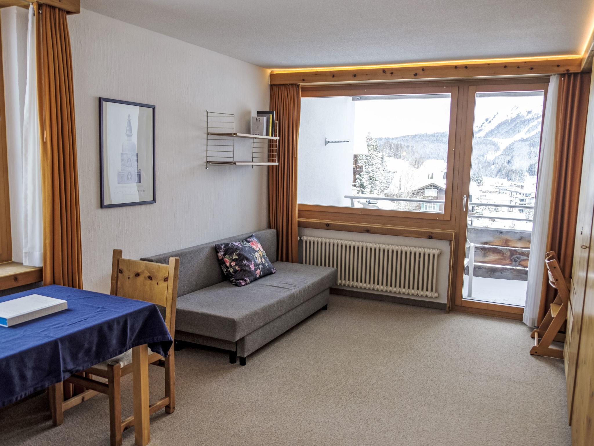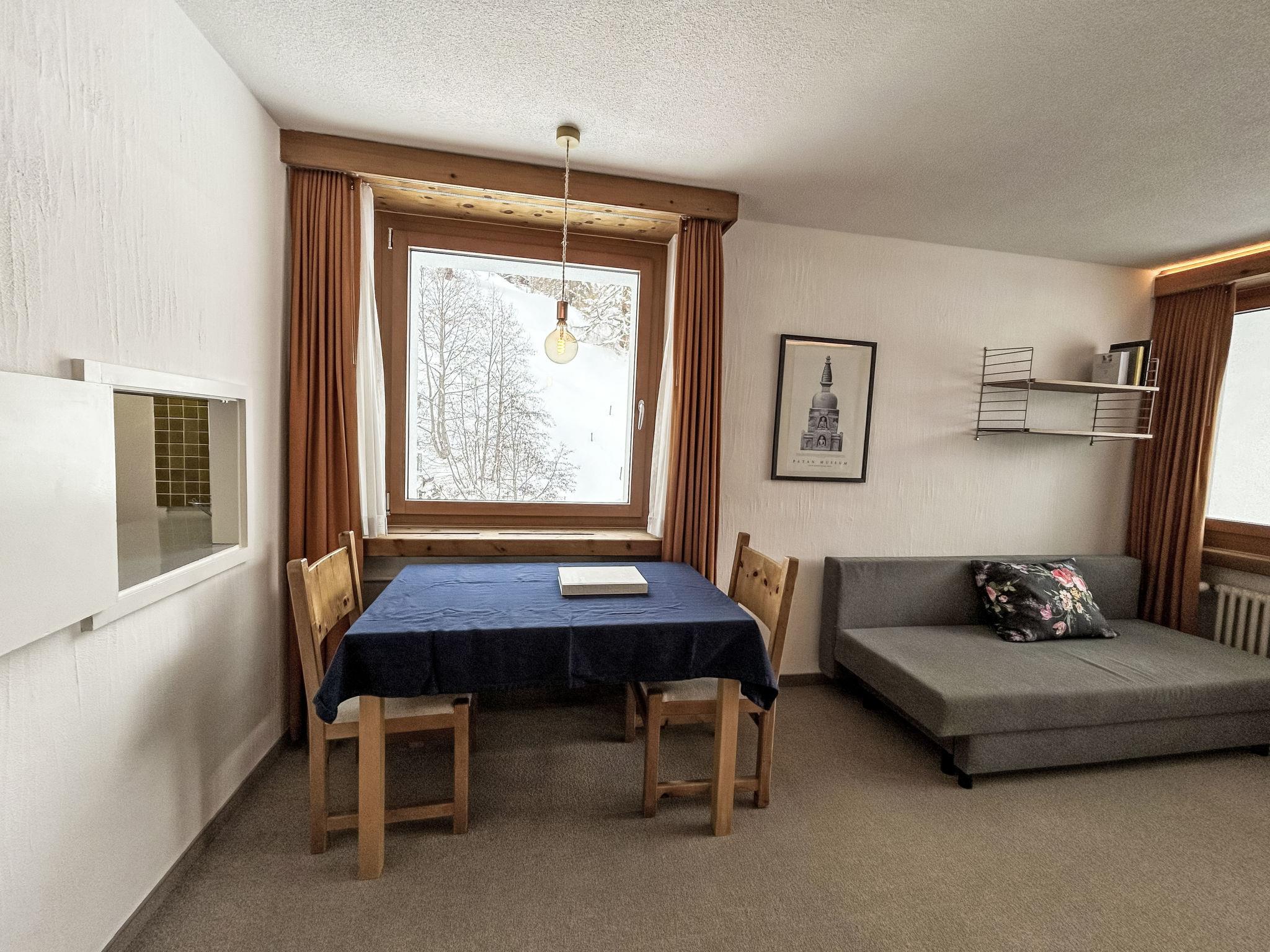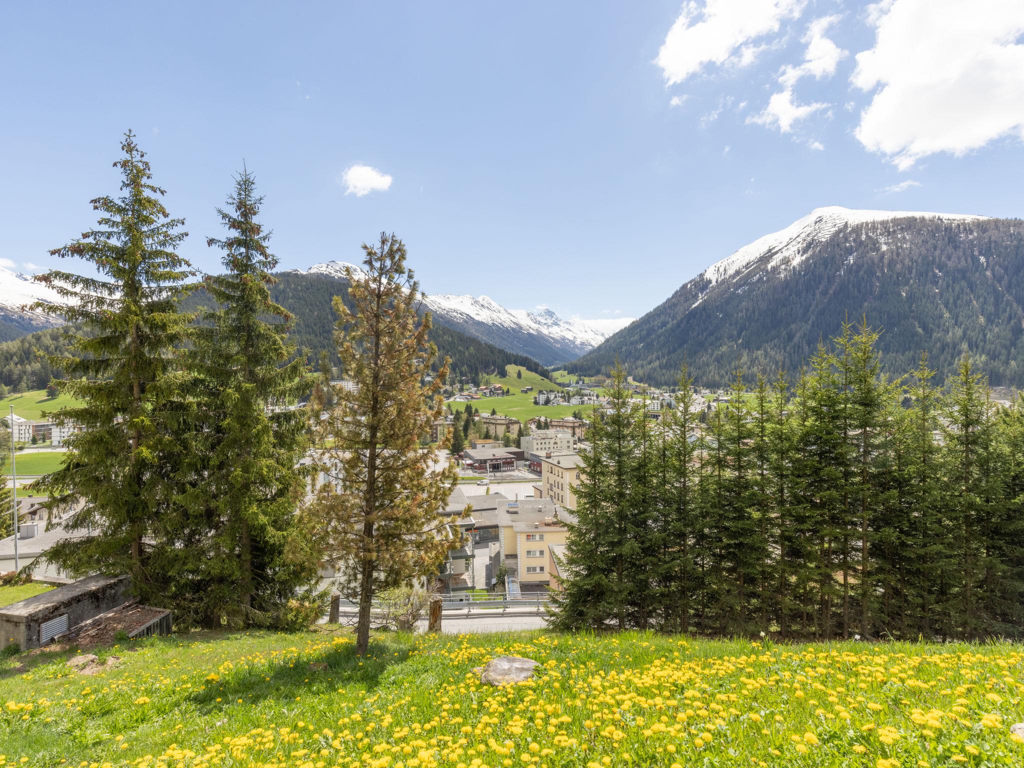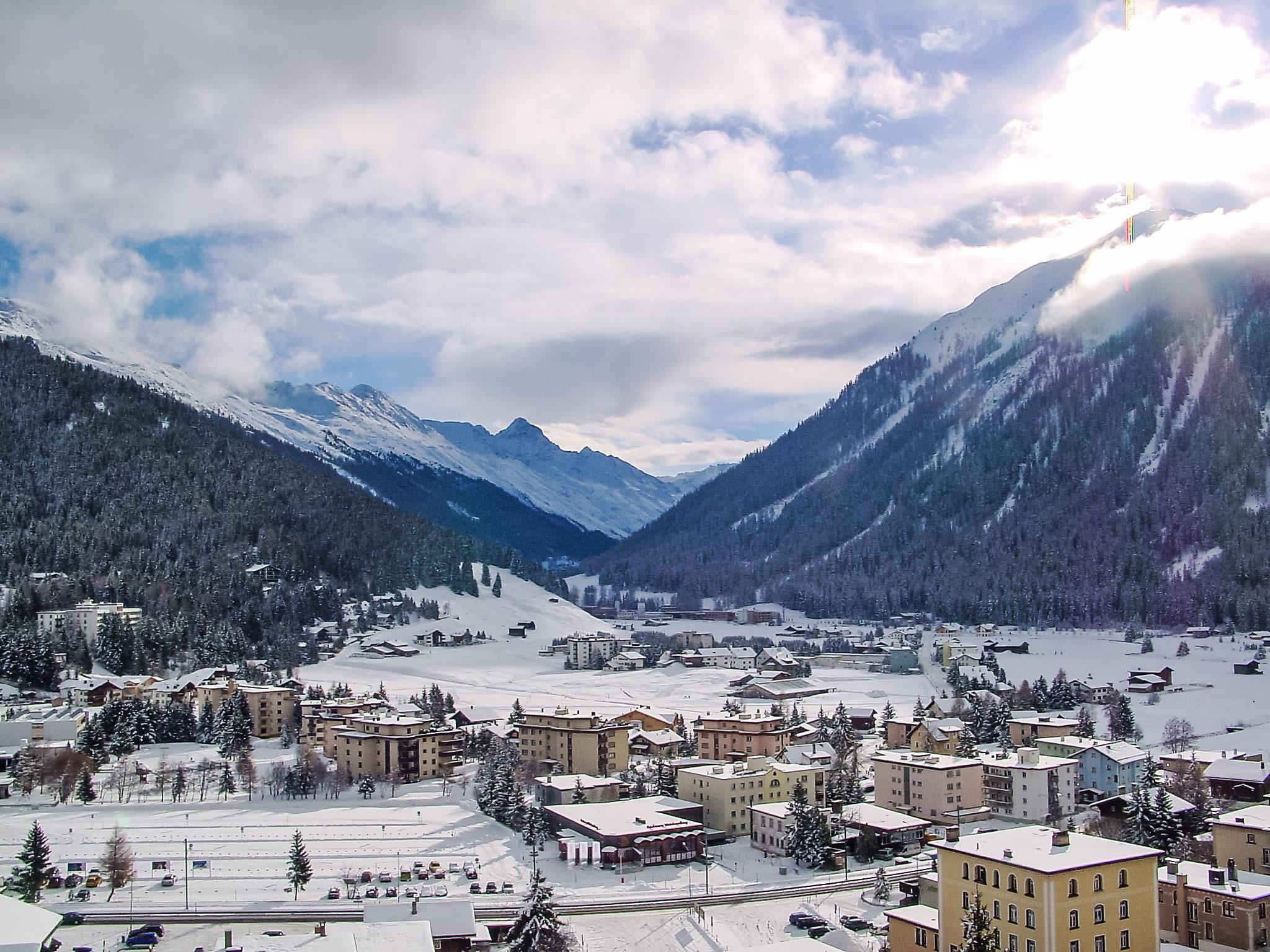 Davos: Apartment block "Guardaval (Utoring)". In the resort, in a central, quiet, sunny position on a slope, 1 km from the lake, 300 m from the skiing area. For shared use: indoor pool. In the house: reception, lounge with TV, WiFi, sauna (extra). Playroom, lift, storage room for skis, central heating system, washing machine (for shared use). Bread roll service and beverage service. Narrow motor access to the house. Roofed, parking (limited number of spaces, extra), communal covered parking (extra). Shop 300 m, restaurant 300 m, bus stop, railway station "Davos Dorf" 400 m, indoor swimming pool 1 km, bathing lake 1 km. Mountain railway, skisport facilities, slopes, ski school, sled run 1.5 km, cross country ski track, ice rink 300 m. Well-known ski regions can easily be reached: Parsenn 300 m, Jakobshorn 1.5 km. The building is located upstream of the resort of Parsenn mountain and offers beautiful view. Parking + garage (reservation on arrival).