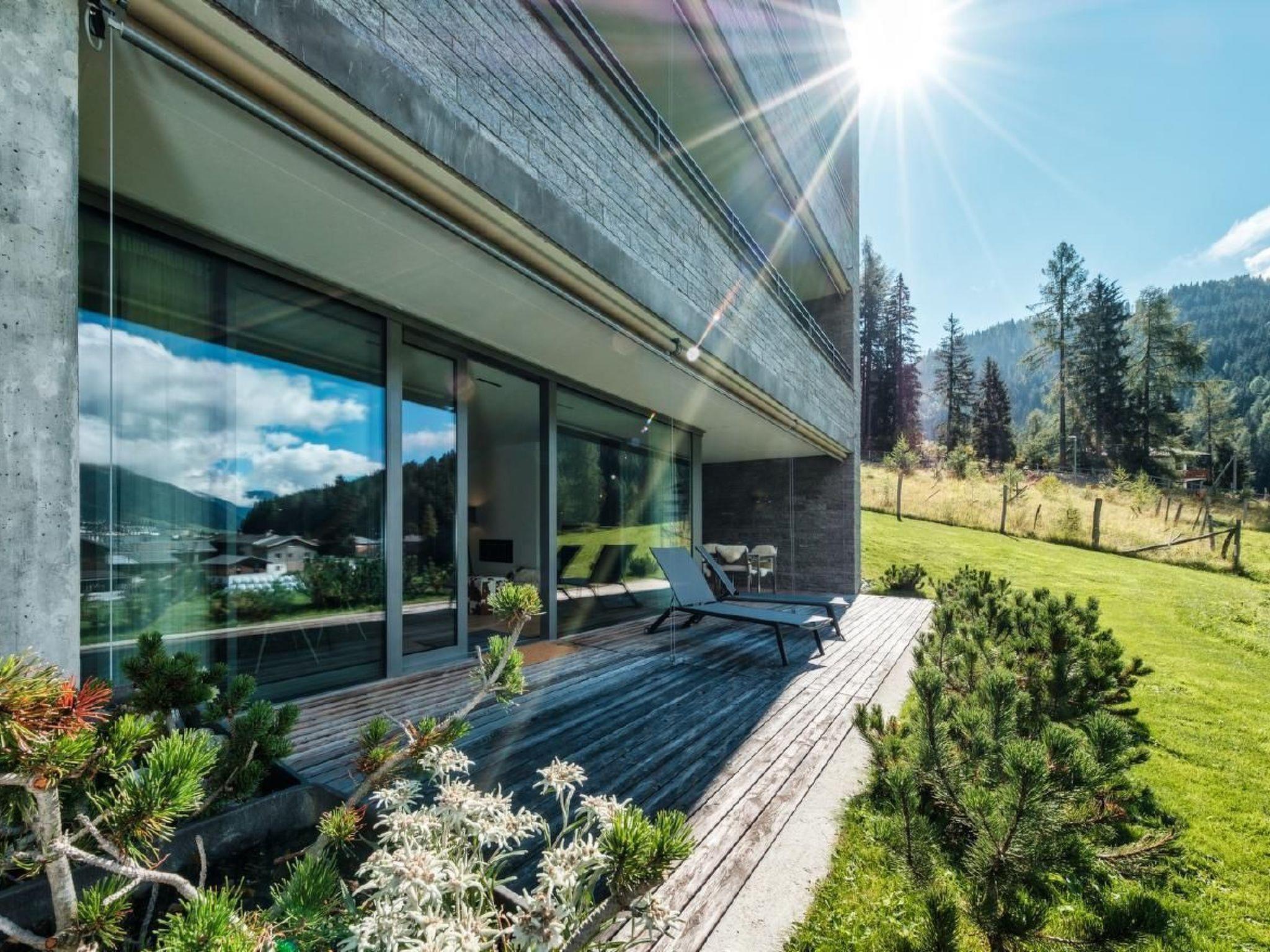 The outdoor area with a 30 square metre terrace invites you to relax. With a garden table for 6 people and two sun loungers, you can enjoy the sun and the view to the full. A private ski and bike room as well as private parking in the underground car park round off the luxurious offer and provide comfort and security for your equipment and your vehicle.