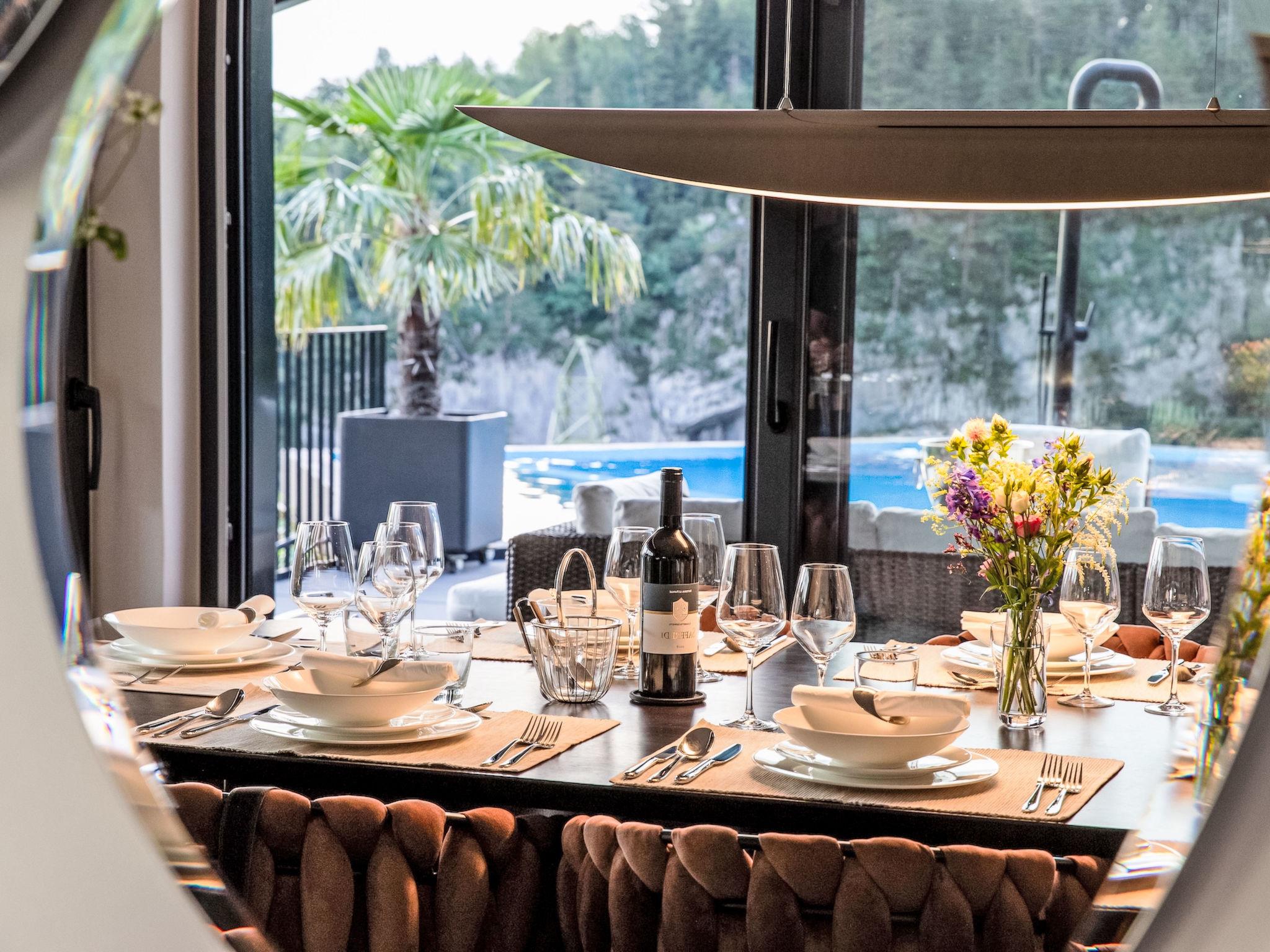 Direct access to the expansive terrace with panoramic natural swimming pond, private hot tub and refined outdoor lounge.