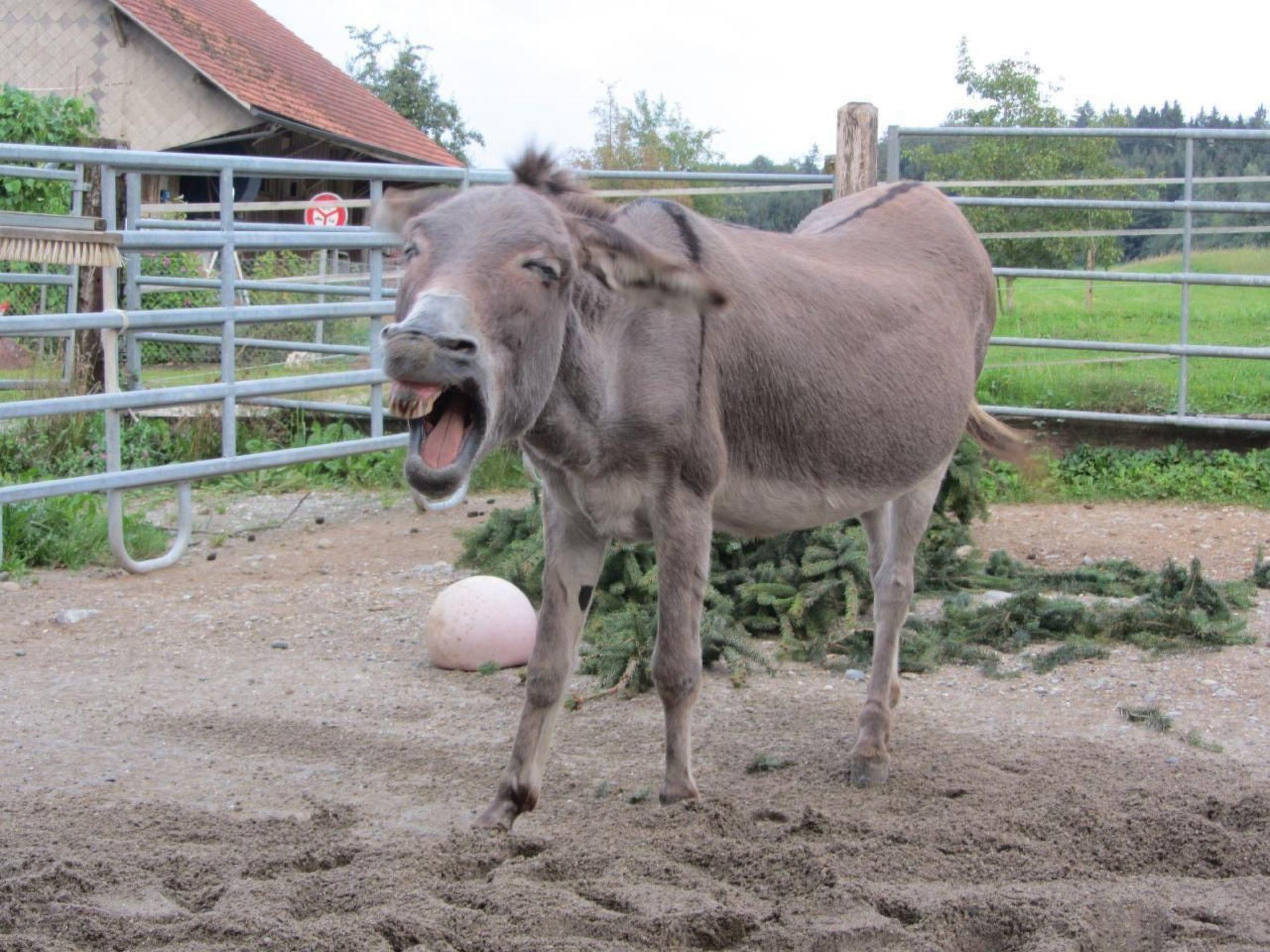 At the idyllic horse and donkey farm in a beautiful panoramic location, you can experience farm life up close with horses, donkeys, Valais black-nosed sheep, Kune Kune pigs and cats.