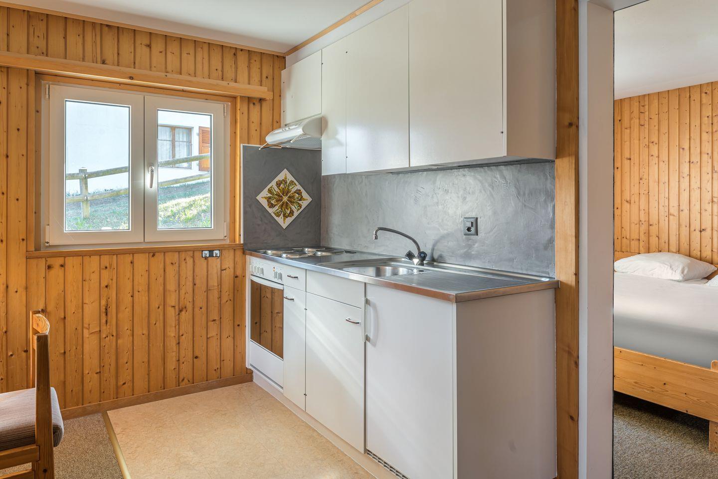 Diese Wohnung besteht aus: Wohn-Essraum mit offener Küche, 2 Schlafzimmer mit 2 Betten und 1 Badezimmer mit Lavabo, WC und Dusche.