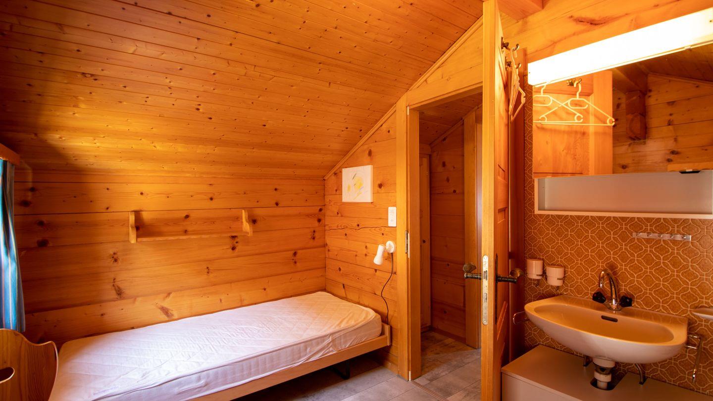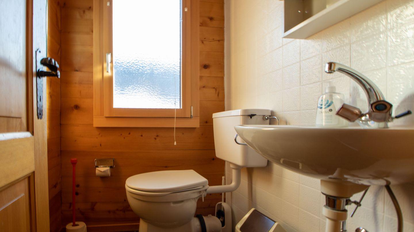 Daneben befindet sich ein Schlafzimmer für 2 Personen, ein Badezimmer mit Dusche und Lavabo, Waschmaschine und Trockner, sowie ein separates WC. 2 weitere Schlafzimmer für je 2 Personen sind im Dachgeschoss und haben jeder eine Waschgelegenheit.