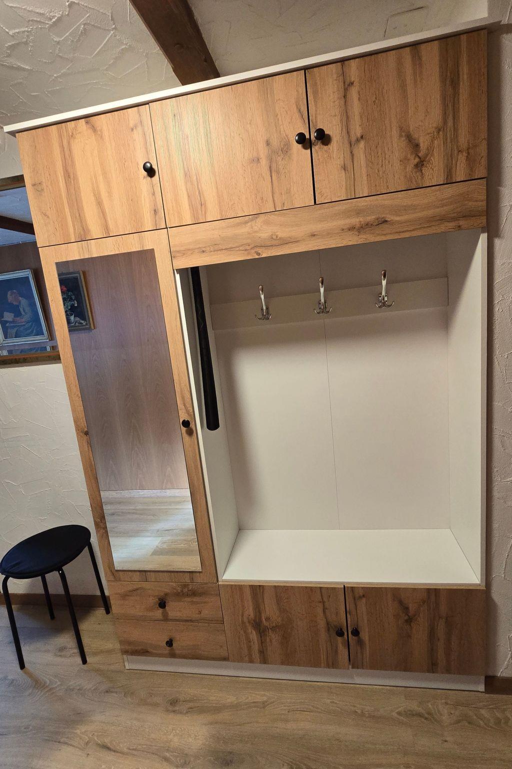 The holiday flat is newly renovated and has a new bathroom and a new kitchen. Unique to the flat is a garage with a wallbox connection where you can conveniently charge your electric car. The new kitchen has a dishwasher, oven, fridge, freezer and induction hob. There is also a capsule coffee machine and a soda stream. A wide range of teas and a kettle round off the kitchen. The bedroom has a sliding-door wardrobe with a box-spring bed. There is also a dressing table. There is a large shower with rain shower in the new bathroom. The living room has a sofa bed where you can read a book or watch an exciting film. When the weather is nice, you can enjoy a coffee on the garden bench on the terrace. From the terrace you can watch our 3 dwarf goats, they guard our house.